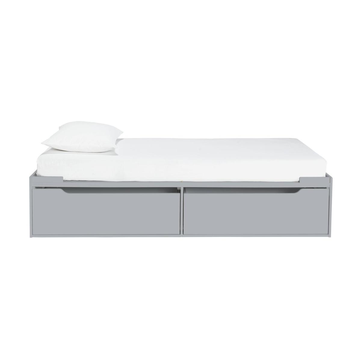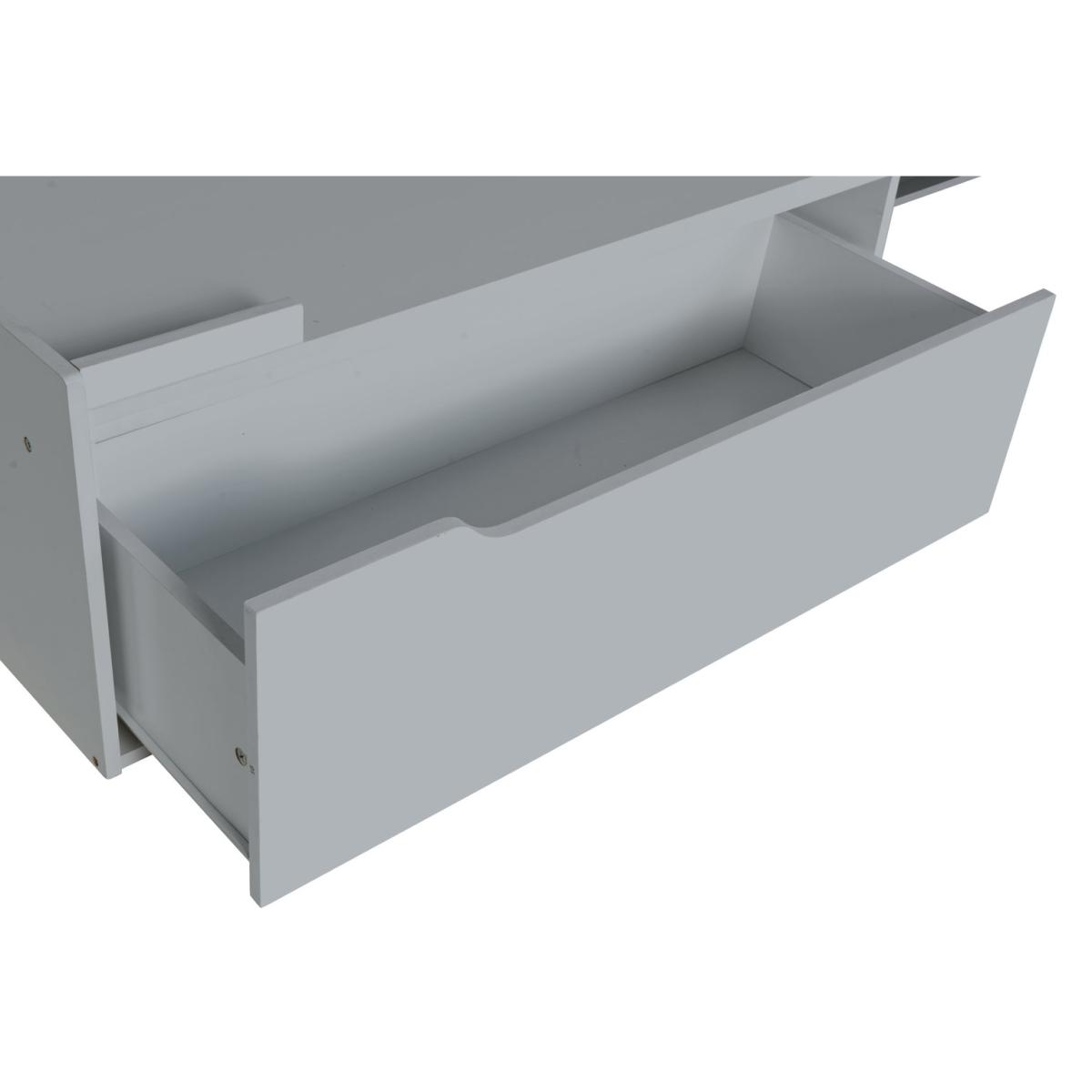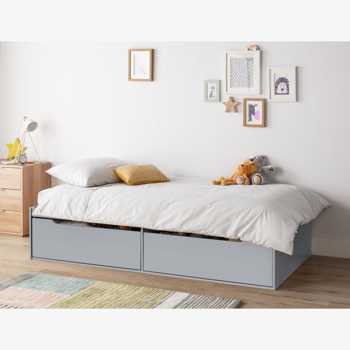 Combine smart storage with modern style. The Lloyd cabin bed comes with 2 deep storage drawers under the bed. The perfect hideaway for toys, clothes and more – this bed is great for smaller bedrooms. And its grey finish and cut-out handles create a fresh and uncluttered look. A modern simple bed designed to suit any age from 6 years upwards. Need a mattress? We've got a great range for you to choose from. If you're kitting out the entire room, take a look at our kids bedroom furniture collections to complete the look. Part of the Lloyd collection. Cabin bed: Single bed. Grey bed with a wood effect frame. Self-assembly - 2 people recommended. If this product is over 60cm high it must be securely attached to the wall to prevent overturning. Maximum user weight 100kg. For ages 4 years and over. Suitable for adult use (safety tested to 100kg). Mattress: (not included). Dimensions: Frame size L196, W96, H40cm. Drawer size H22.5, W33.5, D90cm. Package dimensions: Package 1 size H7.5, W47.5, D198cm. Package 2 size H11.5, W43, D100cm. General information: Manufacturer's 1 year guarantee.