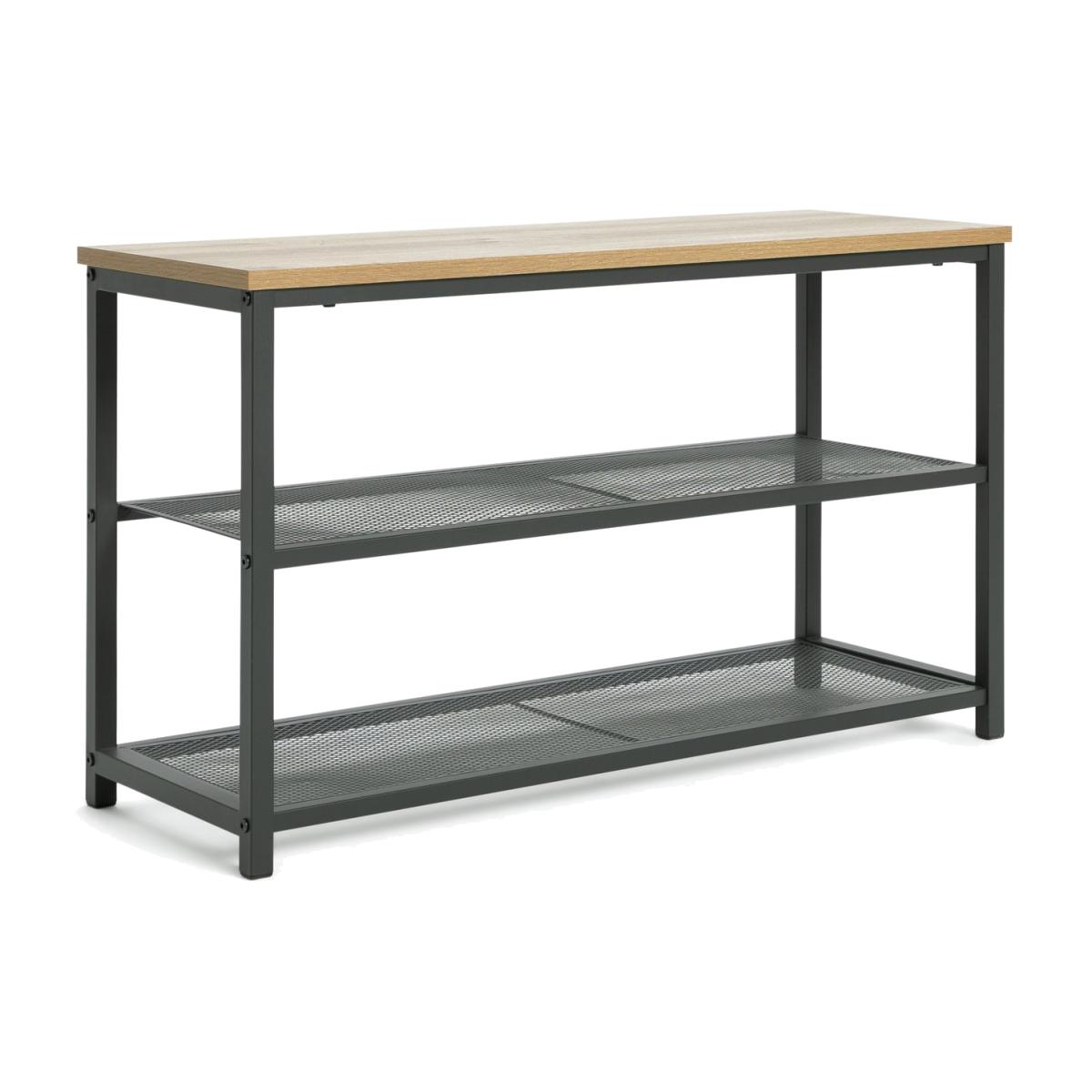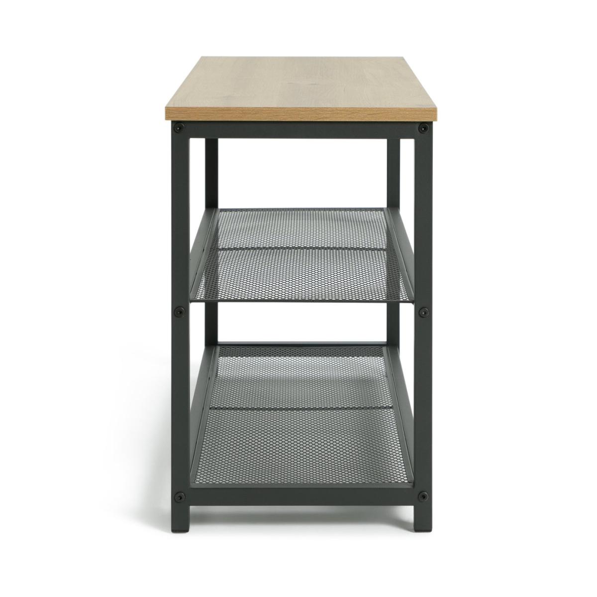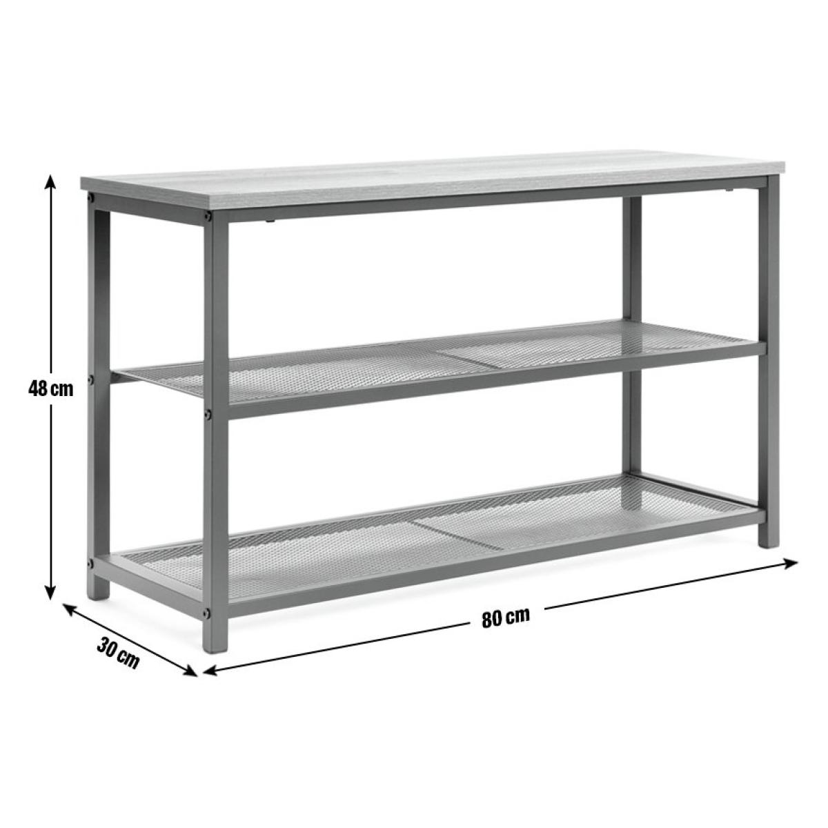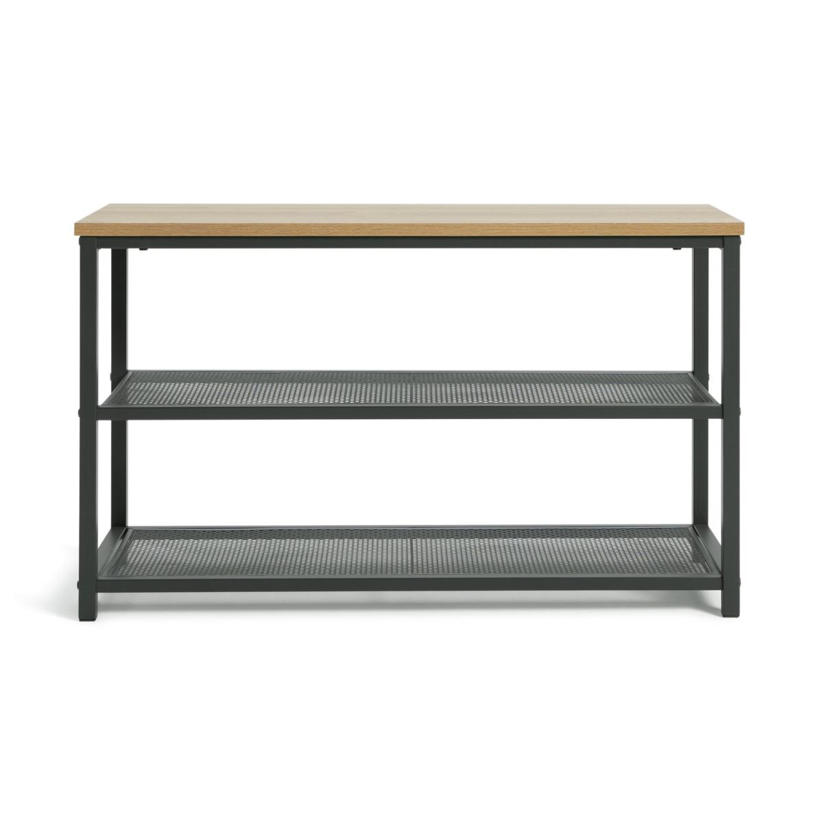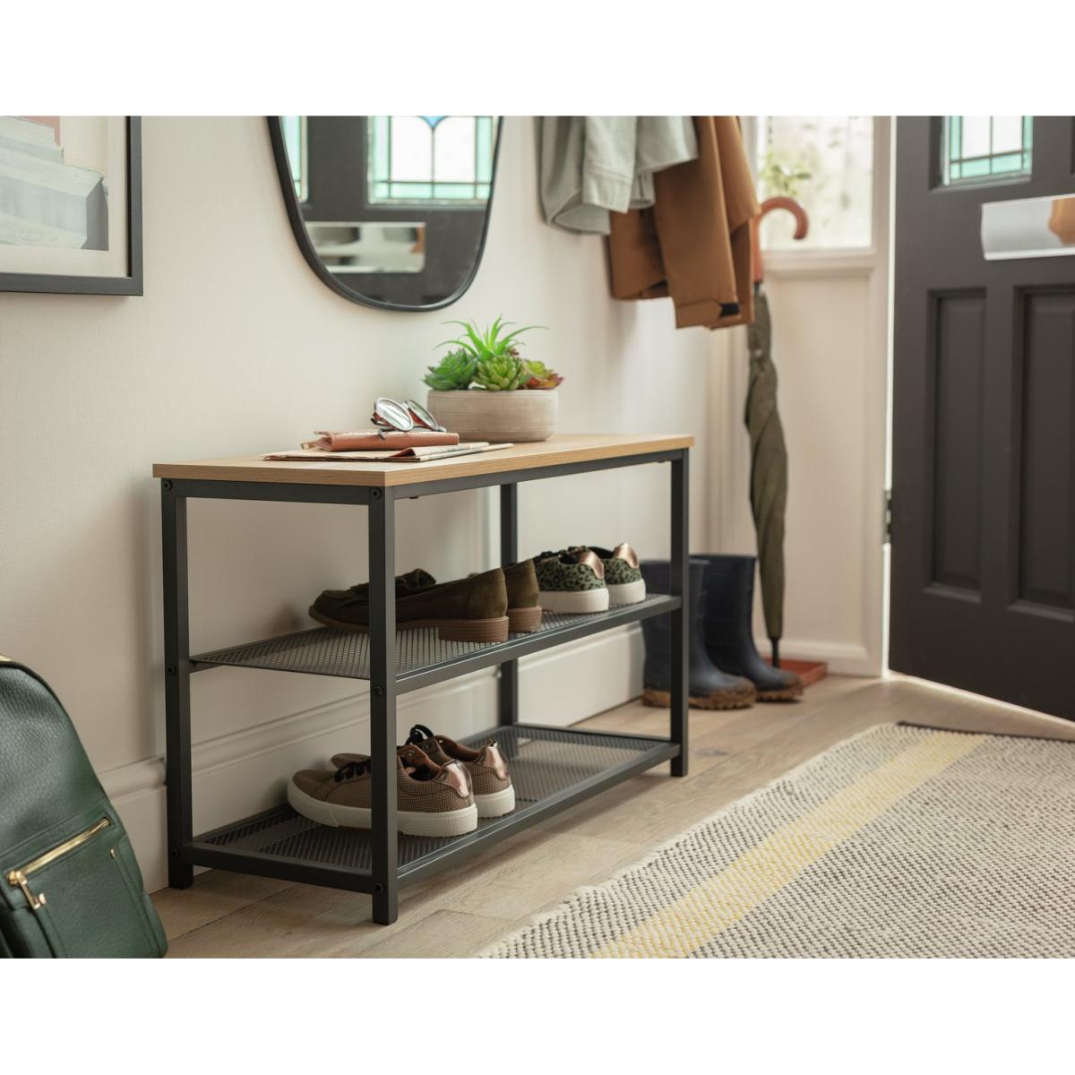 Shoe off your style. This industrial 3 tier shoe rack with its 2 mesh steel shelves is ideal for your keeping footwear nice and tidy. Fashionably functional. Pair this shoe rack with more Industrial pieces from our collection. Part of the Loft Living collection. Made from steel and steel with a metal finish. Stores an average of 6 pairs of shoes. Up to maximum shoe size 9. 3 fixed shelves. Size H48, W80, D30cm. Weight 8kg. Packed flat. Package Dimensions: Package 1 dimensions: H87, W37, D16cm. Package 1 weight: 10kg. FSC certified meaning the materials used for this product are responsibly sourced.