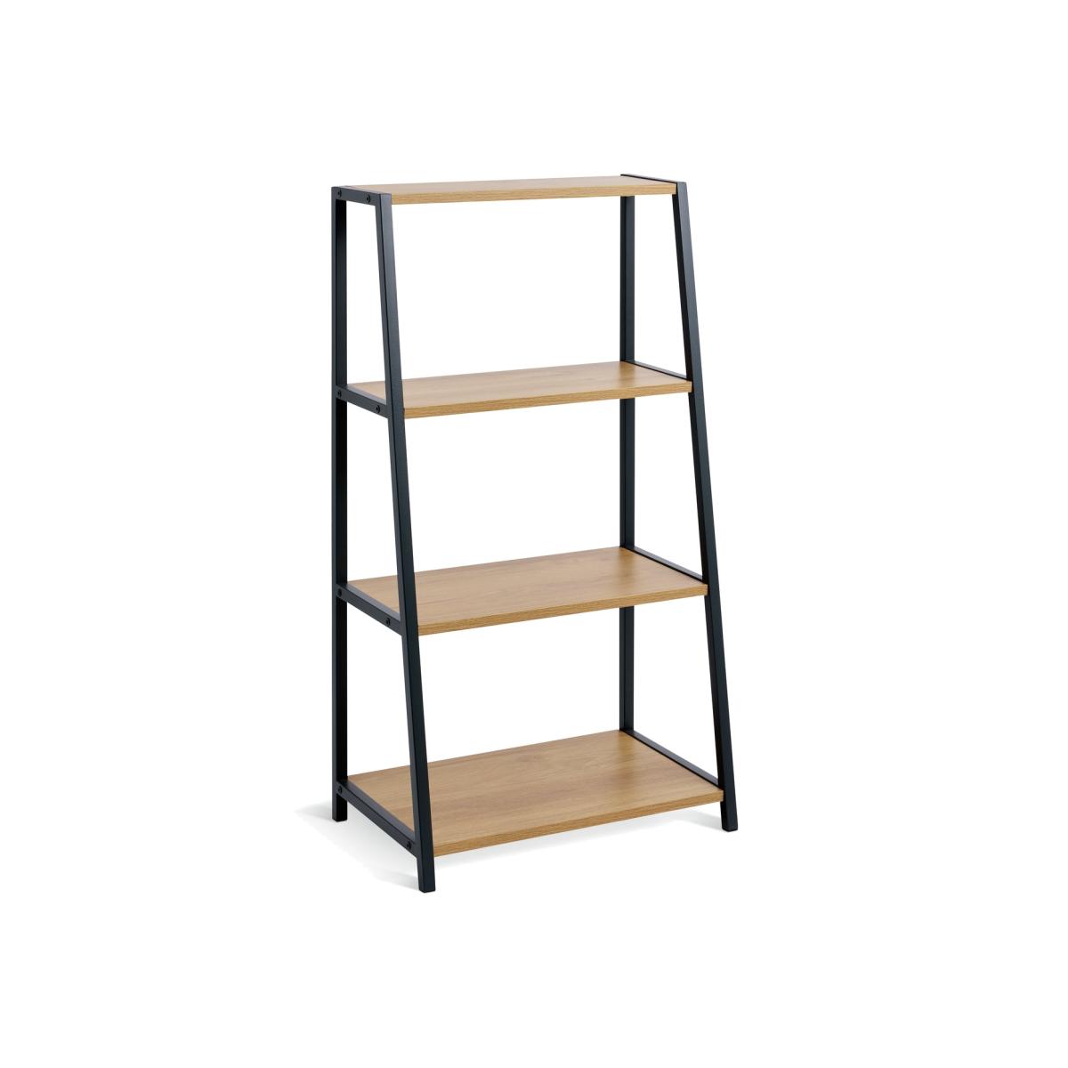 Strong lines, smart storage. This 4 tiered shelving unit brings an industrial edge to your bathroom with an oak-effect finish and a sleek black frame. Lightweight but sturdy, it's freestanding and easy to move. Style it next to the bath or beside the sink or shower. The open design keeps everything accessible, from rolled towels to skincare, candles or even a trailing plant. Made from MDF and tubular steel with a metal finish. 4 shelves. 4 fixed shelf/shelves. Size H90, W49, D30cm. Complete with fixtures and fittings. Packed flat - 2 person/people recommended. Packaging H98, W52, D7.5cm. Weight 6.17kg. General information: By choosing FSC certified products, you are supporting responsible management of the world's forests.