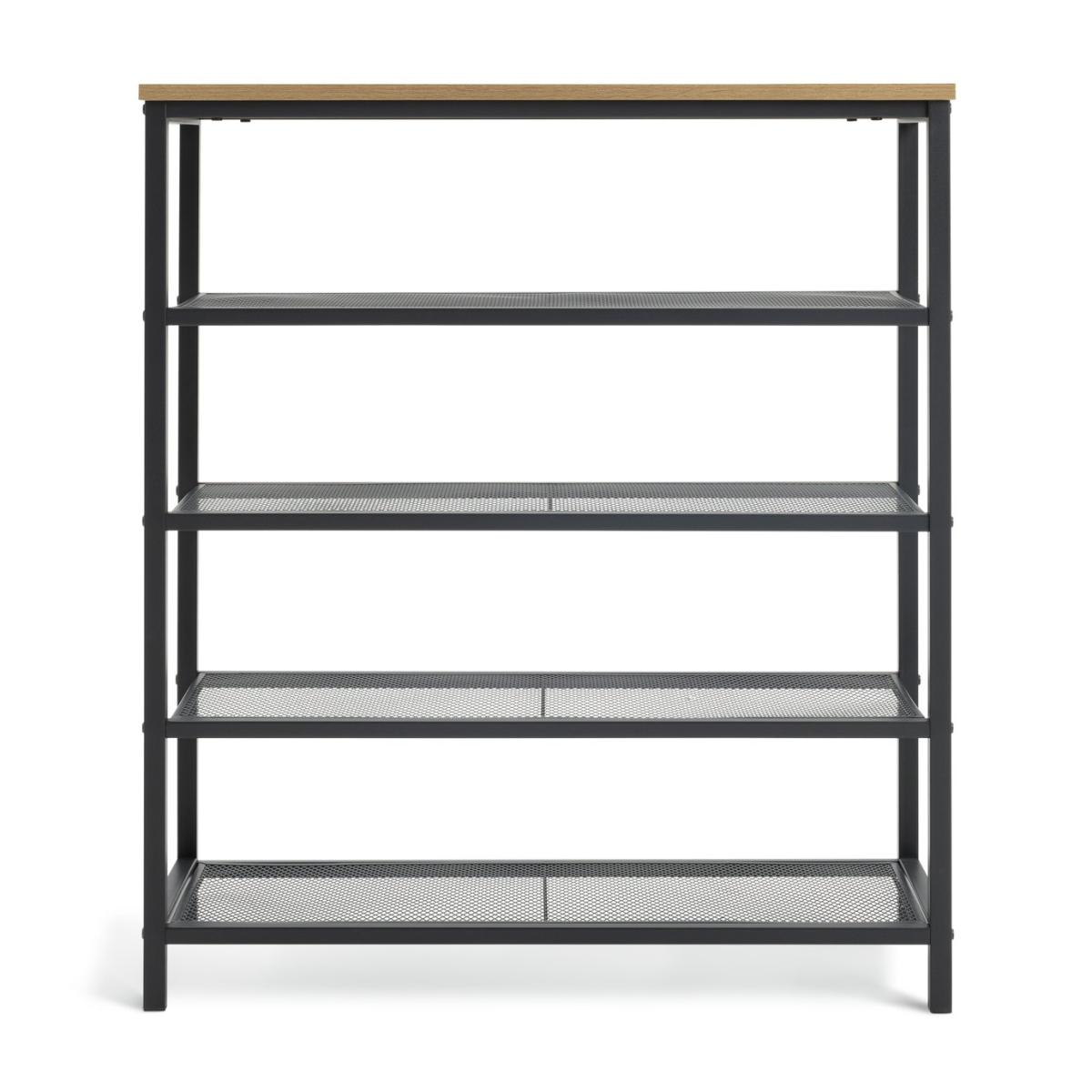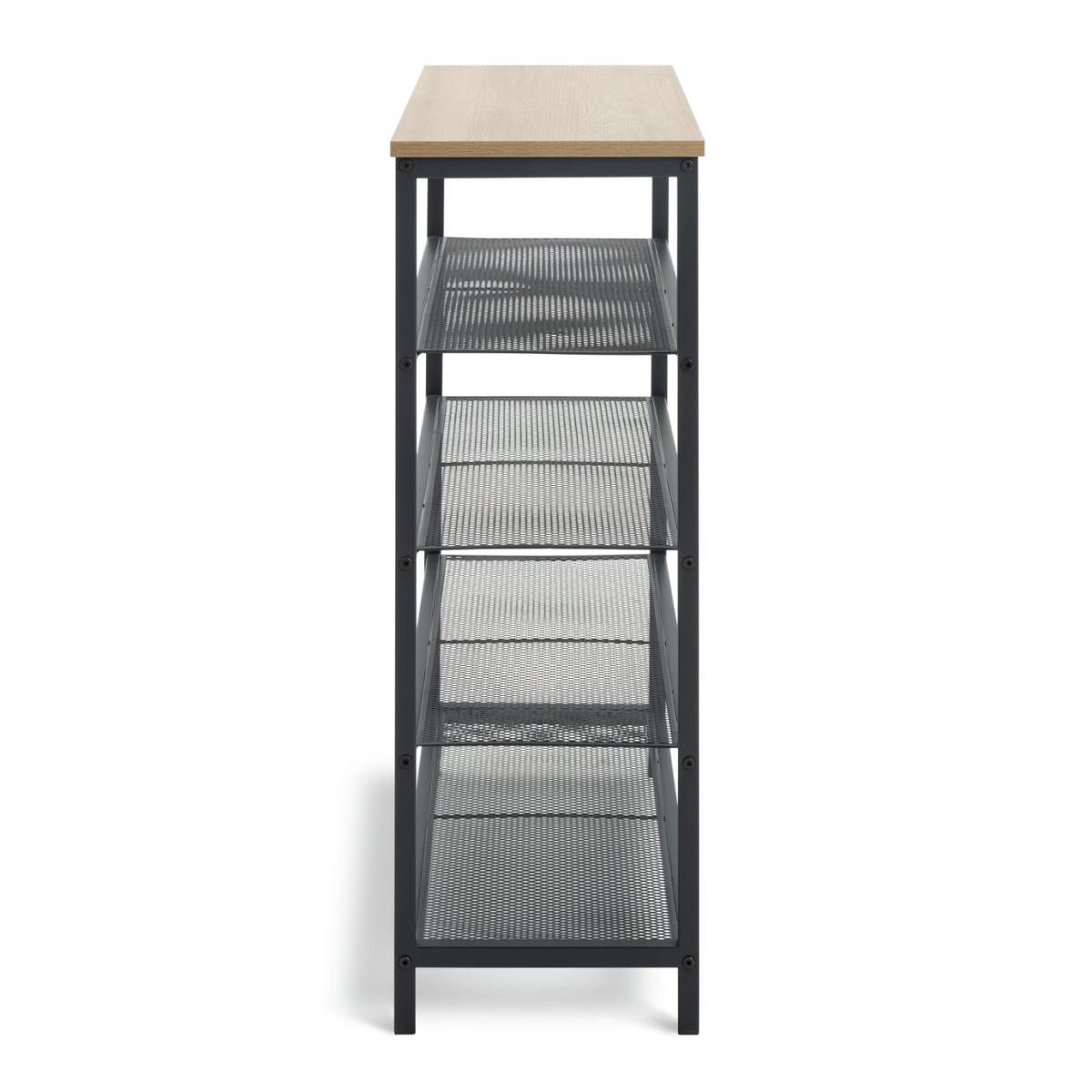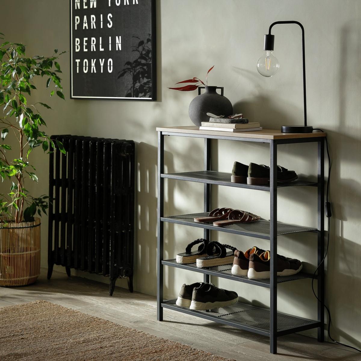 Definitely a hall-worthy clutter buster. This multi-purpose shoe storage rack will take up to 12 pairs on 4-tiers of mesh. Providing perfect air circulation to help keep footwear dry and fresh. Top marks too, for the oak display shelf to curate with plants, a lamp or even a vase of faux blooms. Time to tidy and stack the rack. Part of the Loft Living collection. Made from steel and MDF with a wood effect finish. Stores an average of 12 pairs of shoes. Up to maximum shoe size 9. 4 fixed shelves. Size H85, W75, D30cm. Weight 9kg. FSC certified. Packed flat. Package Dimensions: Package 1 dimensions: H18, W91, D41cm. Package 1 weight: 10.3kg. General information: We are excited to be welcoming some of our favourite HOME products into the Habitat range. Your product may arrive in Habitat or HOME packaging.