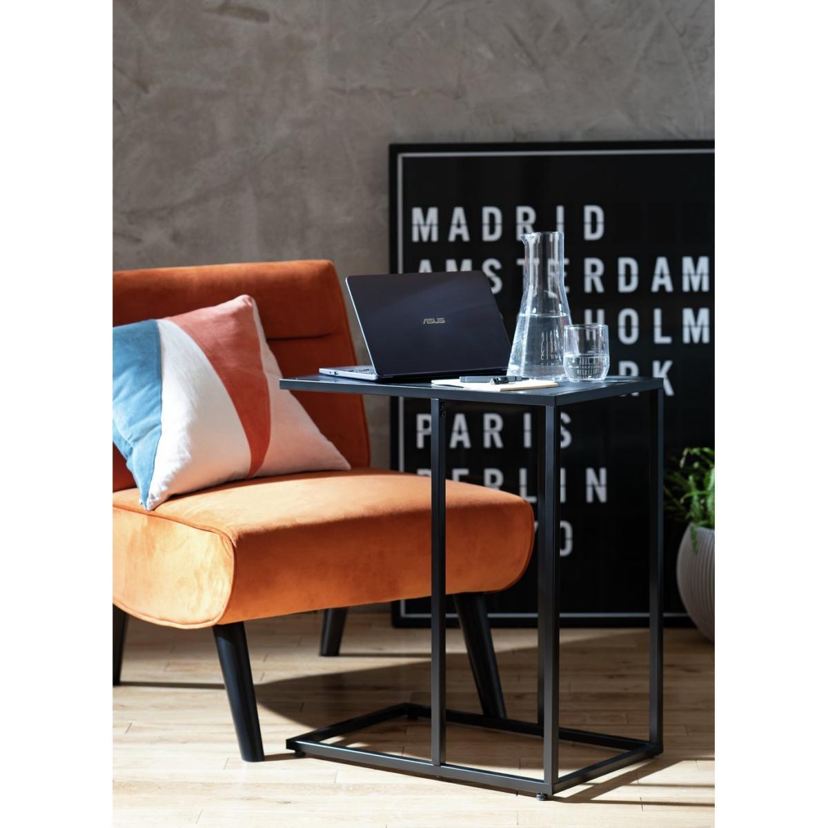 Space-saving, but make it stylish. Our Habitat Loft Living Table is slim and sleek. Crafted in jet black metal, the lightweight design is unassuming but oh so cool. Place it next to the sofa to hold your drinks and nibbles. Working from home? The clever C shape fits in fabulously around furniture. So you can access your laptop from the comfort of your favourite chair. Perfect. Part of the Loft Living collection. Collect in store today. Size H 65, W 55, D 35cm. Made from MDF with a gloss finish. Weight 4.9kg. Self-assembly - 1 person recommended. Maximum load weight 30kg. Package Dimensions: Package 1 dimensions: H11.5, W59, D39cm. Package 1 weight: 5.4kg. General information:We are excited to be welcoming some of our favourite HOME products into the Habitat range. Your product may arrive in Habitat or HOME packaging. Manufacturer's 1 year guarantee.