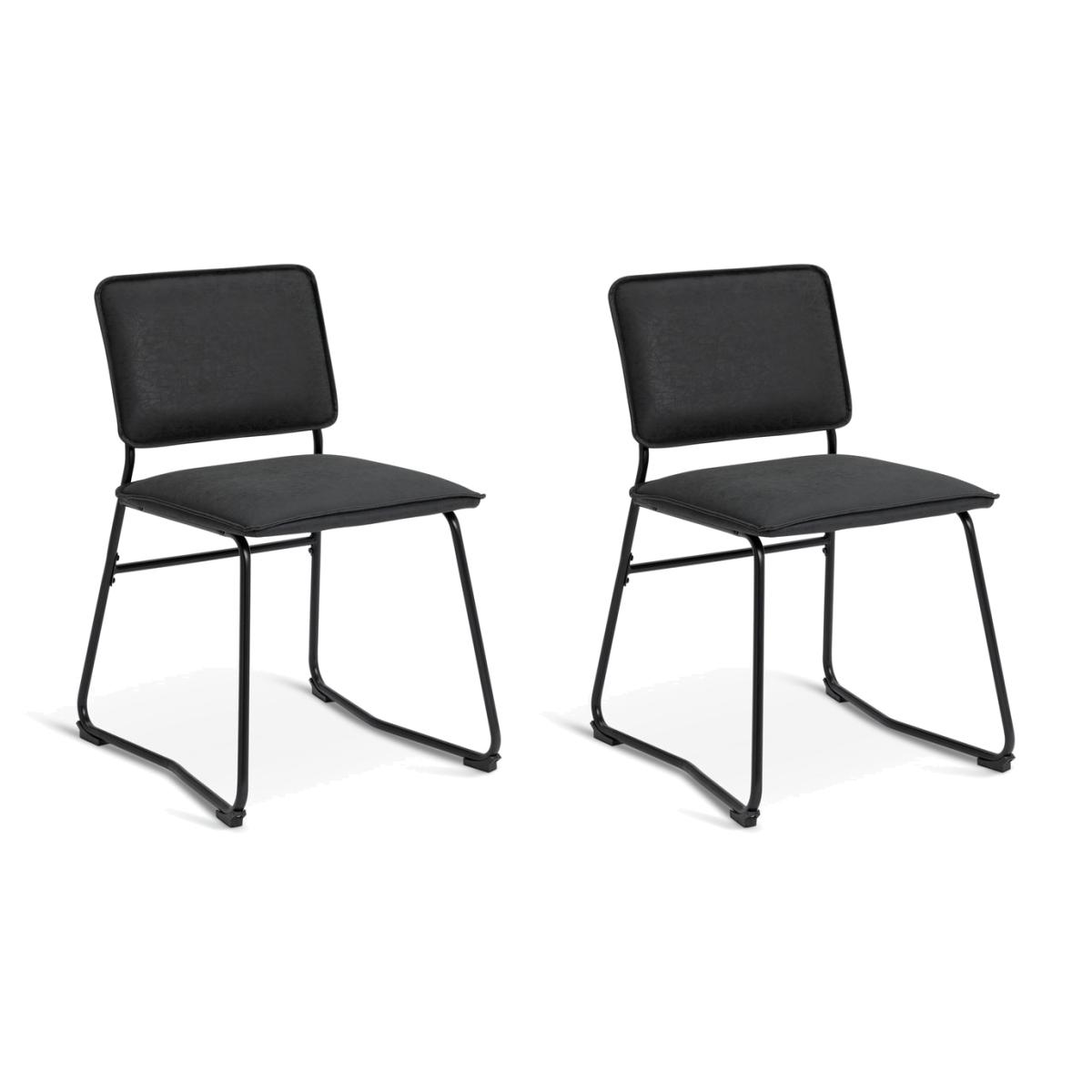 The best seats in the house. Settle down for dinner and drinks in our handsome dining chair duo. Earthy and retro. The padded back and seat are upholstered in faux leather with the look and feel of real leather. Combined with metal sled legs they create an industrial vibe. Part of the Loft Living collection. Chair: 2 chairs supplied. Size H80, W46.5, D53cm. Seat height 49cm. Metal frame with metal legs. Faux leather seat pad. Self-assembly - 1 person recommended. Max user weight per chair 130kg. Individual chair weight 6kg. Wipe clean with a damp cloth. Package Dimensions: Chair package size: H13, W78, D53cm. General information: Manufacturer's 1 year guarantee. FSC certified meaning the materials used for this product are responsibly sourced.