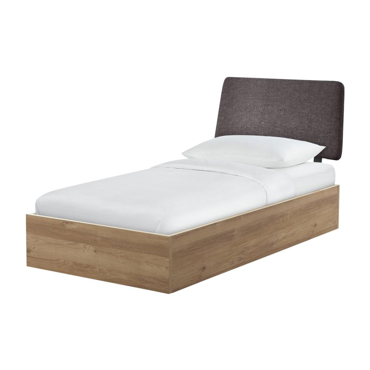 Stylish design combined with generous storage, that's the beauty of the Loft Living Ottoman single bed. Hidden inside the smooth oak veneer frame, there's an end-lift opening mechanism which gives you ample space to store seasonal linens, clothes, shoes and more. The warm wood and soft grey upholstered headboard complement each other perfectly, creating an effortlessly understated industrial look. For a touch of contemporary charm and a great night's sleep, there's no better choice than the Loft Living bed frame. Black powder-coated metal support struts keep the headboard securely attached to the base. Sprung wooden slats ensure a comfortable and breathable sleeping surface. Sounds good? Time to catch some zzzs. Mattress not included. Part of the Loft Living collection. Wooden frame. Base with sprung wooden slats. End lift. Ottoman: end opening. Storage capacity: 391 litres. Size W99, L207, H90cm. Height to top of siderail 30.5cm. Weight 36kg. Maximum user weight 110kg. Self-assembly - 2 people recommended. General Information:We are excited to be welcoming some of our favourite HOME products into the Habitat range. Your product may arrive in Habitat or HOME packaging. Manufacturer's 1 year guarantee.