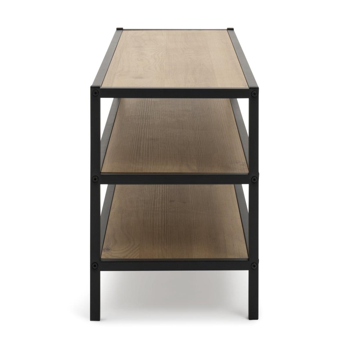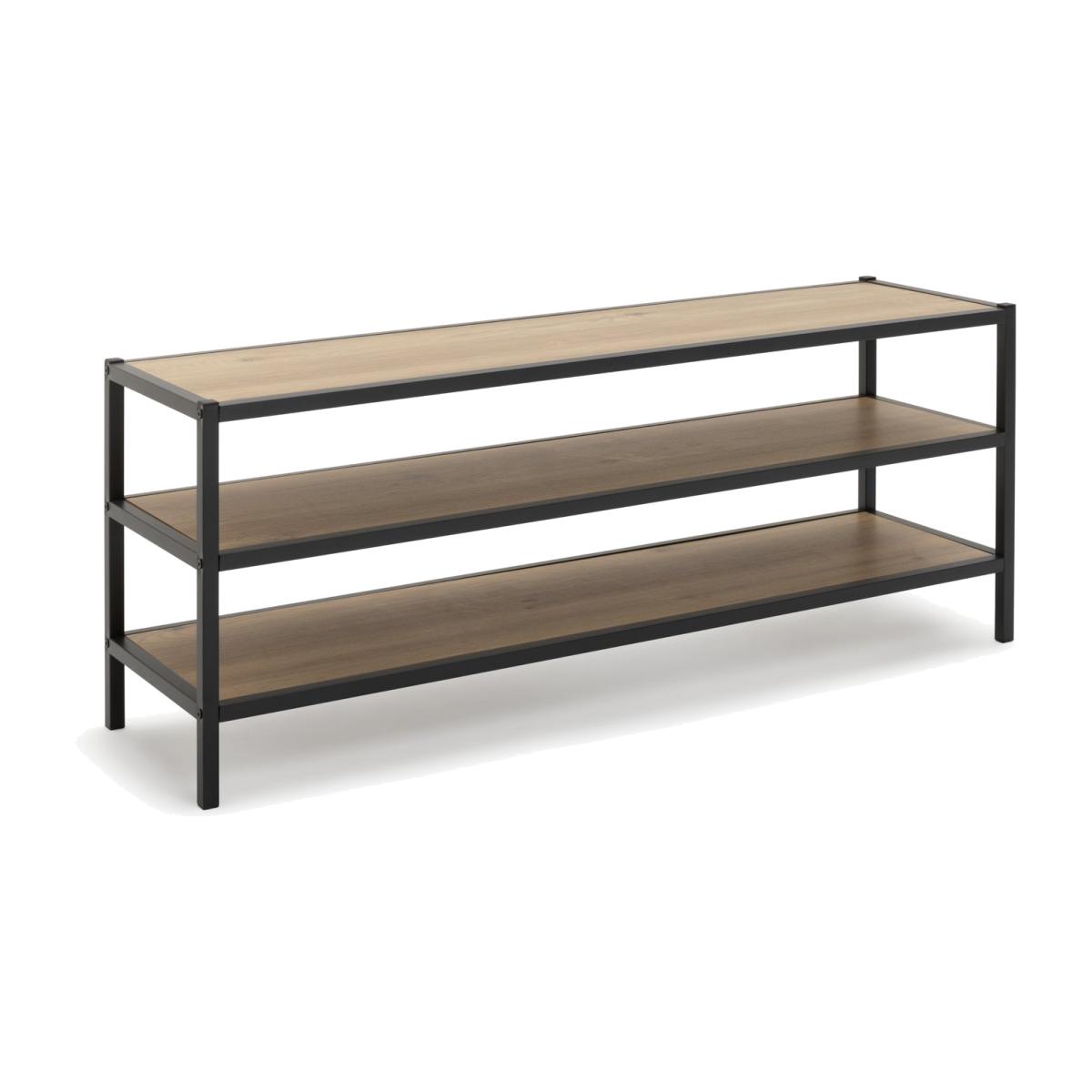 Create a loft living vibe. Our powder coated steel and oak look TV bench is uber cool. An angular industrial style frame set against a warm wood grain pattern. Open shelves give space for a cable box, gaming console and extra room for books. Part of the Loft Living collection. Made from steel and MDF with a wood effect finish. Collect in store today. Size H 47, W 120, D 34cm. Weight 15kg. Metal runners. 2 shelves. 2 media storage sections. Largest height of media equipment sections 15.5cm. Suitable for screen sizes up to 50in. Maximum weight of TV 20kg. Self-assembly - 2 people recommended. Package Dimensions: Package 1 dimensions: H14, W124, D37cm. Package 1 weight: 17.5kg. General information: We are excited to be welcoming some of our favourite HOME products into the Habitat range. Your product may arrive in Habitat or HOME packaging. FSC certified meaning the materials used for this product are responsibly sourced.