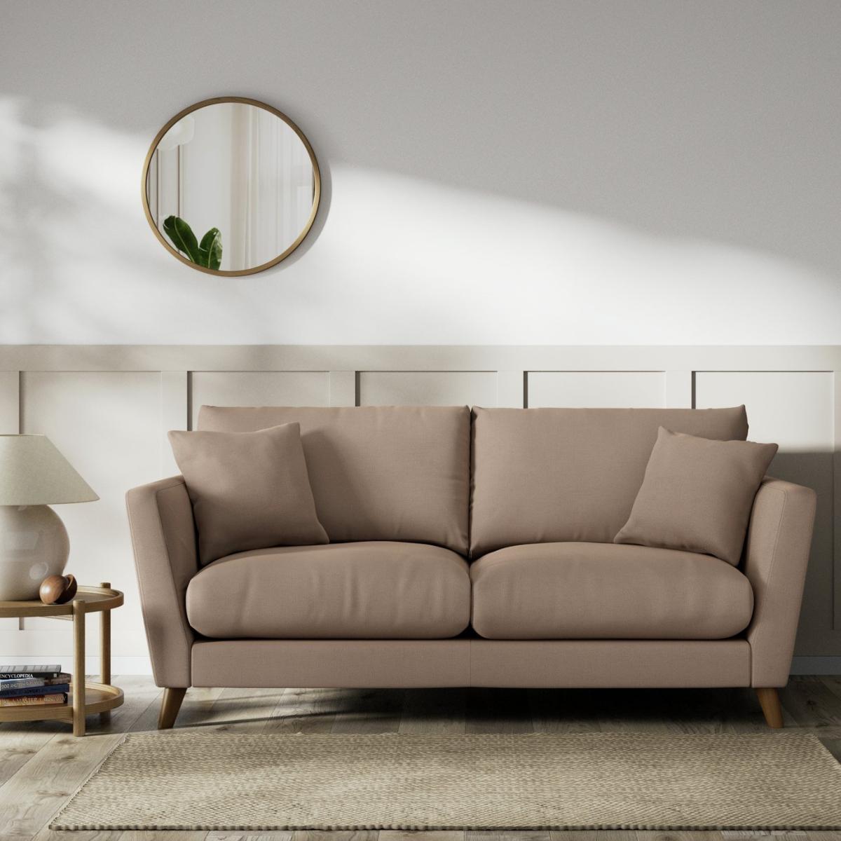 When it's made for you, you know you'll love it. Lomond is our first Full Circle range which means while its design roots are in mid-century, it's designed for the future. The entire filling and frame components of this quality sofa are fully recyclable. It's style is comfortably inviting, with generous seats, scatter cushions, gently angled lines and tapered wooden legs. And in Aquaclean chenille, the Lomond combines a soft feel with easy-clean durability. We've ensured Lomond can be easily disassembled into components, allowing its wooden frame and even legs, bolts and screws to be 100% recycled. And in the unlikely event of damage, this also makes it easy for our trained technician to call and mend it in your home. Offering a more supportive seat, the Lomond's cushions use 100% recycled fibre to create a relaxing, inviting look while offering controlled support. Hand made to order in the UK, the Lomond uses quality materials and traditional techniques for furniture that's unique to you. Available in a choice of sizes and fabrics including Aquaclean technology protection built into the yarn, which is easy to clean with just water. Part of the Lomond collection. Material: Made from 100% polyester. Wooden feet - dark wood. Removable seats with foam fibre wrap filling. Removable cushion(s) with foam fibre wrap filling. Free fabric swatch available on this line. Dimensions: Size H95, W209, D109cm. Floor to seat height: 52cm. Depth of seat: 64.5cm. Height of seat back: 44cm. Width of seating area between arms: 169cm. Height of arm rest: 71cm. Weight: 66kg. Packaged dimensions: Package size H100, W214, D114cm. General information: Your seat cushions may feel a little firm on delivery, they are brand new and will soften with regular use over the next few months. We do more than deliver your product, we unpack, set it up and take away the packaging. Manufactured in the UK using components sourced globally. Professional clean only. Plump cushions regularly to maintain shape. Manufacturer's 15 year frame guarantee.