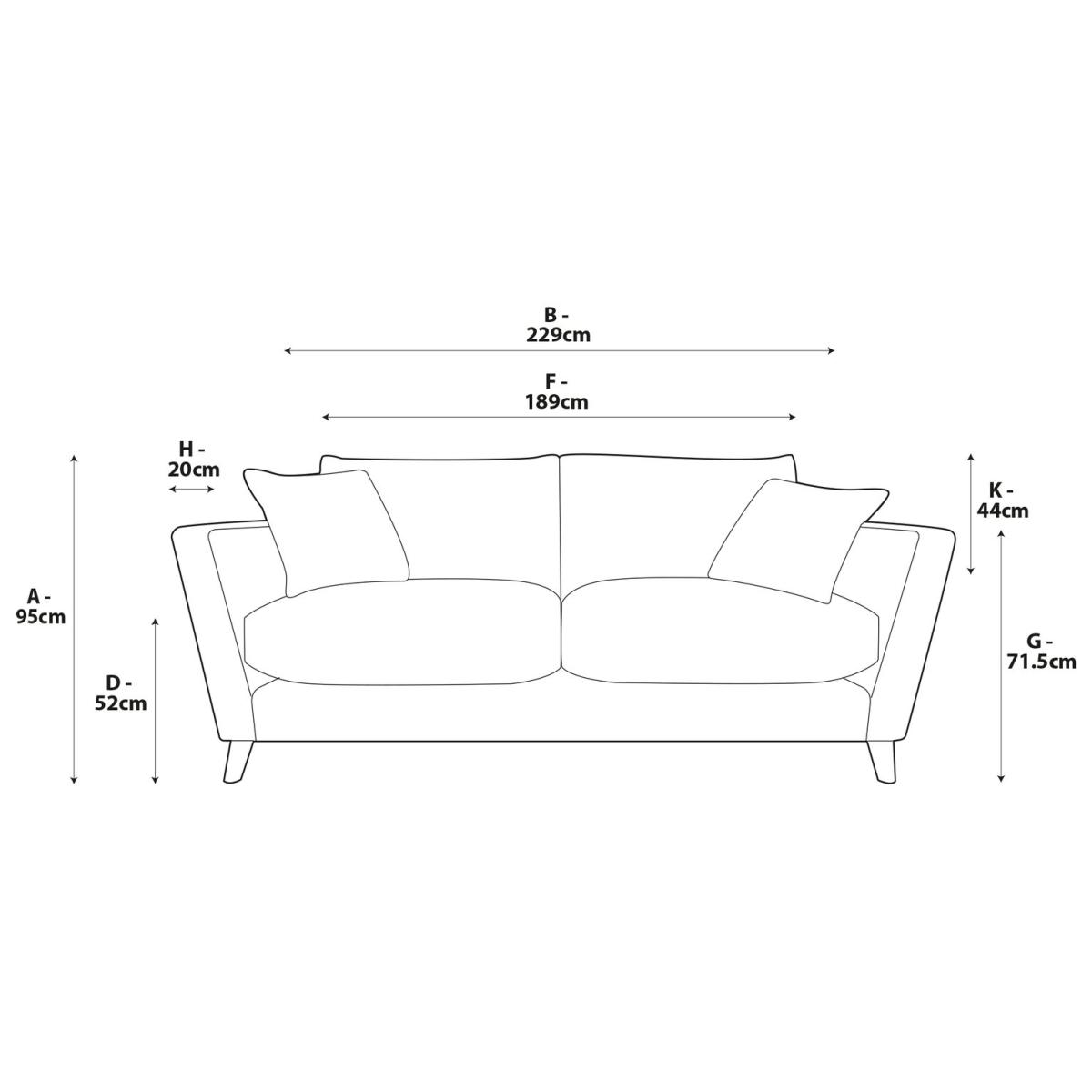 When it's made for you, you know you'll love it. Lomond is our first Full Circle range which means while its design roots are in mid-century, it's designed for the future with a focus on recycling. Its style is comfortably inviting, with generous seats, scatter cushions, gently angled lines and tapered wooden legs. And in a velvety sheen chenille, the Lomond takes on a rich, soft, textured look. We've ensured Lomond can be easily disassembled into components, allowing its wooden frame and even legs, bolts and screws to be 100% recycled. And in the unlikely event of damage, this also makes it easy for our trained technician to call and mend it in your home. Offering a more supportive seat, the Lomond's cushions use 100% recycled fibre to create a relaxing, inviting look while offering controlled support. Hand made to order in the UK, the Lomond uses quality materials and traditional techniques for furniture that's unique to you. Available in a choice of sizes and fabrics including Aquaclean technology protection built into the yarn, which is easy to clean with just water. Part of the Lomond collection. Material: Made from 100% polyester. Wooden feet - dark wood. Removable seats with foam fibre wrap filling. Removable cushion(s) with foam fibre wrap filling. Free fabric swatch available on this line. Dimensions: Size H95, W229, D109cm. Floor to seat height: 52cm. Depth of seat: 64.5cm. Height of seat back: 44cm. Width of seating area between arms: 189cm. Height of arm rest: 71cm. Weight: 70.5kg. Packaged dimensions: Package size H100, W235, D114cm. General information: FSC certified meaning the materials used for this product are responsibly sourced. We do more than deliver your product, we unpack, set it up and take away the packaging. Manufactured in the UK using components sourced globally. Professional clean only. Plump cushions regularly to maintain shape. Manufacturer's 15 year frame guarantee.