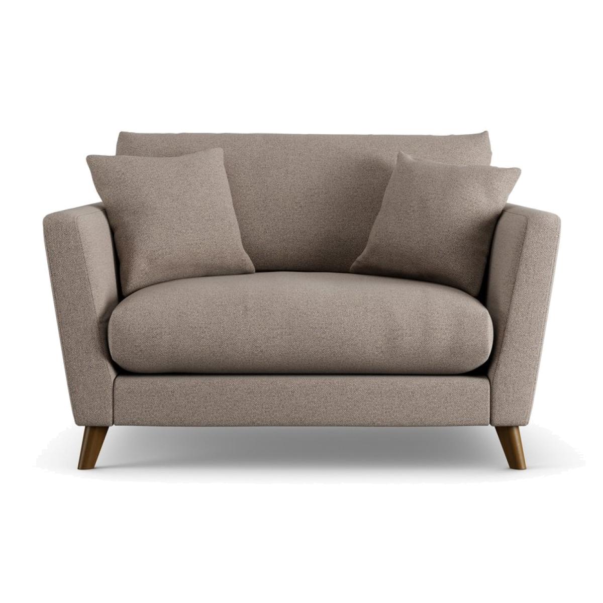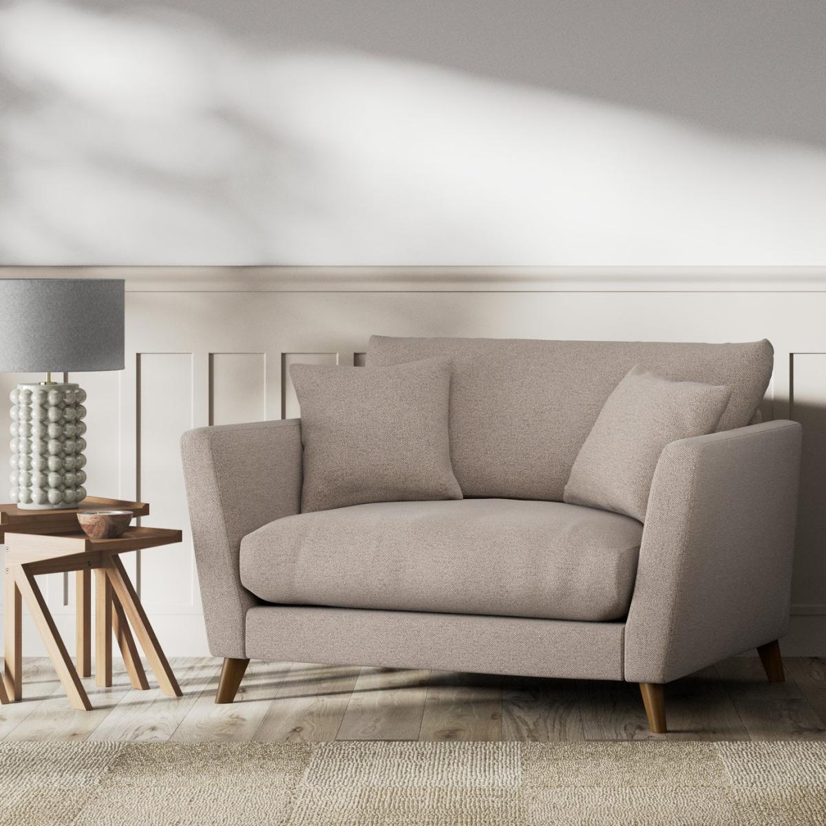 When it's made for you, you know you'll love it. Lomond is our first Full Circle range which means while its design roots are in mid-century, it's designed for the future with a focus on recycling. Its style is comfortably inviting, with generous seats, scatter cushions, gently angled lines and tapered wooden legs. And in a textured weave, the Lomond takes on a soft, tactile feel. Offering a more supportive seat, the Lomond's cushions use 100% recycled fibre to create a relaxing, inviting look while offering controlled support. Hand made to order in the UK, the Lomond uses quality materials and traditional techniques for furniture that's unique to you. Available in a choice of sizes and fabrics including Aquaclean technology protection built into the yarn, which is easy to clean with just water. Part of the Lomond collection. Material: Made from 100% polyester. Wooden feet. Removable seat with fibre filling. Removable cushion(s) with fibre filling. Dimensions: Size H95, W125, D109cm. Floor to seat height: 52cm. Depth of seat: 64.5cm. Height of seat back: 44cm. Width of seating area between arms: 85cm. Height of arm rest: 58cm. Weight: 46.5kg. Packaged dimensions: Package size H100, W130, D114cm. General information: FSC certified meaning the materials used for this product are responsibly sourced. We do more than deliver your product, we unpack, set it up and take away the packaging. Manufactured in the UK using components sourced globally. Professional clean only. Plump cushions regularly to maintain shape. Manufacturer's 15 year frame guarantee.