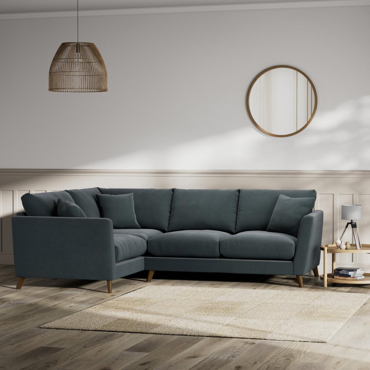 When it's made for you, you know you'll love it. Lomond is our first Full Circle range which means while its design roots are in mid-century, it's designed for the future with a focus on recycling. Its style is comfortably inviting, with generous seats, scatter cushions, gently angled lines and tapered wooden legs. And in a velvety sheen chenille, the Lomond takes on a rich, soft, textured look. We've ensured Lomond can be easily disassembled into components, allowing its wooden frame and even legs, bolts and screws to be 100% recycled. And in the unlikely event of damage, this also makes it easy for our trained technician to call and mend it in your home. Offering a more supportive seat, the Lomond's cushions use 100% recycled fibre to create a relaxing, inviting look while offering controlled support. Hand made to order in the UK, the Lomond uses quality materials and traditional techniques for furniture that's unique to you. Available in a choice of sizes and fabrics including Aquaclean technology protection built into the yarn, which is easy to clean with just water. Part of the Lomond collection. Left hand corner. Material: Made from 100% polyester. Wooden feet. Removable seats with foam fibre wrap filling. Removable cushion(s) with foam fibre wrap filling. Free fabric swatch available on this line. Dimensions: Size H95, longer width 274, shorter width 199,. Floor to seat height: 52cm. Depth of seat: 64.5cm. Height of seat back: 44cm. Shorter seating area width between arms: 137cm. Longer seating area width between arms: 213.5cm. Height of arm rest: 71cm. Weight: 98kg. Packaged dimensions: Package size H100, W174, D114cm. Second package size H100, W204, D114cm. General information: FSC certified meaning the materials used for this product are responsibly sourced. Your seat cushions may feel a little firm on delivery, they are brand new and will soften with regular use over the next few months. We do more than deliver your product, we unpack, set it up and take away the packaging. Manufactured in the UK using components sourced globally. Professional clean only. Plump cushions regularly to maintain shape. Manufacturer's 15 year frame guarantee.