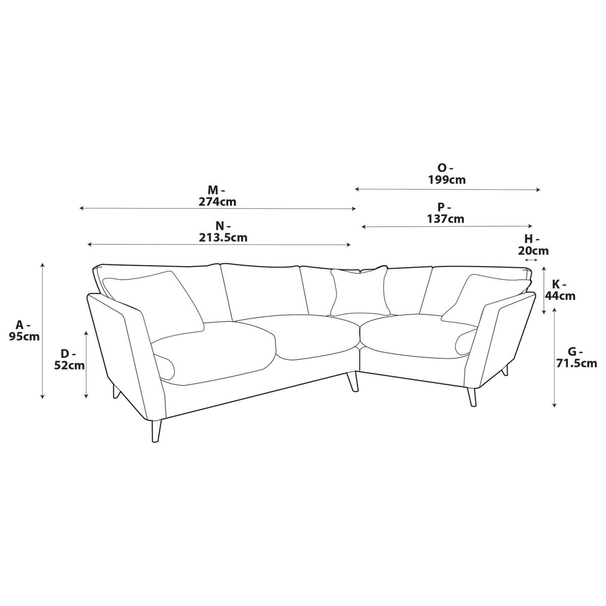 When it's made for you, you know you'll love it. Lomond is our first Full Circle range which means while its design roots are in mid-century, it's designed for the future with a focus on recycling. Its style is comfortably inviting, with generous seats, scatter cushions, gently angled lines and tapered wooden legs. And in a velvety sheen chenille, the Lomond takes on a rich, soft, textured look. We've ensured Lomond can be easily disassembled into components, allowing its wooden frame and even legs, bolts and screws to be 100% recycled. And in the unlikely event of damage, this also makes it easy for our trained technician to call and mend it in your home. Offering a more supportive seat, the Lomond's cushions use 100% recycled fibre to create a relaxing, inviting look while offering controlled support. Hand made to order in the UK, the Lomond uses quality materials and traditional techniques for furniture that's unique to you. Available in a choice of sizes and fabrics including Aquaclean technology protection built into the yarn, which is easy to clean with just water. Part of the Lomond collection. Right hand corner. Material: Made from 100% polyester. Wooden feet. Removable seats with foam fibre wrap filling. Removable cushion(s) with foam fibre wrap filling. Free fabric swatch available on this line. Dimensions: Size H95, longer width 274, shorter width 199,. Floor to seat height: 52cm. Depth of seat: 64.5cm. Height of seat back: 44cm. Shorter seating area width between arms: 137cm. Longer seating area width between arms: 213.5cm. Height of arm rest: 71cm. Weight: 98kg. Packaged dimensions: Package size H100, W174, D114cm. Second package size H100, W204, D114cm. General information: FSC certified meaning the materials used for this product are responsibly sourced. Your seat cushions may feel a little firm on delivery, they are brand new and will soften with regular use over the next few months. We do more than deliver your product, we unpack, set it up and take away the packaging. Manufactured in the UK using components sourced globally. Professional clean only. Plump cushions regularly to maintain shape. Manufacturer's 15 year frame guarantee.
