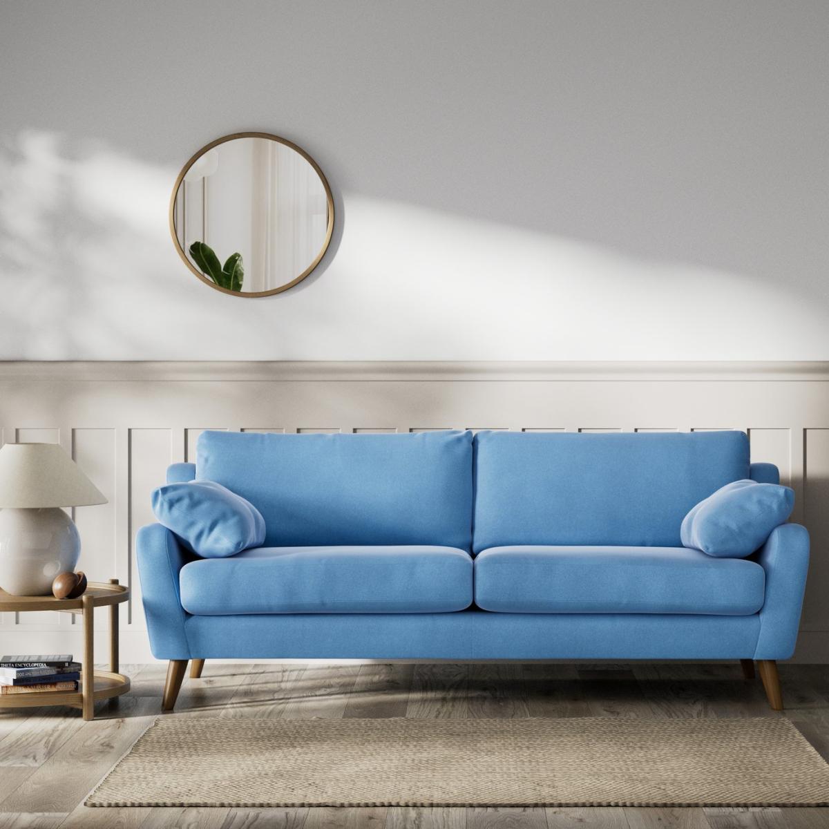When it's made for you, you know you'll love it. Lomond is our first Full Circle range which means while its design roots are in mid-century, it's designed for the future with a focus on recycling. Its style is comfortably inviting, with generous seats, scatter cushions, gently angled lines and tapered wooden legs. And in a rich velvet, it has a luxe look. We've ensured Lomond can be easily disassembled into components, allowing its wooden frame and even legs, bolts and screws to be 100% recycled. And in the unlikely event of damage, this also makes it easy for our trained technician to call and mend it in your home. Offering a more supportive seat, the Lomond's cushions use 100% recycled fibre to create a relaxing, inviting look while offering controlled support. Hand made to order in the UK, the Lomond uses quality materials and traditional techniques for furniture that's unique to you. Available in a choice of sizes and fabrics including Aquaclean technology protection built into the yarn, which is easy to clean with just water. Part of the Lomond collection. Material: Made from 100% recycled polyester. Wooden feet - dark wood. Removable seats with foam fibre wrap filling. Removable cushion(s) with foam fibre wrap filling. Free fabric swatch available on this line. Dimensions: Size H95, W229, D109cm. Floor to seat height: 52cm. Depth of seat: 64.5cm. Height of seat back: 44cm. Width of seating area between arms: 189cm. Height of arm rest: 71cm. Weight: 70.5kg. Packaged dimensions: Package size H100, W235, D114cm. General information: FSC certified meaning the materials used for this product are responsibly sourced. We do more than deliver your product, we unpack, set it up and take away the packaging. Manufactured in the UK using components sourced globally. Professional clean only. Plump cushions regularly to maintain shape. Manufacturer's 15 year frame guarantee.