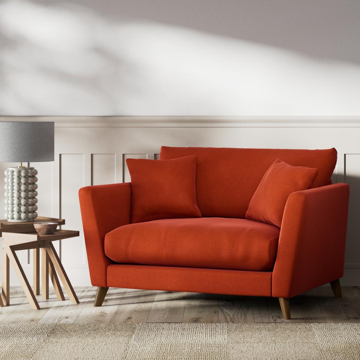 When it's made for you, you know you'll love it. Lomond is our first Full Circle range which means while its design roots are in mid-century, it's designed for the future with a focus on recycling. Its style is comfortably inviting, with generous seats, scatter cushions, gently angled lines and tapered wooden legs. And in a rich velvet, it has a luxe look. Offering a more supportive seat, the Lomond's cushions use 100% recycled fibre to create a relaxing, inviting look while offering controlled support. Hand made to order in the UK, the Lomond uses quality materials and traditional techniques for furniture that's unique to you. Available in a choice of sizes and fabrics including Aquaclean technology protection built into the yarn, which is easy to clean with just water. Part of the Lomond collection. Material: Made from 100% recycled polyester. Wooden feet. Removable seat with fibre filling. Removable cushion(s) with fibre filling. Dimensions: Size H95, W125, D109cm. Floor to seat height: 52cm. Depth of seat: 64.5cm. Height of seat back: 44cm. Width of seating area between arms: 85cm. Height of arm rest: 58cm. Weight: 46.5kg. Packaged dimensions: Package size H100, W130, D114cm. General information: FSC certified meaning the materials used for this product are responsibly sourced. We do more than deliver your product, we unpack, set it up and take away the packaging. Manufactured in the UK using components sourced globally. Professional clean only. Plump cushions regularly to maintain shape. Manufacturer's 15 year frame guarantee.