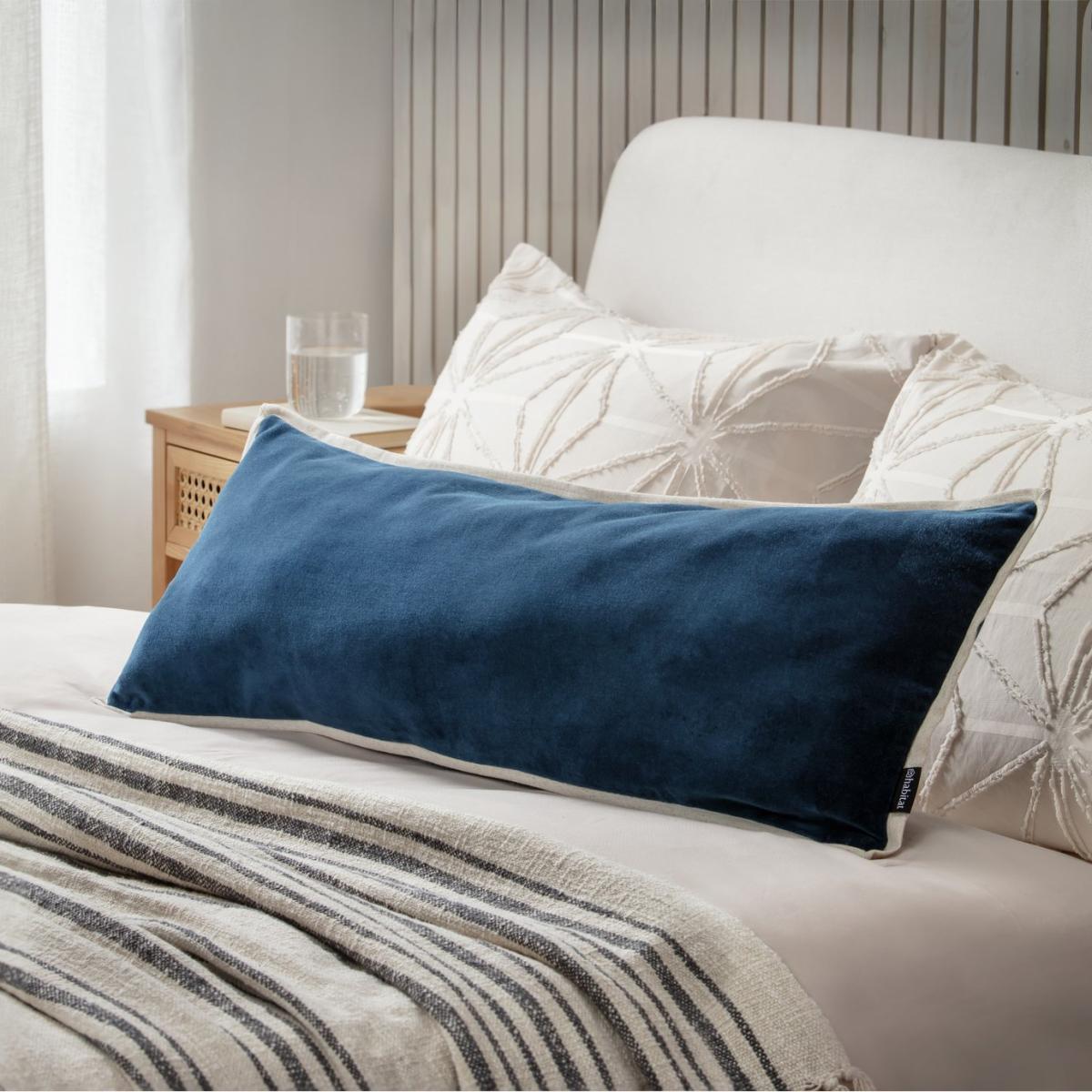 The Habitat long cushion in navy is a versatile piece that adds both colour and texture to a variety of interiors. I love how its rich navy tone brings a sophisticated touch without overpowering a space, making it ideal for modern, coastal, or even transitional settings. Its elongated shape works well along the length of a sofa or bed, offering comfortable support and style. For a layered look, pair it with neutral-toned cushions and throws or add patterned accents for visual interest. Practical styling tips include playing with different textures; combining the velvet feel of the cushion with softer linens or knits can elevate the overall feel of your room. It's a simple way to introduce colour while maintaining a clean and contemporary aesthetic.