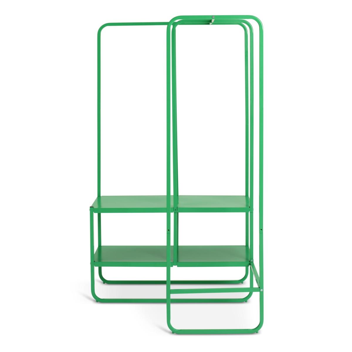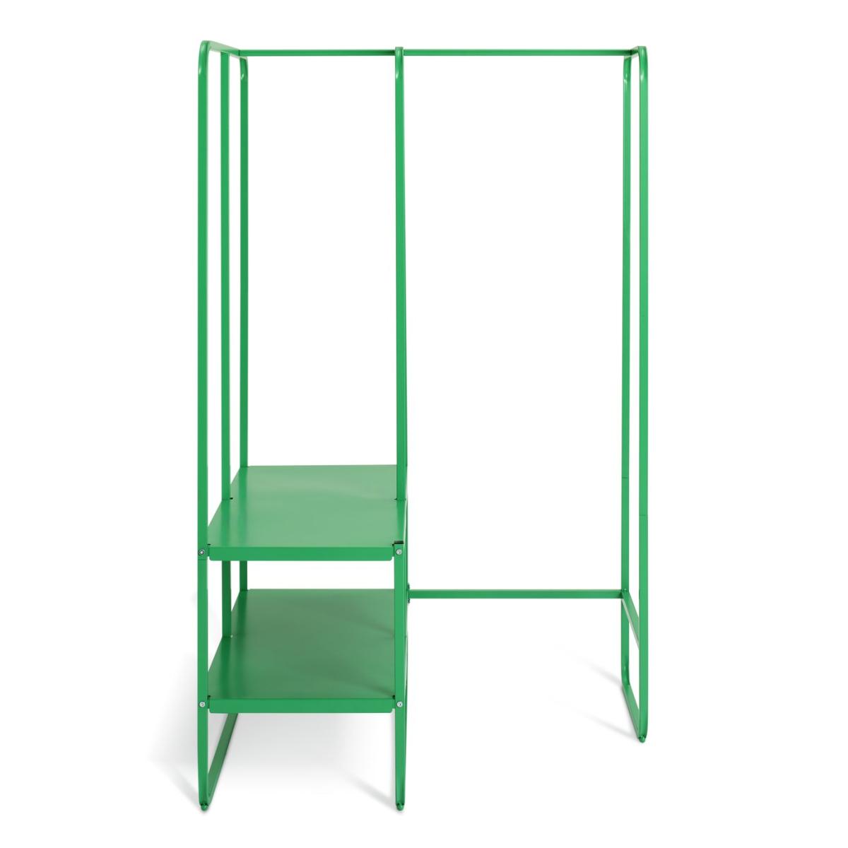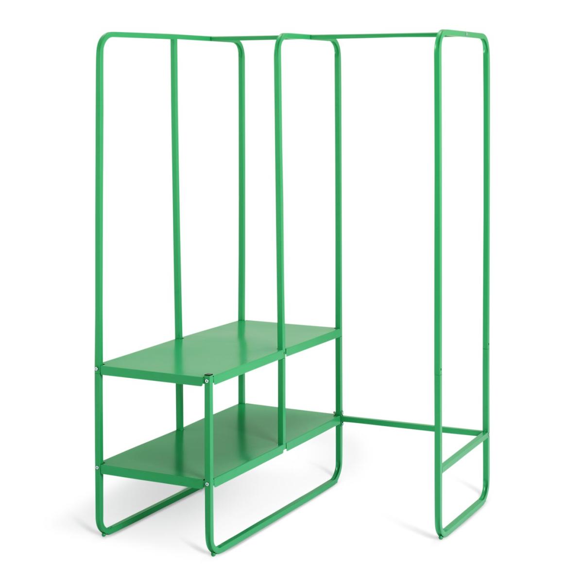 Our Lorelei corner clothes rail and shelving unit is perfect for students or as extra wardrobe-style storage in a guest or spare room. In lightweight green steel, this in-house design makes a great storage option with 2 fixed shelves for jumpers and tops. Cool vibe. Size H150, W85.5cm. Self-assembly. Manufacturer's 1 year guarantee.