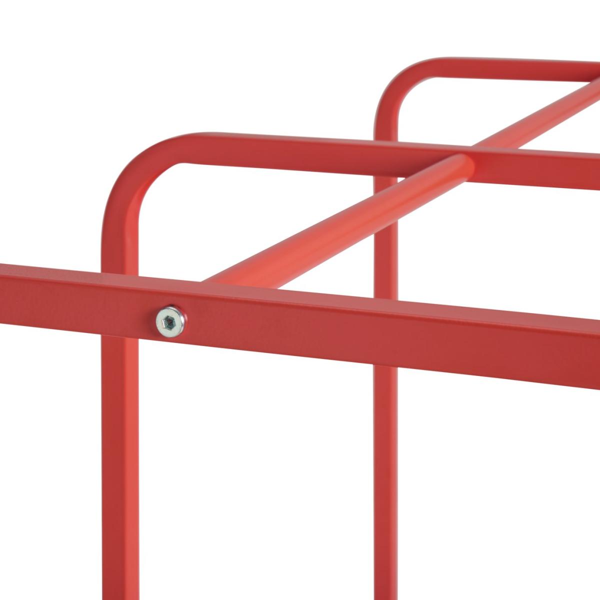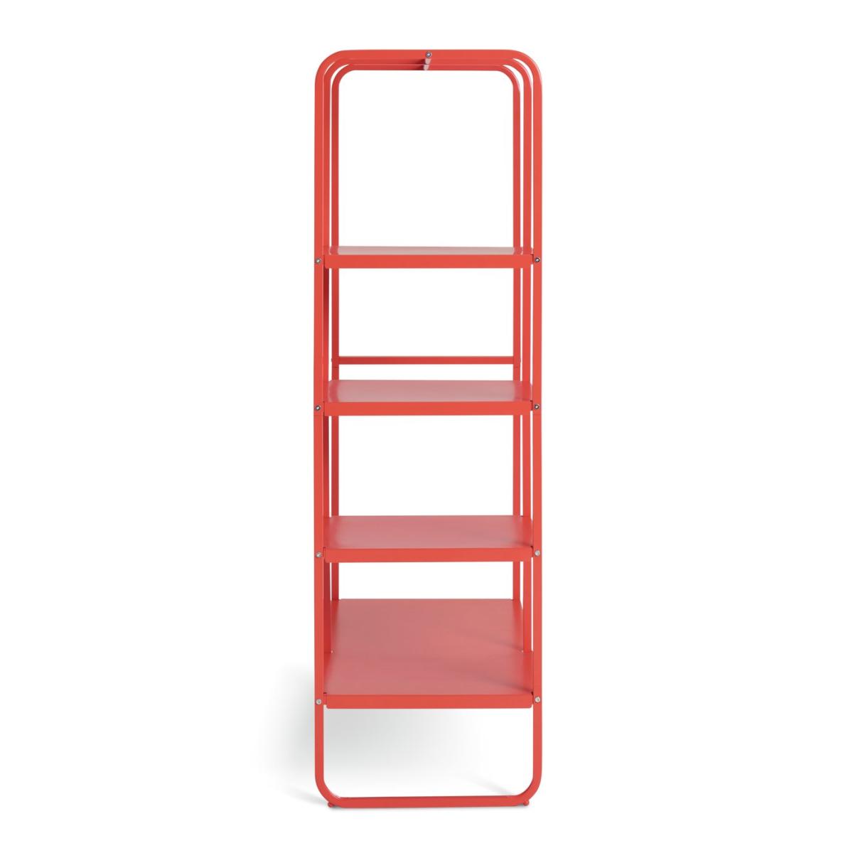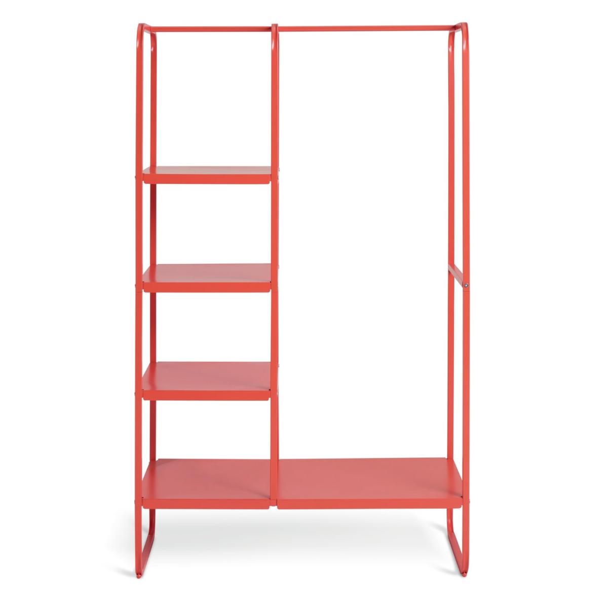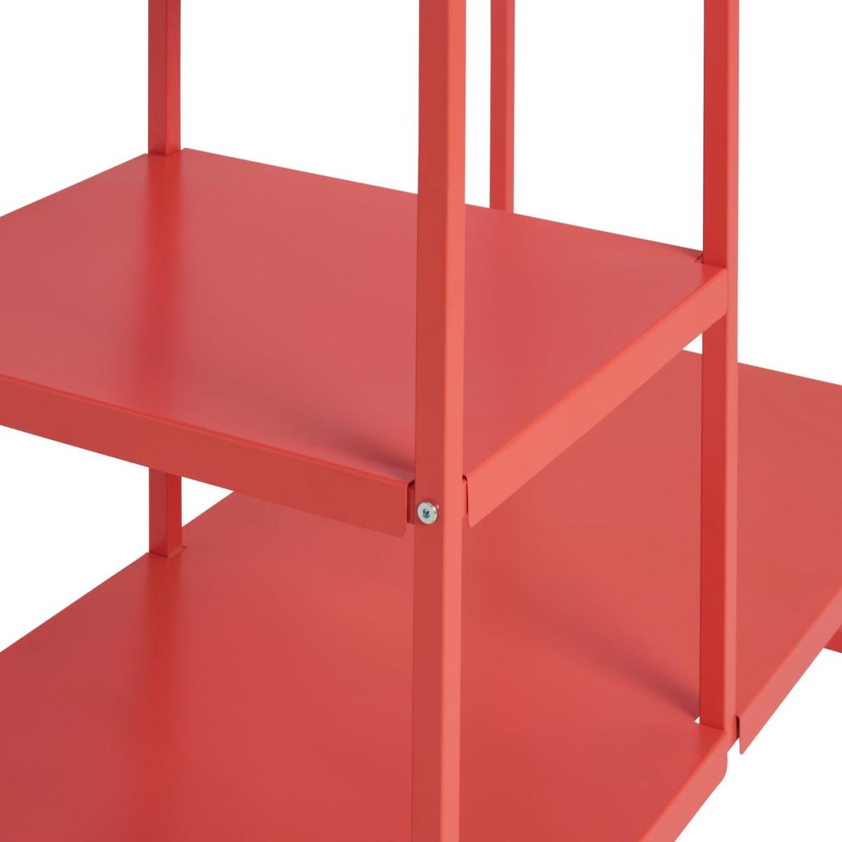 Our Lorelei double clothes rail and shelving unit is perfect for students or as extra wardrobe-style storage in a guest or spare room. In lightweight red steel, this in-house design makes a great storage option with a double depth shoe rack at the base and 3 fixed shelves for jumpers and tops. Cool vibe. Size H150, W45cm. Self-assembly. Manufacturer's 1 year guarantee.