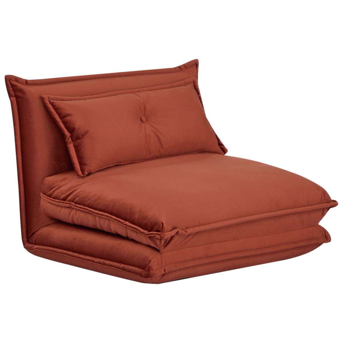 Extra seating or an extra spot for sleeping, Lottie can do both. Our softly relaxing chair bed is upholstered in velvet. It has a foam fibre wrapped seat and removable cushion with attractive button-back detailing. And when you need that spare bed, just fold Lottie out and you're all set. A colourful, comfy, convenient combo. Part of the Lottie collection. Materials: Made from 100% polyester. Fixed seat with foam fibre wrap filling. Removable cushion(s) with fibre filling. Free fabric swatch available on this line. Dimensions: Size H59, W85, D67cm. Floor to seat height: 32cm. Depth of seat: 51cm. Height of seat back: 27cm. Width of seating area between arms:85cm. Weight 11.2kg. Professional clean only. Plump cushions regularly to maintain shape. Fully assembled. Packaged dimensions: Package size H32, W85, D129cm. General information: Manufacturer's 2 year frame guarantee. FSC certified meaning the materials used for this product are responsibly sourced.