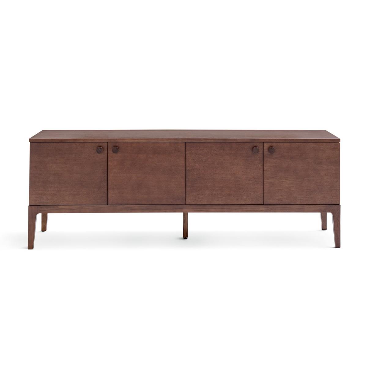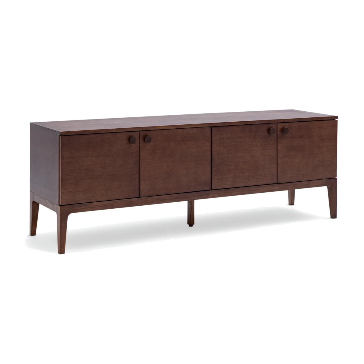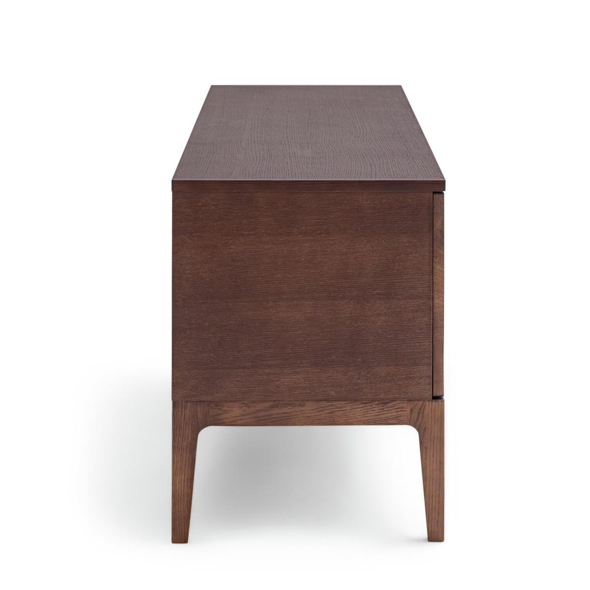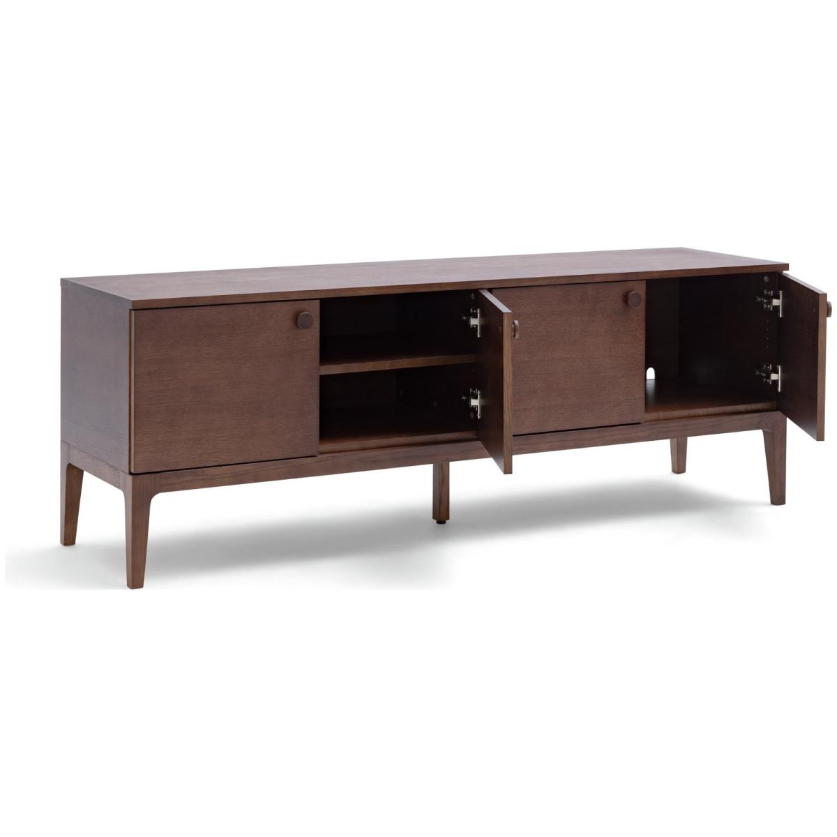 Mid Century inspired. The Loxley TV unit has clean lines and crafted curves in the right places. Providing a totally authentic feel with its walnut stained oak veneer. Two sets of double doors, easy cable access and inner shelving make it a great clutter buster to house gaming equipment, speakers and more. Finished with chunky wooden door pulls and characterful splayed legs, this makes a contemporary accent piece. Part of the Loxley collection. Made from oak with a painted finish. Size H 56, W 160, D 42cm. Weight 38kg. 2 shelves. 4 doors. Dark handles. 2 media storage sections. Largest height of media equipment sections 32cm. Easy cable access. Suitable for screen sizes up to 65in. Maximum weight of TV 50kg. Self-assembly. Package Dimensions: Package 1 dimensions: H34, W170, D52cm. Package 1 weight: 41kg. General information: We are excited to be welcoming some of our favourite HOME products into the Habitat range. Your product may arrive in Habitat or HOME packaging.