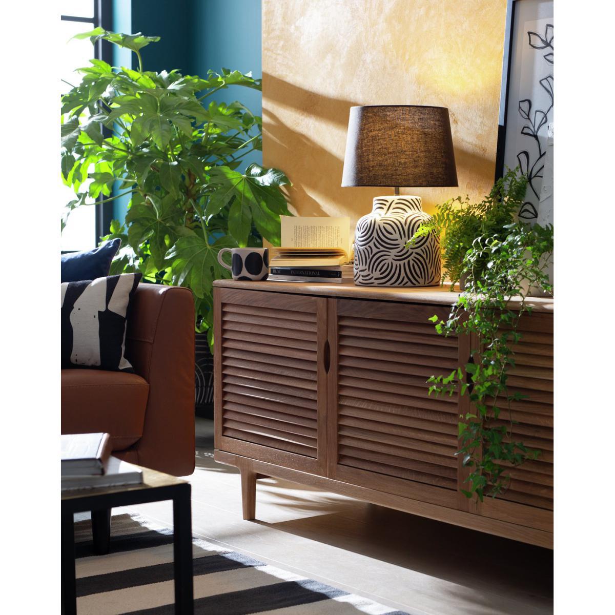 I love this lamp for its bold, graphic style and versatile colour palette. The black and white brush stroke design on the base makes it a statement piece that can anchor a range of interiors, from modern minimalist schemes to more eclectic spaces. It works especially well in living rooms or bedrooms where you want a touch of artistic flair without overwhelming the space. For styling tips, consider pairing it with neutral or monochrome accessories to let the lamp stand out, or add pops of colour nearby for a striking contrast. Its practical size makes it ideal as a bedside table lamp or to sit on a sideboard, adding both illumination and visual interest.