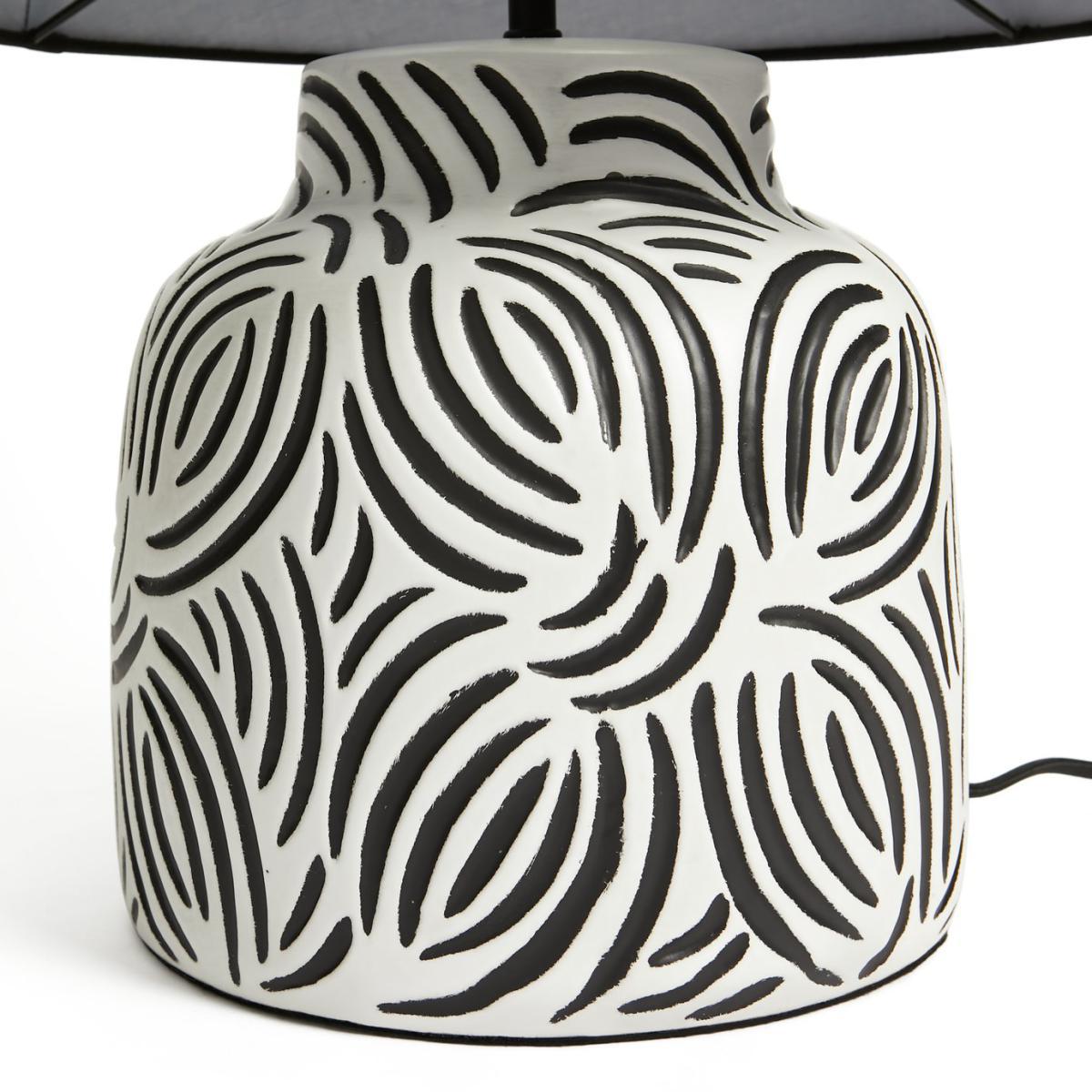 A mesmerising monochrome masterpiece. This black and white lamp has that iconic pop art feel. Embossed black brushstrokes form a daisy like pattern on the curved ceramic base. And to top it off, a simple black linen shade adds some dark drama. Full of contemporary character, this table lamp will grab all the attention wherever you put it. A stroke of design genius.
