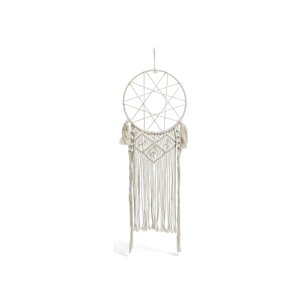 What a dream of a dream catcher. Beautifully made and knotted, it offers hand crafted looks with a very boho vibe. Simply find a special spot and hang using the pre-fitted ties. Wall art with heart. Made from cotton. Size H 1cm, W 14cm, D 15cm. Pack size: 1.