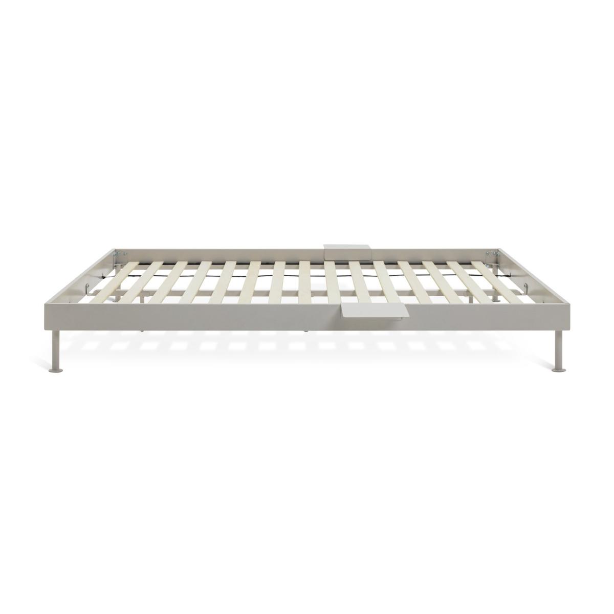 Rest easy. Maddox is a modern, simple and space-saving double bedframe, ideal for spare rooms, students and kids. It's lightweight and strong, with a pair of clever, optional hook-on bedside shelves. The sprung slat base allows ventilation and mattress comfort. And 16cm of underbed clearance is great for extra storage. Just add a mattress for a good night's sleep. Part of the Maddox collection. Metal frame. Base with plywood slats. Size W141, L196, H26cm. Height to top of siderail 26cm. 16cm clearance between floor and underside of bed. Weight 24.2kg. Total maximum user weight 220kg. Self-assembly - 2 people recommended. General Information: Manufacturer's 2 year guarantee. FSC certified meaning the materials used for this product are responsibly sourced.
