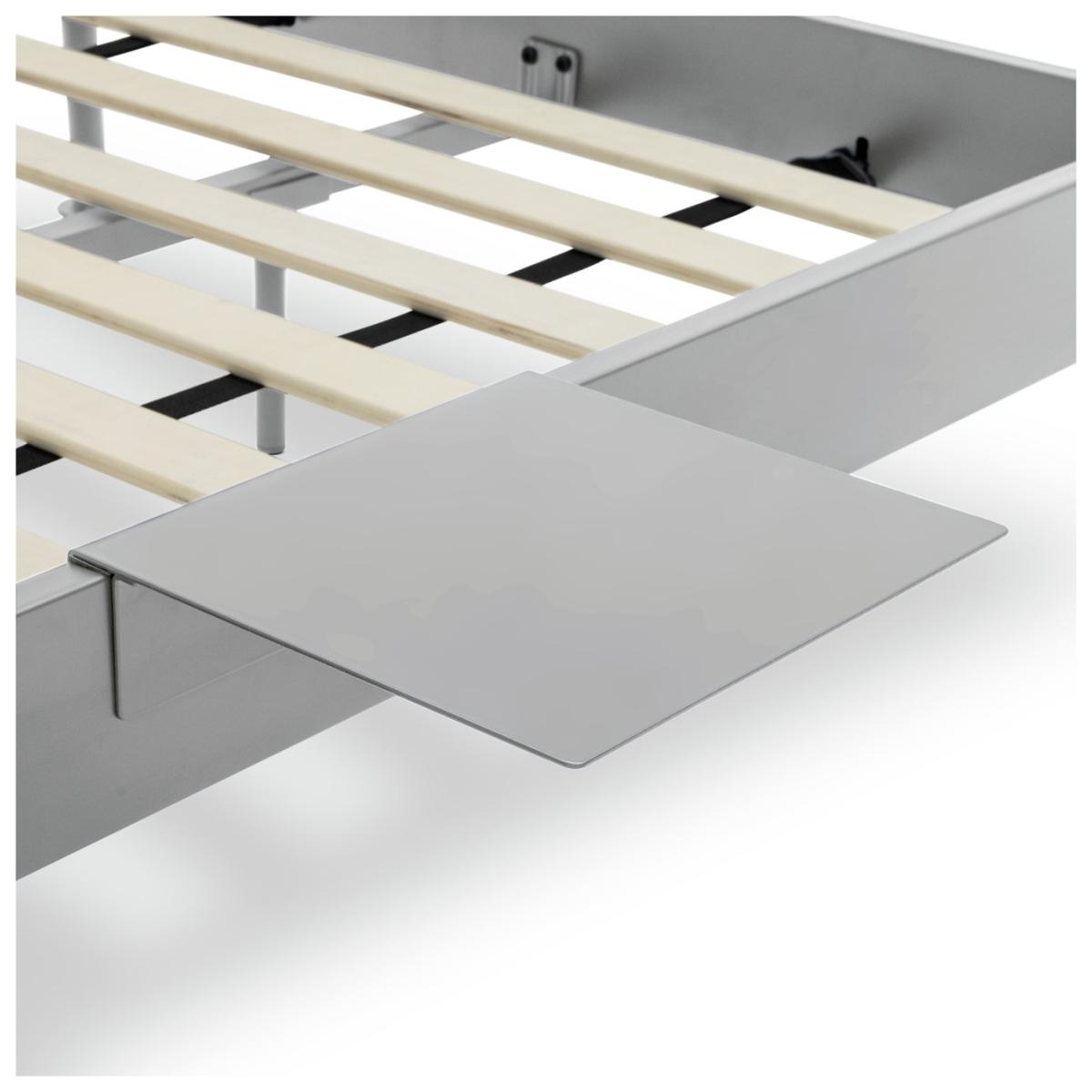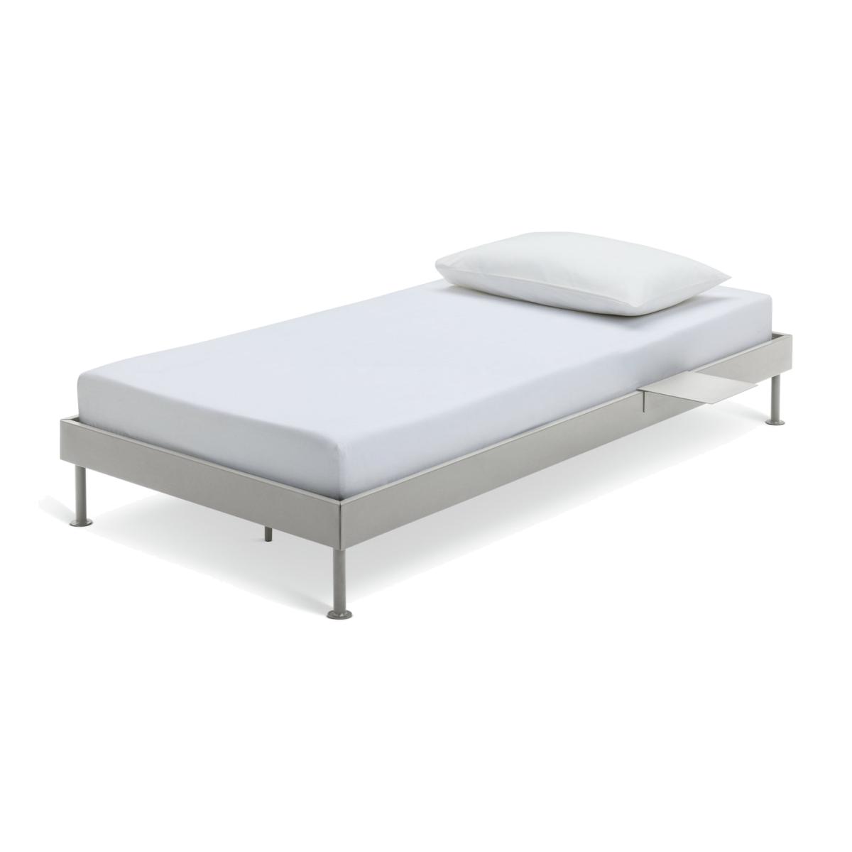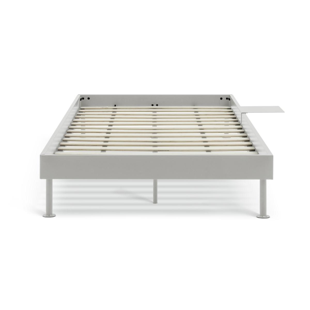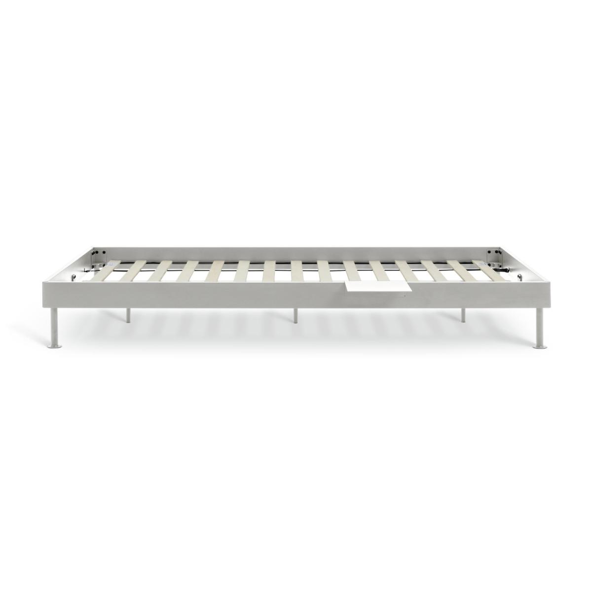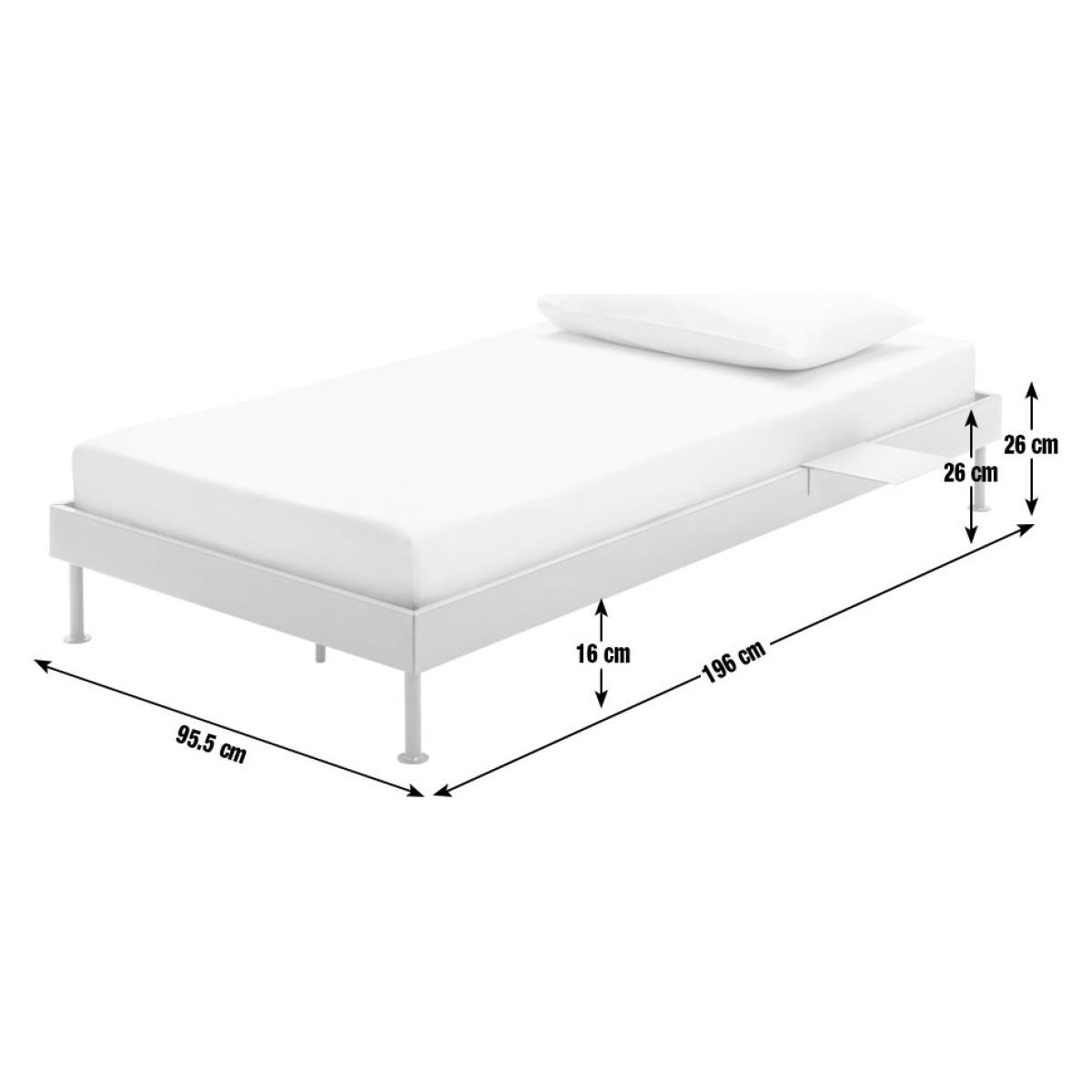Rest easy. Maddox is a modern, simple and space-saving single bedframe, ideal for spare rooms, students and kids. It's lightweight and strong, with a clever, optional hook-on bedside shelf for a water bottle or phone. The sprung slat base allows ventilation and mattress comfort. And 16cm of underbed clearance is great for extra storage. Just add a mattress for a good night's sleep. Part of the Maddox collection. Metal frame. Base with plywood slats. Size W95.5, L196, H26cm. Height to top of siderail 26cm. 16cm clearance between floor and underside of bed. Weight 19.9kg. Total maximum user weight 220kg. Self-assembly - 2 people recommended. General Information: Manufacturer's 2 year guarantee. FSC certified meaning the materials used for this product are responsibly sourced.