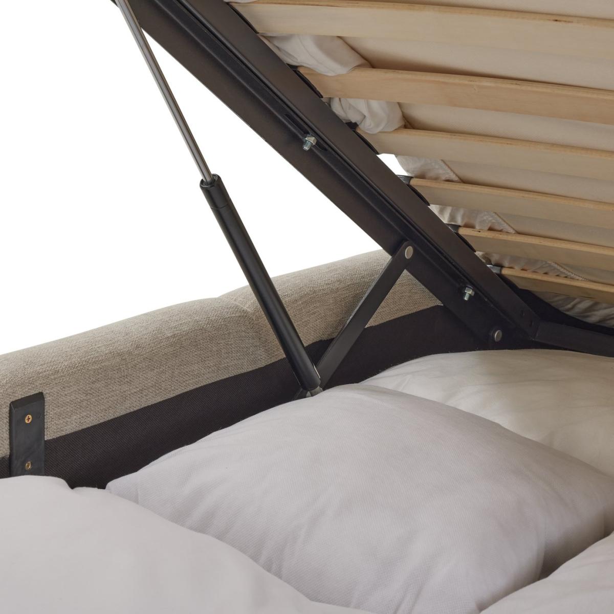 Modern, magnificent Malone. An ottoman superking size bedframe that offers high-end luxury with so much hidden storage. Its ultra padded and upholstered all-over linen feel from head to footboard creates a cool, contemporary scandanavian look with real comfort at its heart. To reveal the hidden space, gas lifts make it effortless to raise the end. Part of the Malone collection. Mattress not included. Headboard included. Linen look fabric - 100 % polyester. Plastic feet. Base with sprung wooden slats. End lift. Ottoman: end opening. Storage capacity: 698 litres. Size W205, L235, H98cm. Height to top of siderail 36.5cm. 1.5cm clearance between floor underside of bed. Internal storage space H19, W182, D202. Weight 75.5kg. Total maximum user weight 220kg. Self-assembly - 2 people recommended. Headboard: Fabric headboard. Headboard size H96, W205, D25cm. Package Dimensions: Package 1 dimension H27, W166, D103cm. Package 1 weight: 27kg. Package 2 dimensions: H27, W202, D38cm. Package 2 weight: 36.5kg. Package 3 dimension: H35, W207, D38cm. Package 3 weight: 23kg. General information: Manufacturer's 1 year guarantee. FSC certified meaning the materials used for this product are responsibly sourced.