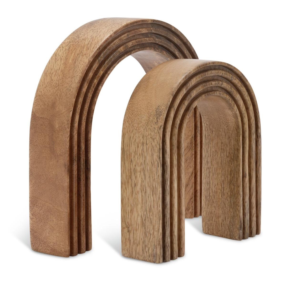 Arty arches. Use our architectural ornaments to dress your home. Very modish, this pair of mango wood carved objets are a mix of artisanal beauty and high design. Just add your personal touch for a dashing display. Size H15.5, W15.5, D3cm.