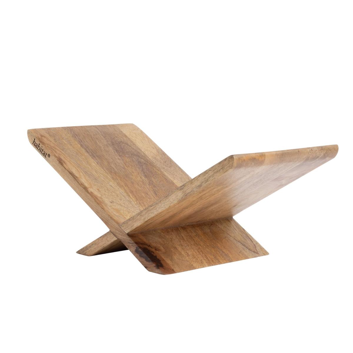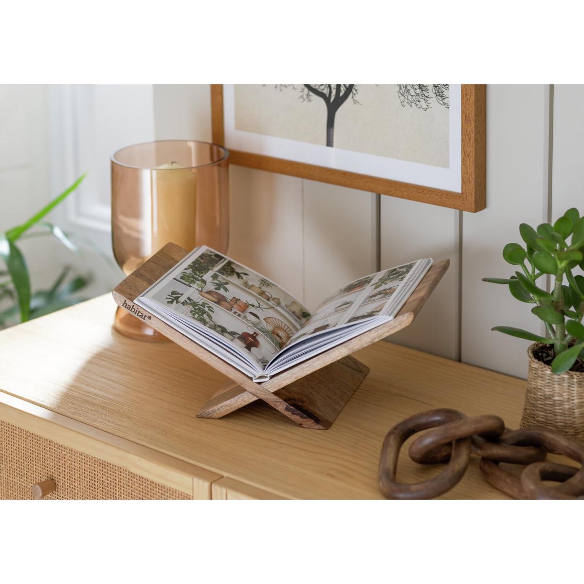 Now here's a very multi-functional bookstand. Perfect for recipe books. Designed to help you work efficiently and keep pages clean in the kitchen. Ideal for magazines and novels too, for those who like to read while they chop, mix, slice and dice. Made from mango wood, this is a simple but elegant design. A natural choice for cooks. Made from wood with a wood finish. 1 fixed shelf. Fully assembled. Dimensions: Size H15, W38, D20cm. Weight 1.2kg. Package dimensions: FSC certified meaning the materials used for this product are responsibly sourced. General Information: We are excited to be welcoming some of our favourite HOME products into the Habitat range. Your product may arrive in Habitat or HOME packaging.