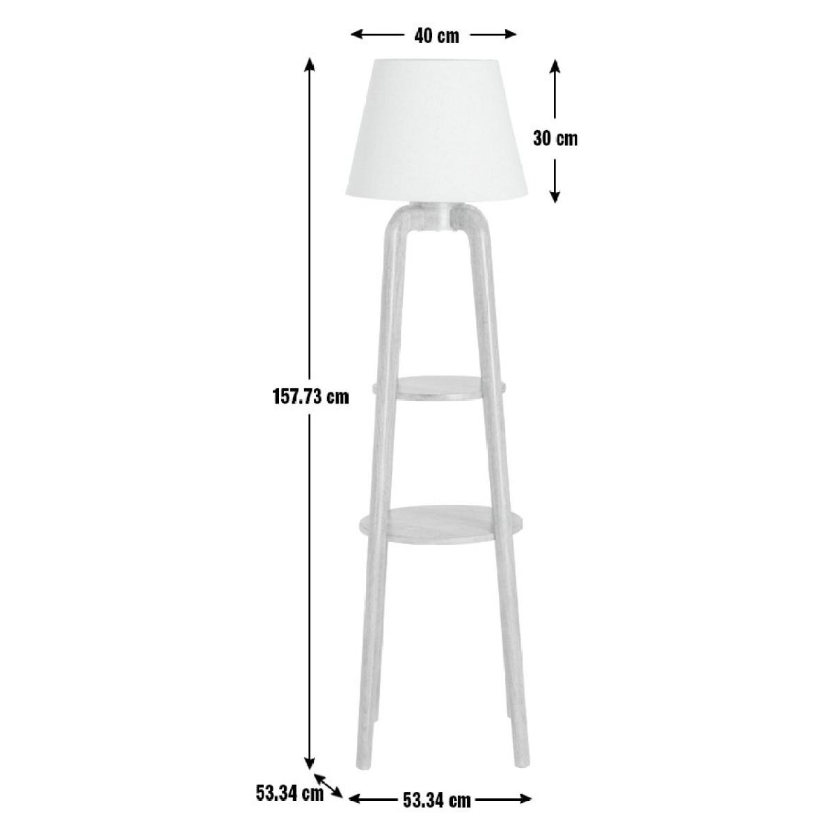 What a bright idea. Our floor lamp features a solid mango frame with a simple cotton linen shade to suffuse the light. And is also cleverly designed with 2 shelves so you can curate your very own display. Dimensions: Size H157.73, W53.34, D53.34 cm. Diameter 53.34cm. Diameter of base 53.34cm. Shade size H30, D 40cm. Cord length 3.5m. Bulb Information: Bulb required 1 x E27 edison screw (not included). 60 watts. General Information: Shade material: cotton and linen. Base material: mango wood. Foot switch. Self-assembly. Product is mains powered plug in. This lighting product is a class 2 fitting. Weight 6.56kg.