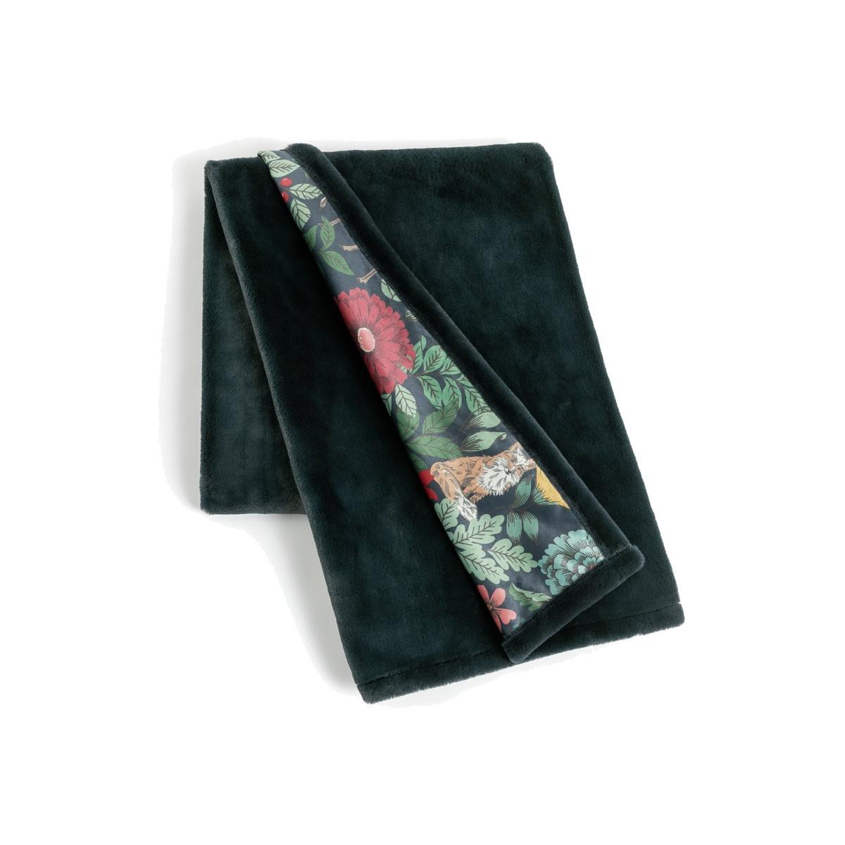 Wildly decadent. Wrap up warm in our super soft printed throw. The faux fur side in deep, emerald green is comfy enough to hibernate in. Flip it over to snuggle up with owls, foxes and deer. Brighten up your bed or sofa with a rich woodland scenery. Flowers bloom through the leaves and trees with royal reds, glorious greens and radiant yellows. In durable polyester, it's machine washable too. Classic, colourful, cosy. Love this look? Good news, we have cushions to match. 100% polyester. Size L125, W150cm. Machine washable.