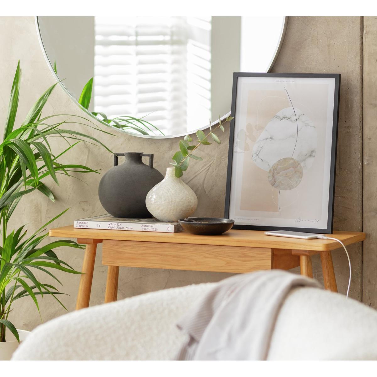 This marble print is a versatile piece that works well in a range of contemporary and minimalist interiors. I love its understated elegance and neutral tones, which make it easy to style with other textures and colours without overwhelming a space. It’s particularly effective in monochrome schemes or paired with soft neutrals to add a subtle layer of interest. Practical styling tips include framing it with a simple mat or in a sleek frame for a modern look, and hanging it in a living room or bedroom to create a calming focal point. Because of its versatile design, it also pairs well with natural materials like wood or metal accents for a balanced, polished aesthetic.