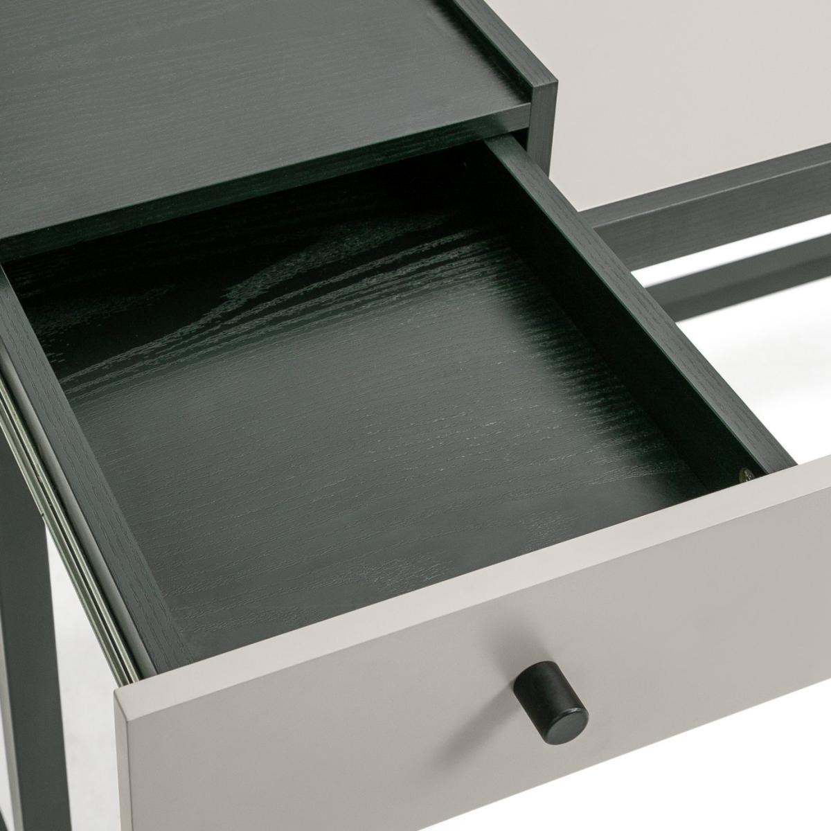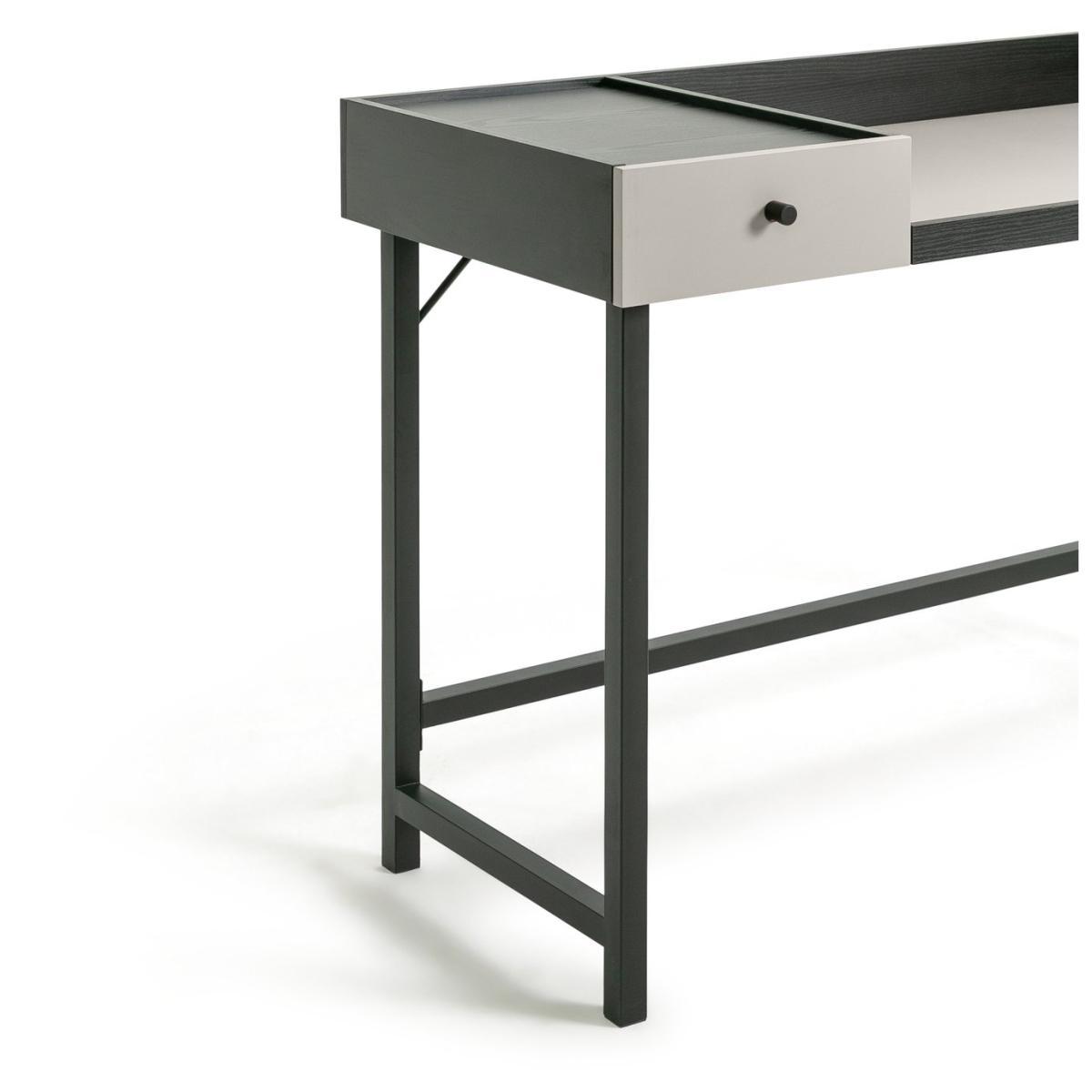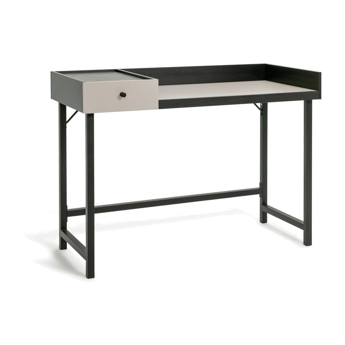 Tidy desk, tidy mind. Our two-toned compact desk is ideal for a work-from-home set up. Pull up a chair, open your laptop and settle in. Clean simple lines and a strong black frame brings a contemporary touch. Pens, pencils and notepads? Pop them inside the handy drawer. Thread cables through the hole to keep everything out the way and tangle-free. Available in 2 colour choices that's your home office, sorted.