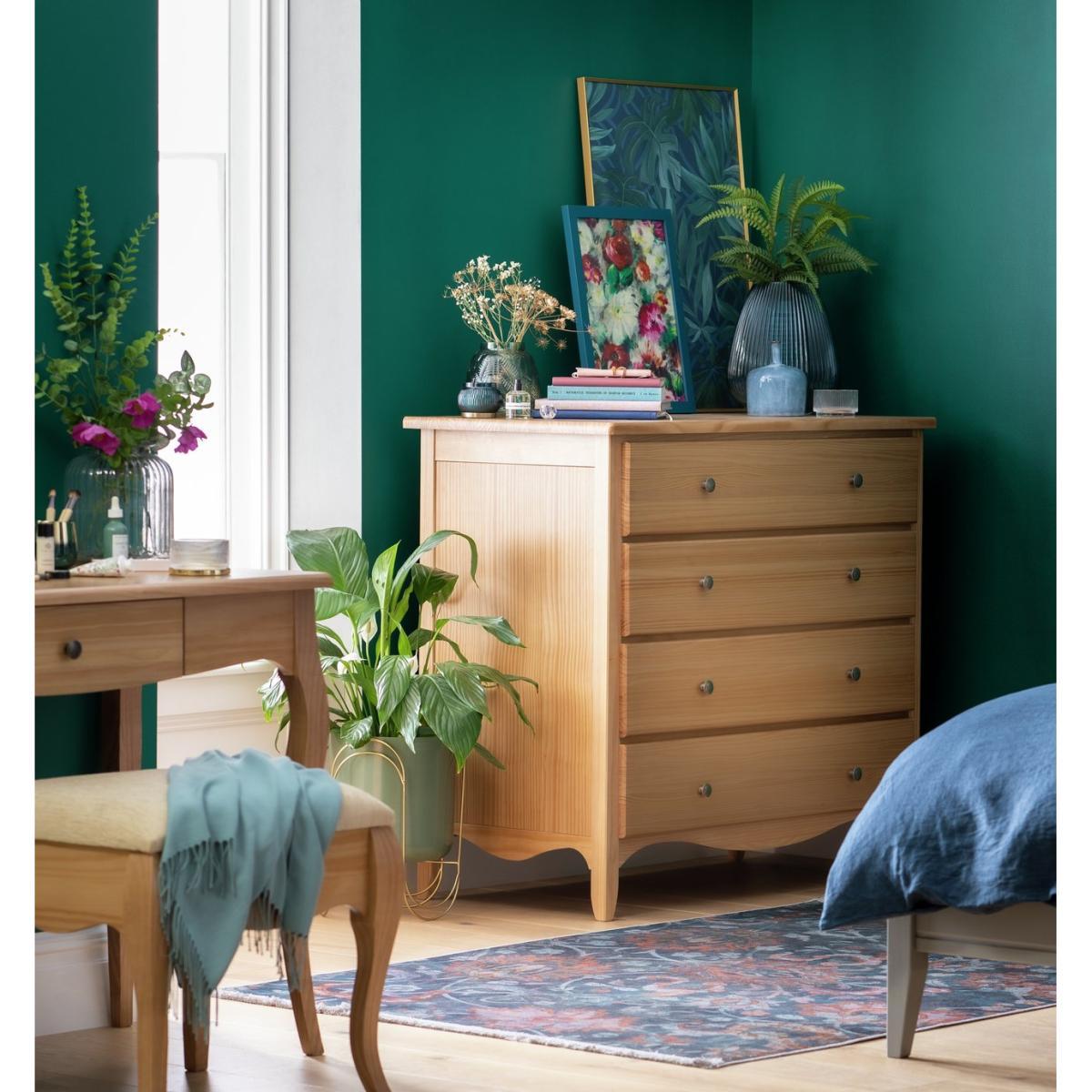 I love this chest of drawers because of its clean, natural oak finish which effortlessly brings a warm, timeless feel to any space. It works particularly well in Scandi-inspired or minimalist interiors thanks to its simple lines and understated elegance. Practical styling tips include pairing it with soft textiles and subtle decor to create a relaxing bedroom or stretching its versatility in a living room or hallway. Its four drawers offer ample storage, making it a great solution for keeping clutter at bay while still looking stylish. Plus, the slightly curved apron adds a gentle touch of character without overpowering a room’s overall aesthetic.