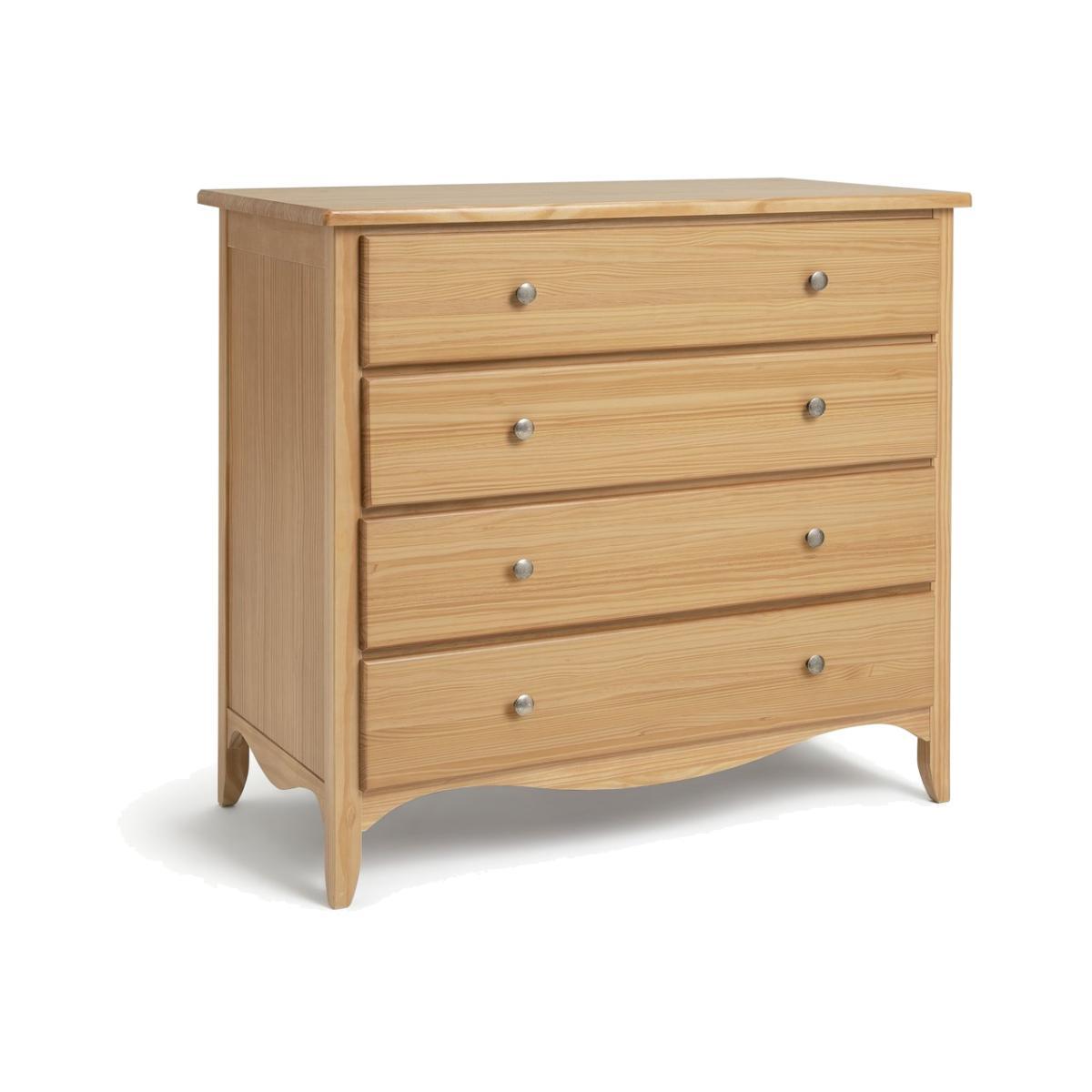 Neat and natural, that's Margot. With its smooth oak finish and curved detailing, this chest of drawers is a neat way to keep your clothes tidy. The 4 drawers glide smoothly on metal runners and feature stylish metal handles. Can't find your socks in the morning? Get organised with a separate drawer for each type of garment. Underwear, t-shirts, jumpers and trousers, there's space for everything. Margot offers a lovely display spot for picture frames and ornaments too. Perfect.