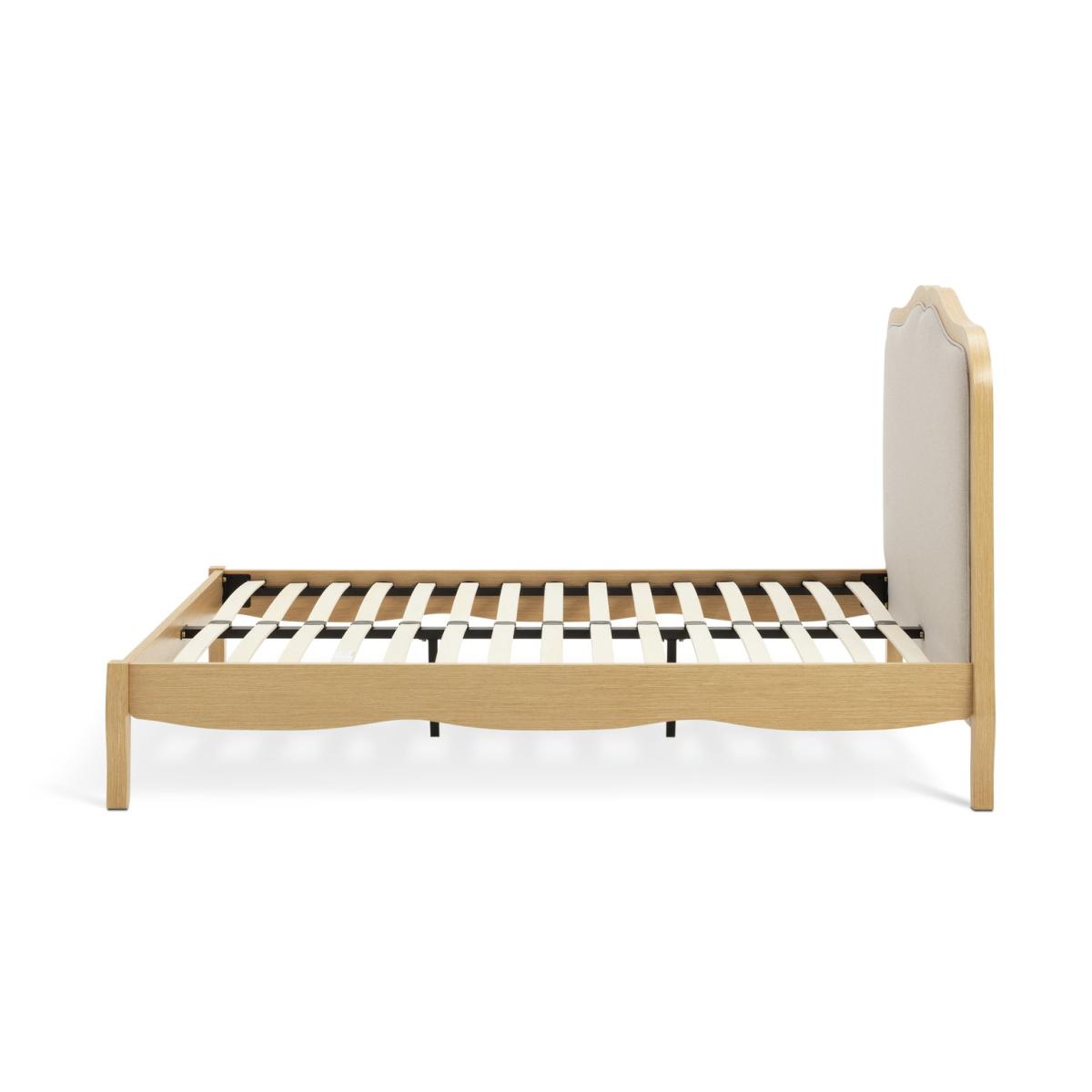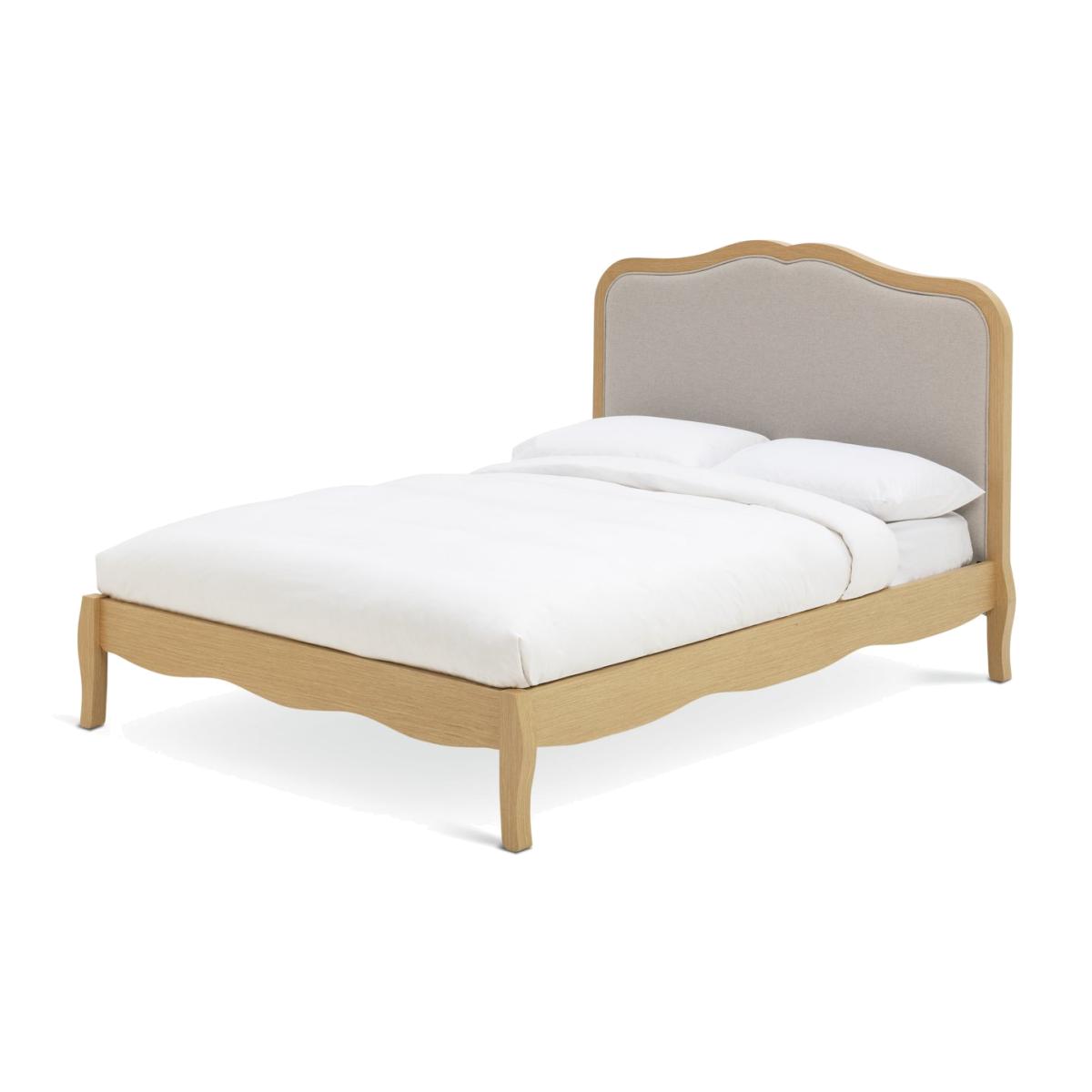 Applaud those curves. Fashioned in the French style this curvaceous bed enjoys taking centre stage. A scalloped oak veneer frame gives a solid performance. The slatted sprung base provides good support. But the star of the show is the flamboyant headboard. Softly padded and upholstered in a smart tweed-like fabric it sits beautifully within its shapely frame. Bravo Margot! Looking for a mattress to partner your new Margot bedframe? We've lots to choose from. Get comfortable and take a peek. Soft touch woven fabric with subtley flecked weave. Part of the Margot collection. Wooden frame. Flat weave fabric - 100% polyester. Size W151.5, L202.5, H118.5cm. Height to top of siderail 33.4cm. 15cm clearance between floor and underside of bed. Weight 39.4kg. Total maximum user weight 220kg. General Information: We are excited to be welcoming some of our favourite HOME products into the Habitat range. Your product may arrive in Habitat or HOME packaging. Manufacturer's 2 Year (1 year fabric) guarantee. FSC certified meaning the materials used for this product are responsibly sourced.