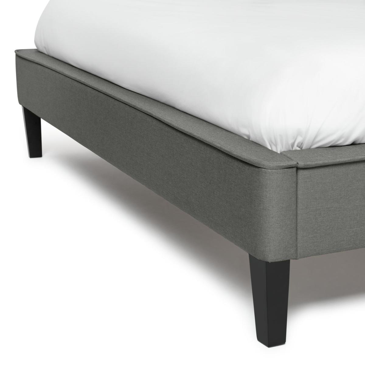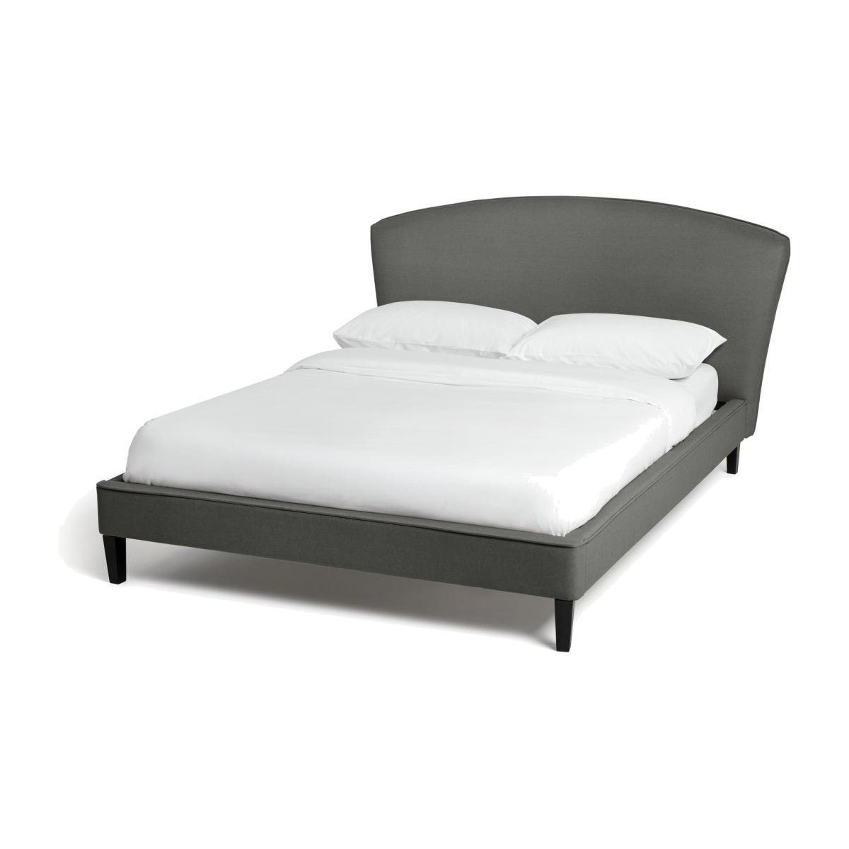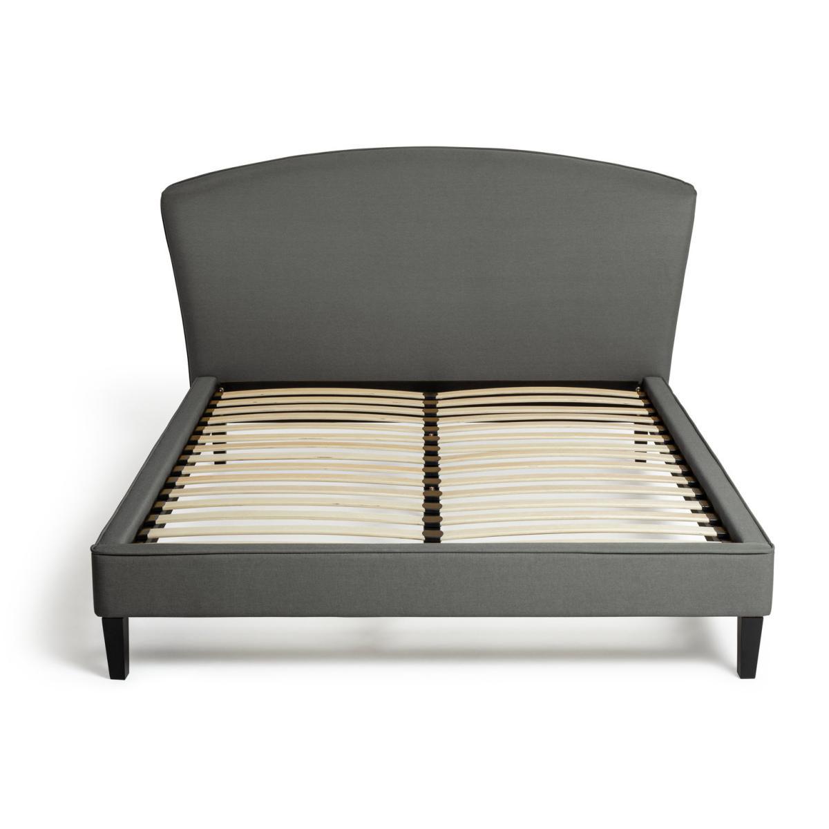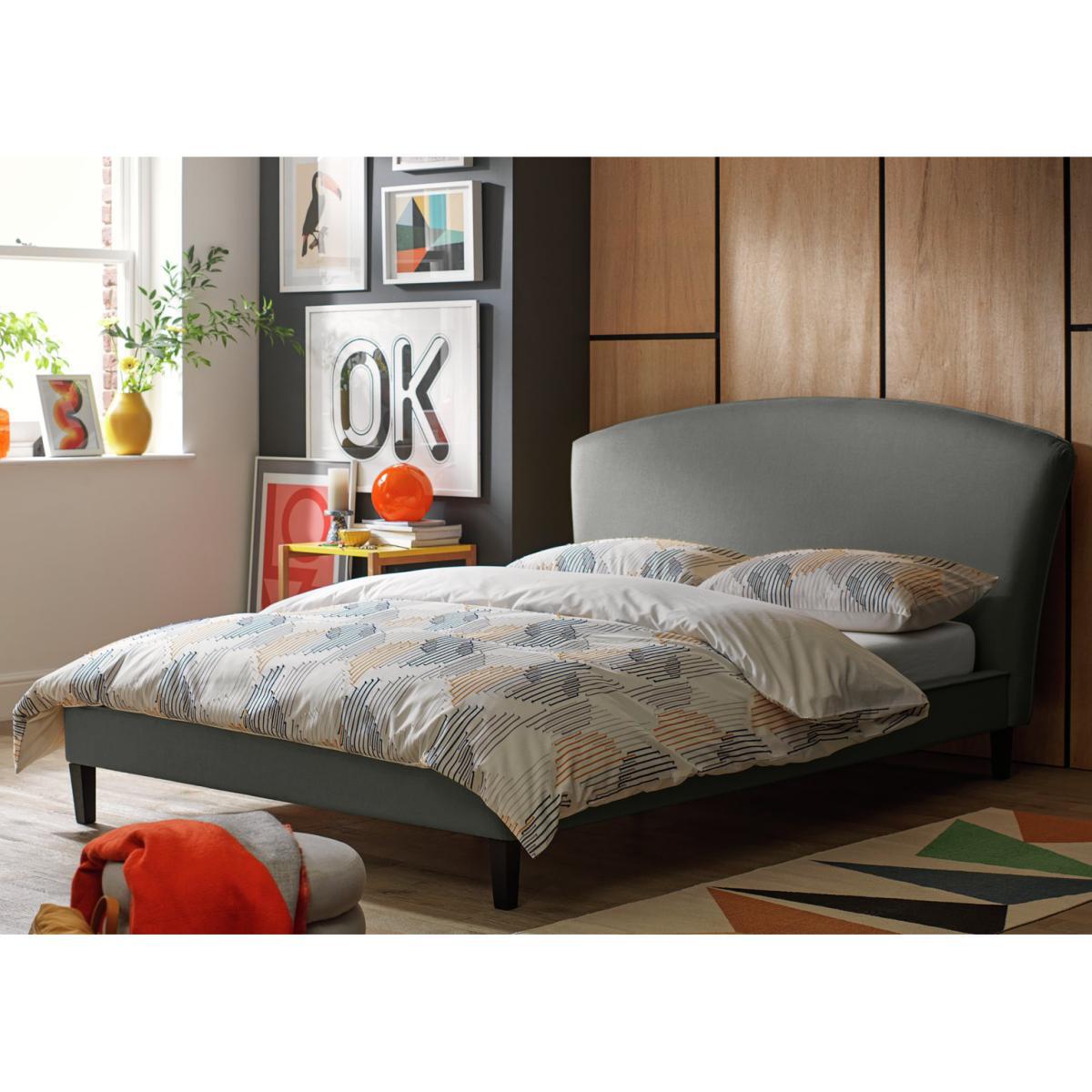 Bring a fresh feel to your bedroom with our Marlon fabric bed frame. Upholstered in grey, with a curvaceous headboard, it's soft to the touch with black tapered solid wood legs to lend a little drama. While sprung wooden slats provide a strong foundation for your mattress. Minimalist or vibrant decor? This bold bed frame is comfortable with either.