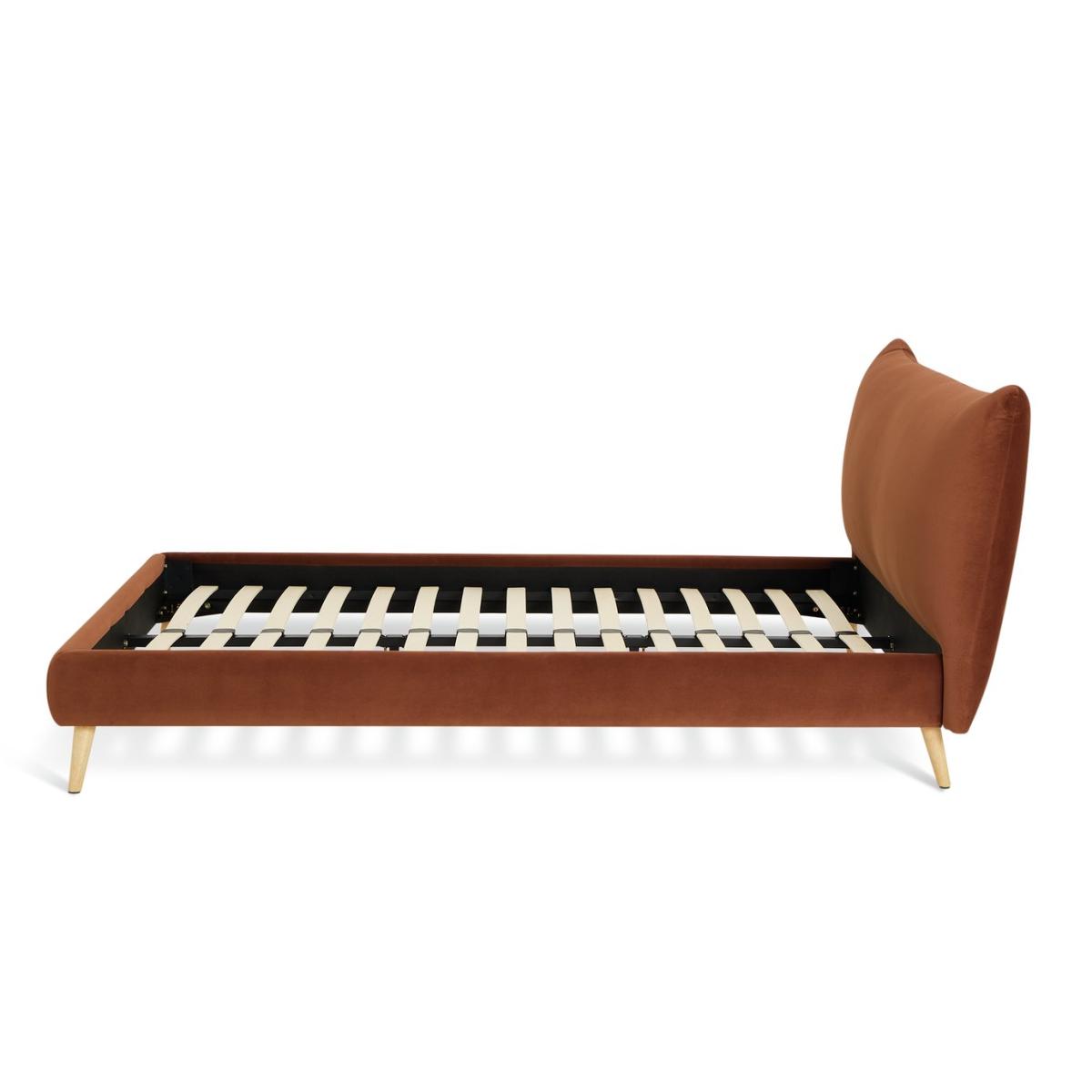 Comfort and clutter control in one. Lean into the inflated, softness of our oversized headboard, a favourite comfort feature of our Marshmallow bed. Fresh and airy, the frame is upholstered in soft rust velvet fabric. Sprung wooden slats support you as you sleep. Out of sight but always within reach. Soft, plush velvet. Part of the Marshmallow collection. Upholstered frame. Velvet fabric - 100% polyester. Wooden feet. Base with sprung wooden slats. No storage. Size W185, L231.5, H96cm. Height to top of siderail 33.5cm. 15.5cm clearance between floor and underside of bed. Weight 40.7kg. Total maximum user weight 220kg. Self-assembly - 2 people recommended. Package Dimensions: Package 1 dimensions: H21, W88, D189cm. Package 1 weight: 29.4kg. Package 2 dimensions: H22, W22, D220cm. Package 2 weight: 18.4kg. General Information: Manufacturer's 1 year guarantee.