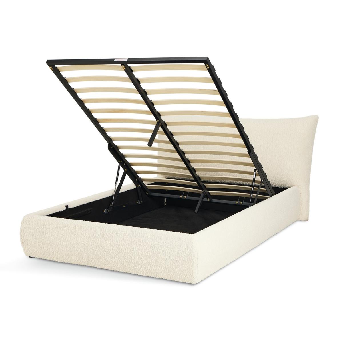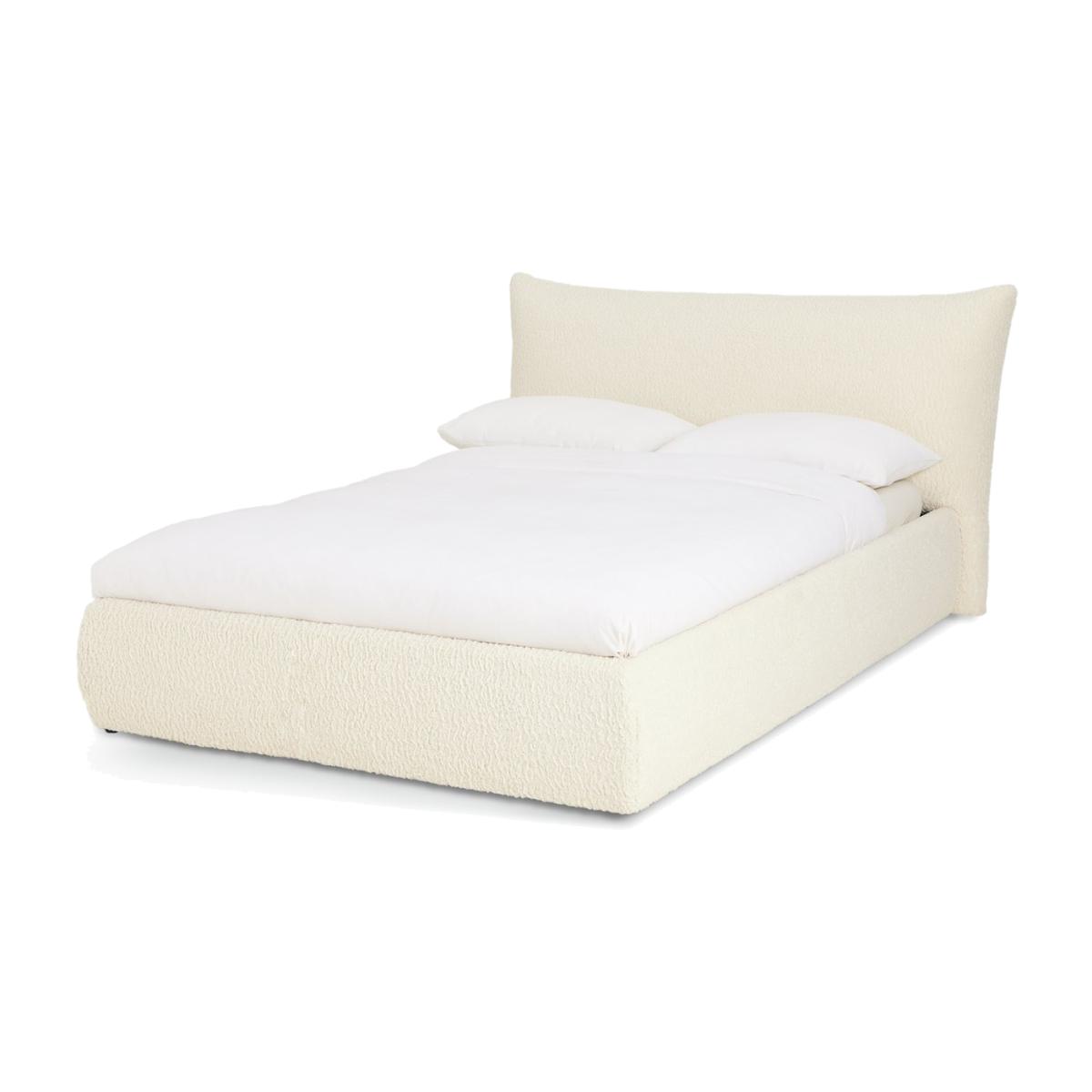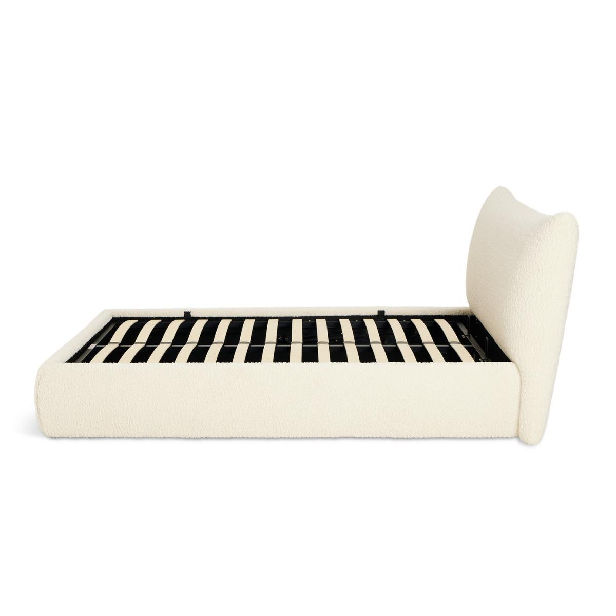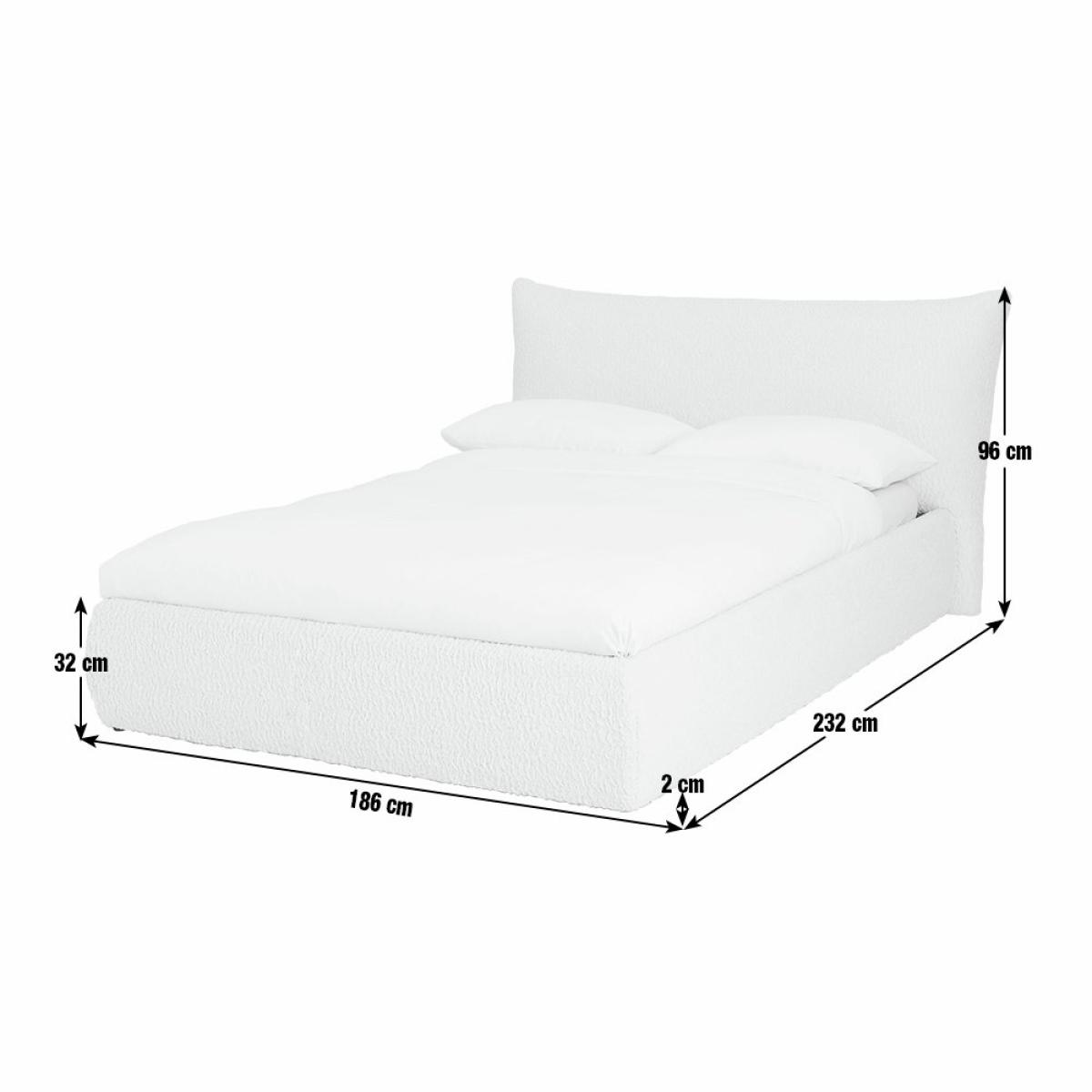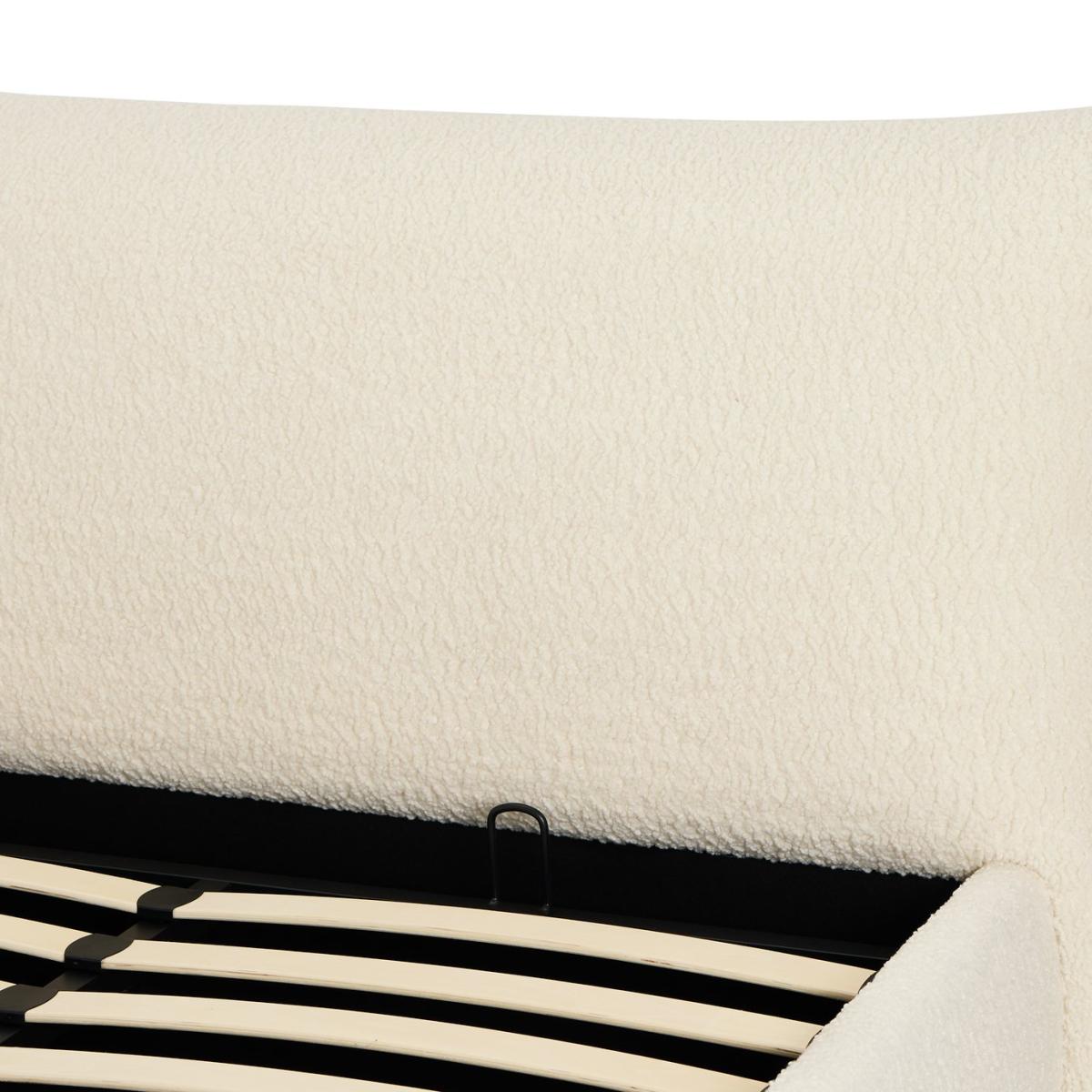 Comfort and clutter control in one. Lean into the inflated, softness of our oversized headboard, a favourite comfort feature of our Marshmallow Ottoman bed. Fresh and airy, the frame is upholstered in soft white boucle fabric. Sprung wooden slats support you as you sleep. Lift the mattress and discover spacious storage for spare bedding and clothes. Out of sight but always within reach. Fluffy, soft boucle. Part of the Marshmallow collection. Mattress not included. Headboard included. Upholstered frame. Boucle fabric - 100 % polyester. Base with sprung wooden slats. End lift. Storage capacity: 895 litres. Size W186, L232, H96cm. Height to top of siderail 32cm. 2cm clearance between floor underside of bed. Internal storage space H28, W153, D209. Weight 57.1kg. Total maximum user weight 220kg. Self-assembly - 2 people recommended. Headboard: Boucle headboard. Headboard size H95.5, W186, D21cm. Package Dimensions: Package 1 dimension H19.5, W35, D221cm. Package 1 weight: 28.4kg. Package 2 dimensions: H22, W99, D191cm. Package 2 weight: 22.7kg. Package 3 dimension: H15.5, W35, D171cm. Package 3 weight: 17.2kg. General information: Manufacturer's 1 year guarantee. By choosing FSC certified products, you are supporting responsible management of the world's forests.