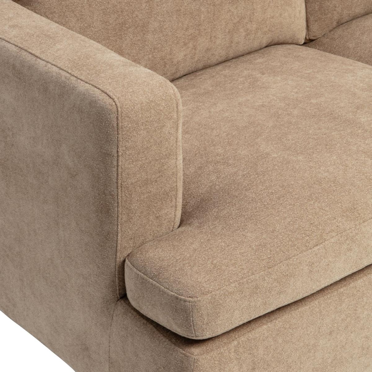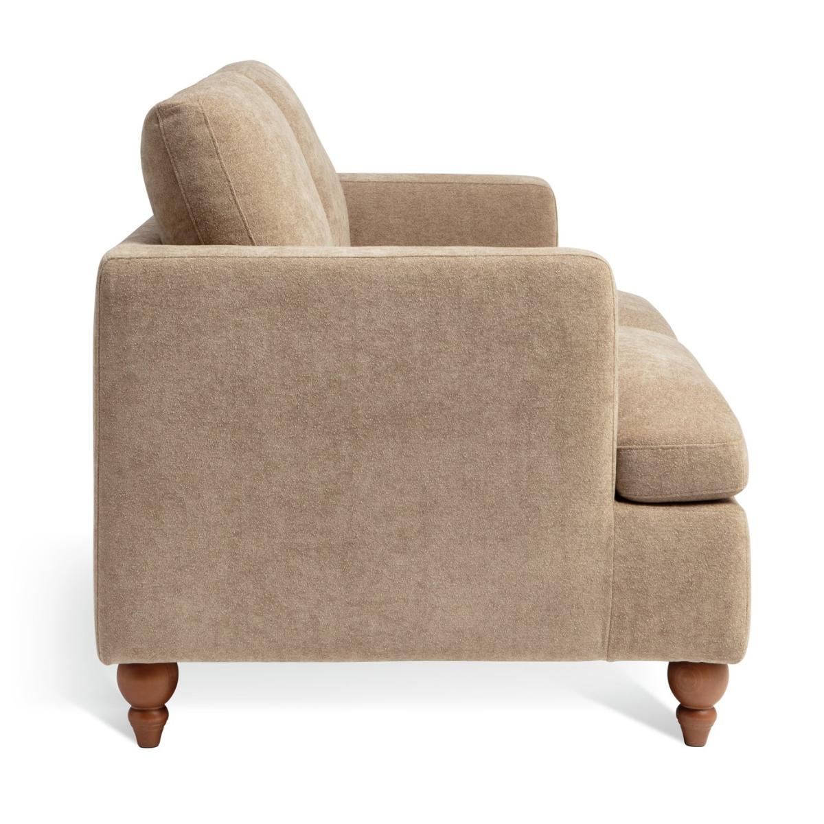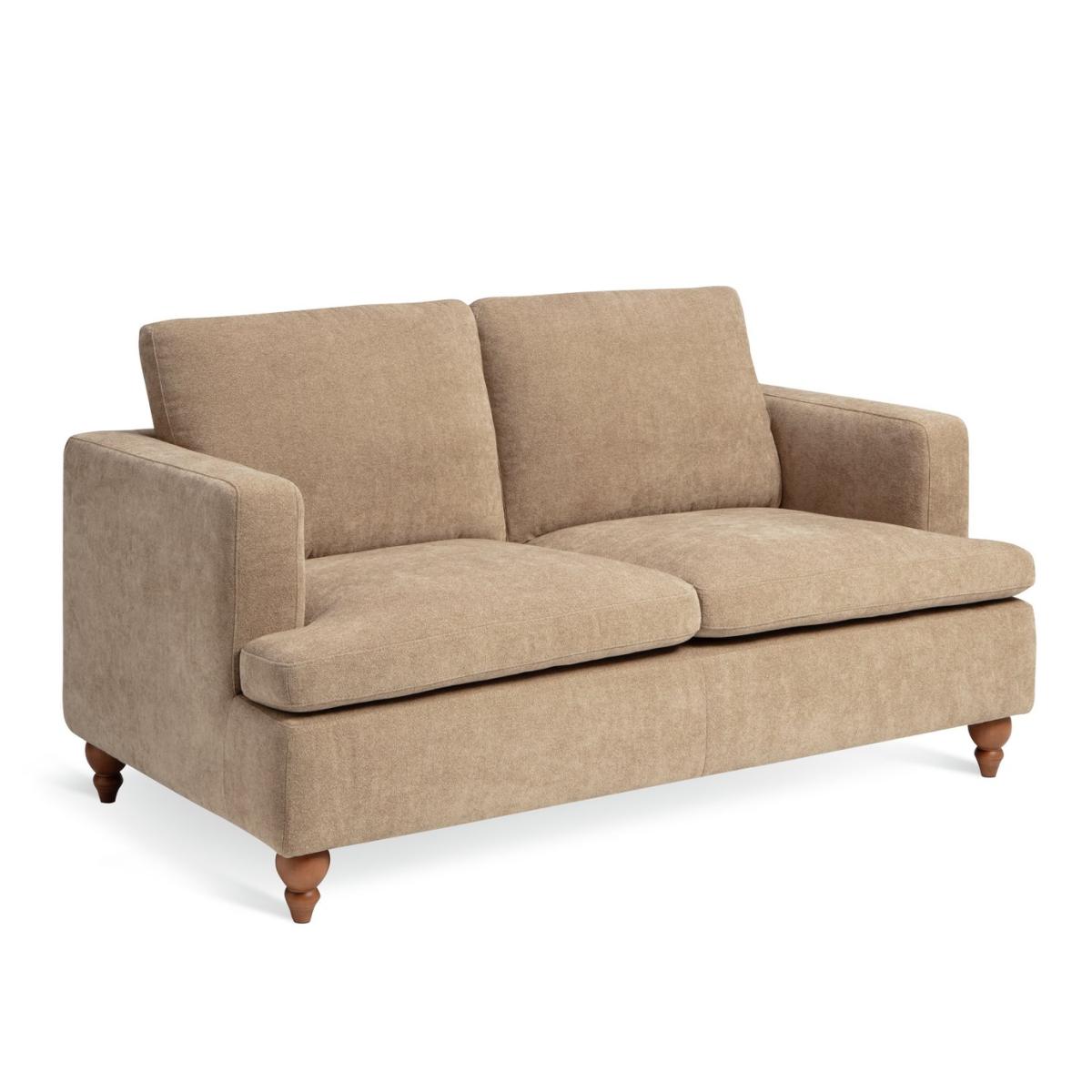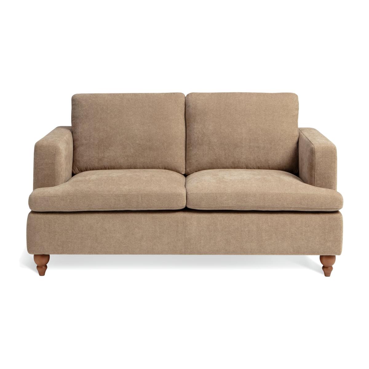 Sink into modern mink. This classically contemporary 2-seater sofa has oodles of style and comfort. The clean linear design blends beautifully with the traditional look of the turned wooden legs. The foam and dacron wrapped seats and foam filled cushions are made for relaxing. Upholstered in a mink coloured fabric, this is a standout sofa with settle in softness. Part of the Matilda collection. Material: Made from 100% polyester. Wooden feet - brown. Removable seats with foam fibre wrap filling. Removable cushion(s) with fibre filling. Dimensions: Size H88, W165, D91cm. Floor to seat height: 48cm. Depth of seat: 58cm. Height of seat back: 44cm. Width of seating area between arms: 135cm. Weight: 39kg. Packaged dimensions: Package size H58, W167, D93cm. General information: Professional clean only. Plump cushions regularly to maintain shape. Minimal assembly - just add feet. Maximum individual user weight: 110kg. Manufacturer's 10 year guarantee.
