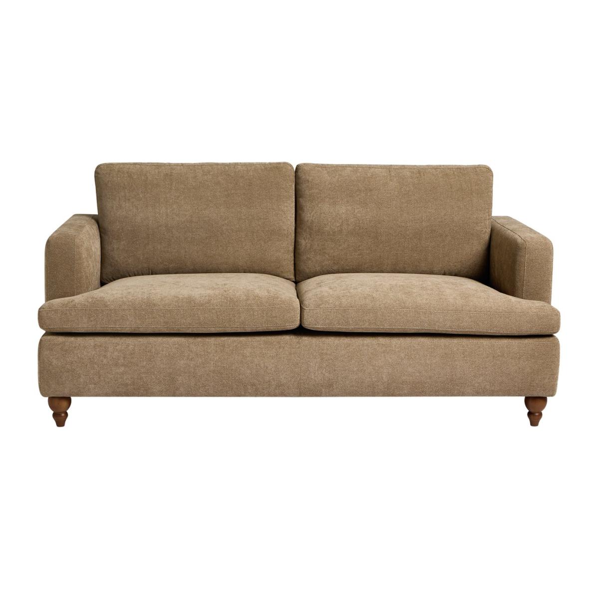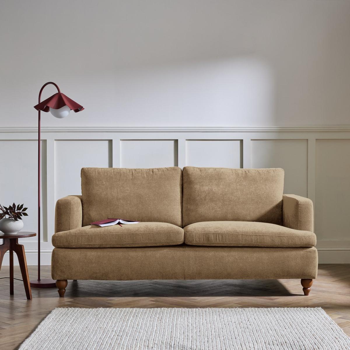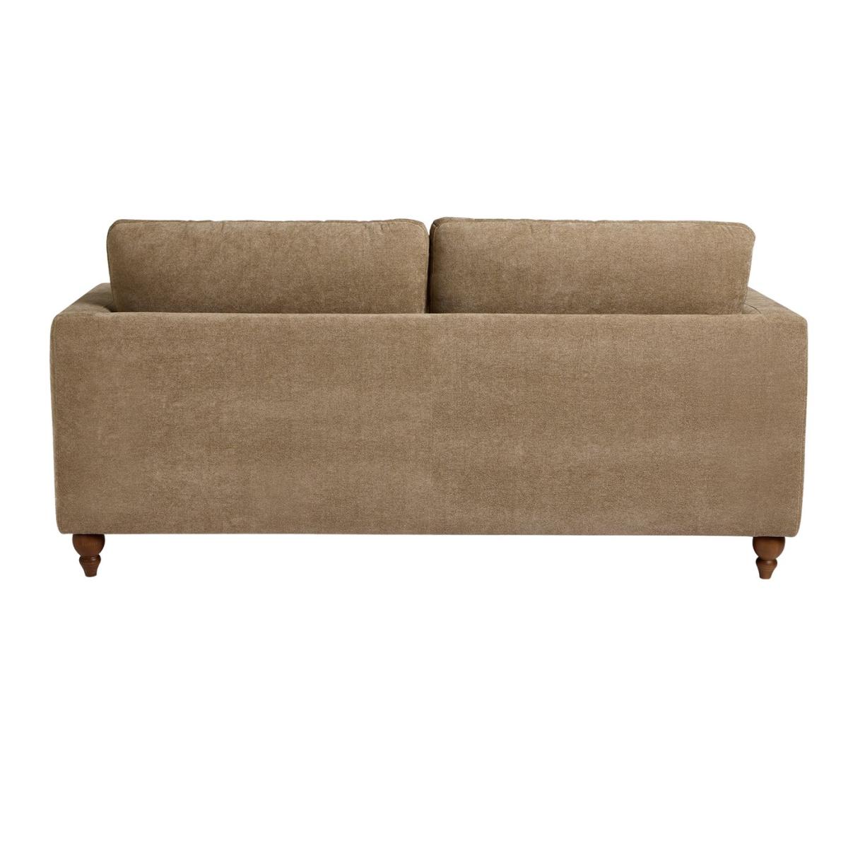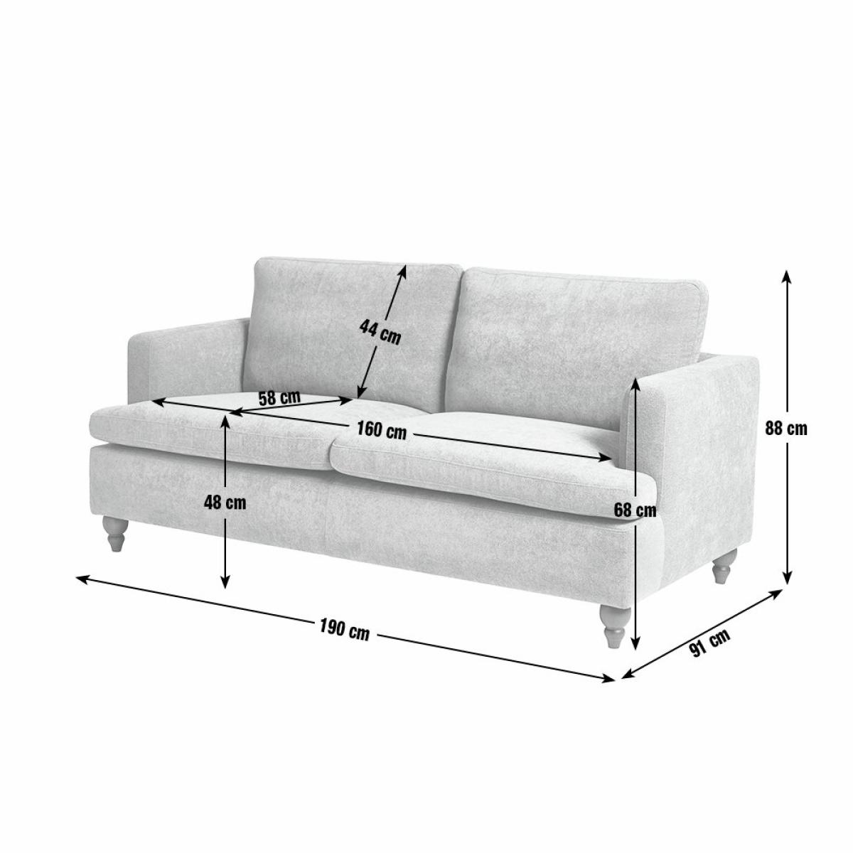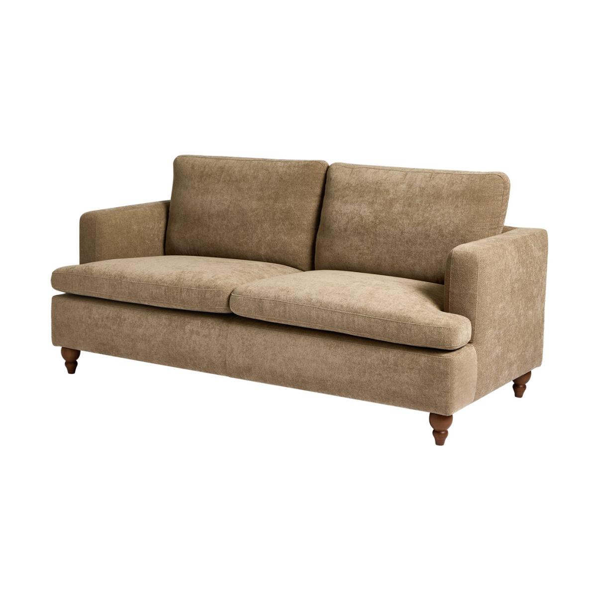 Sink into modern mink. This classically contemporary 3-seater sofa has oodles of style and comfort. The clean linear design blends beautifully with the traditional look of the turned wooden legs. The foam and fibre wrapped seats and foam filled cushions are made for relaxing. Upholstered in a mink coloured fabric, this is a standout sofa with settle in softness. Part of the Matilda collection. Material: Made from 100% polyester. Wooden feet - brown. Removable seats with foam fibre wrap filling. Removable cushion(s) with fibre filling. Dimensions: Size H88, W190, D91cm. Floor to seat height: 48cm. Depth of seat: 58cm. Height of seat back: 44cm. Width of seating area between arms: 160cm. Weight: 43.5kg. Packaged dimensions: Package size H58, W192, D93cm. General information: Professional clean only. Plump cushions regularly to maintain shape. Self-assembly - just add feet. Maximum individual user weight: 110kg. Manufacturer's 10 year guarantee.