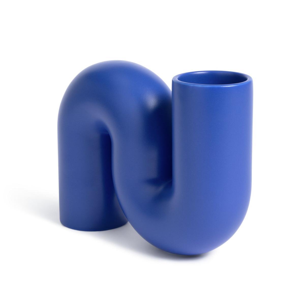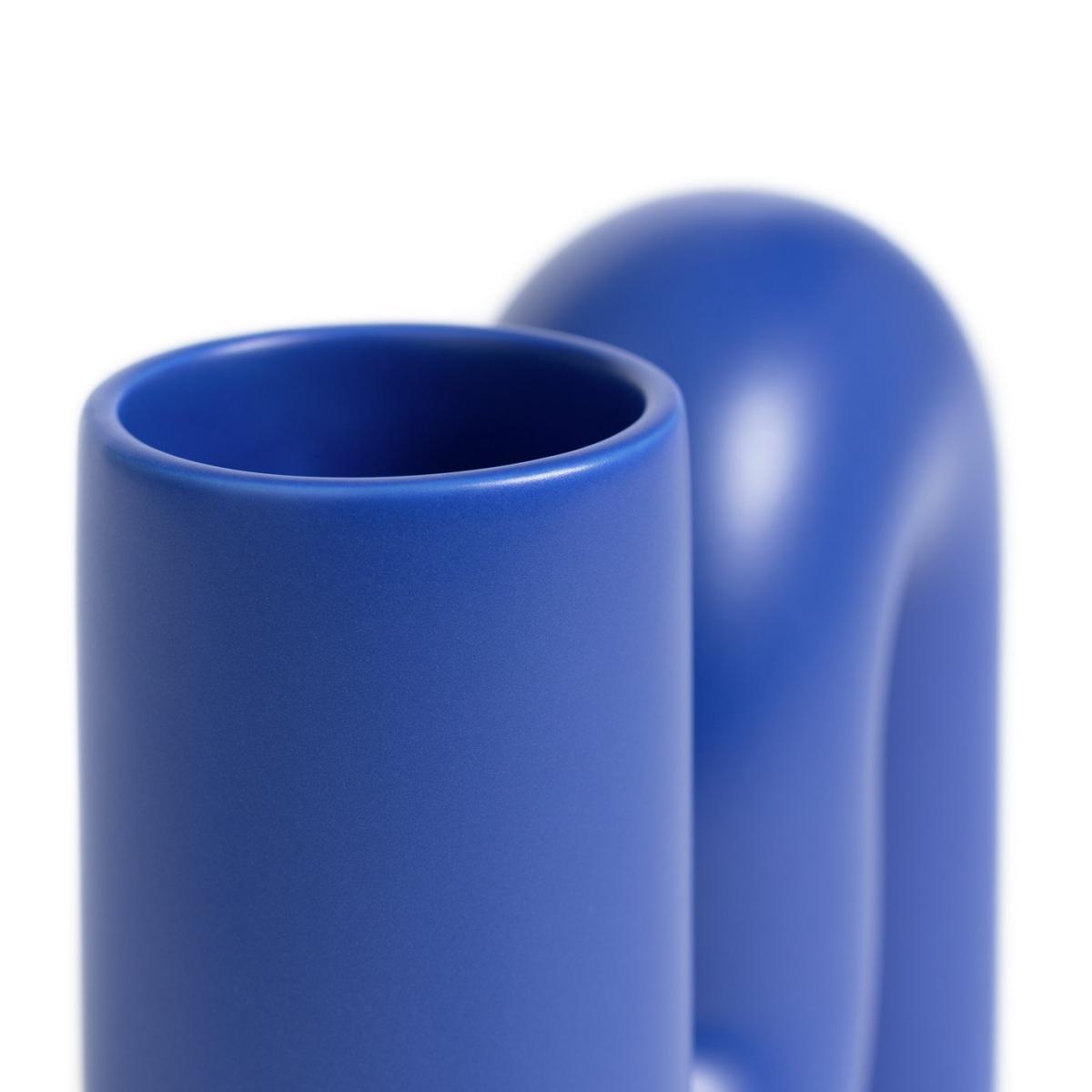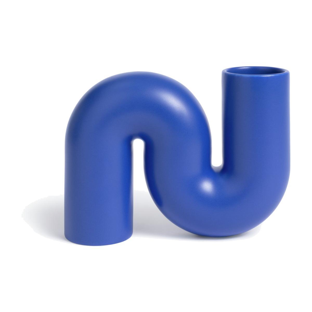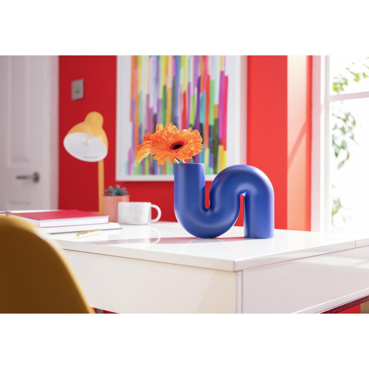 I love this vase for its playful, sculptural shape and vibrant blue matte finish, which make it a real statement piece. It works well in contemporary and minimalist interiors, adding a pop of colour without overwhelming the space. Practical styling tips include placing it on a mantel or side table with a single, simple stem or dried botanicals to highlight its shape, or grouping it with other vases in neutral tones for a modern arrangement. Its unique form also lends itself to being displayed as a standalone sculptural piece, offering flexibility in how you incorporate it into various room styles.