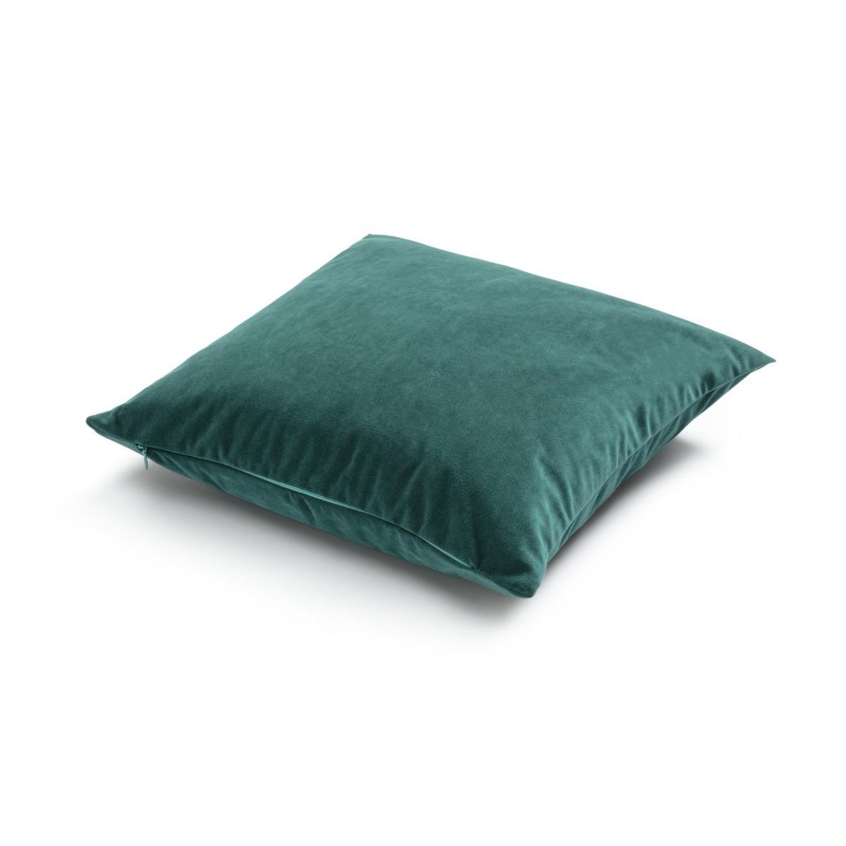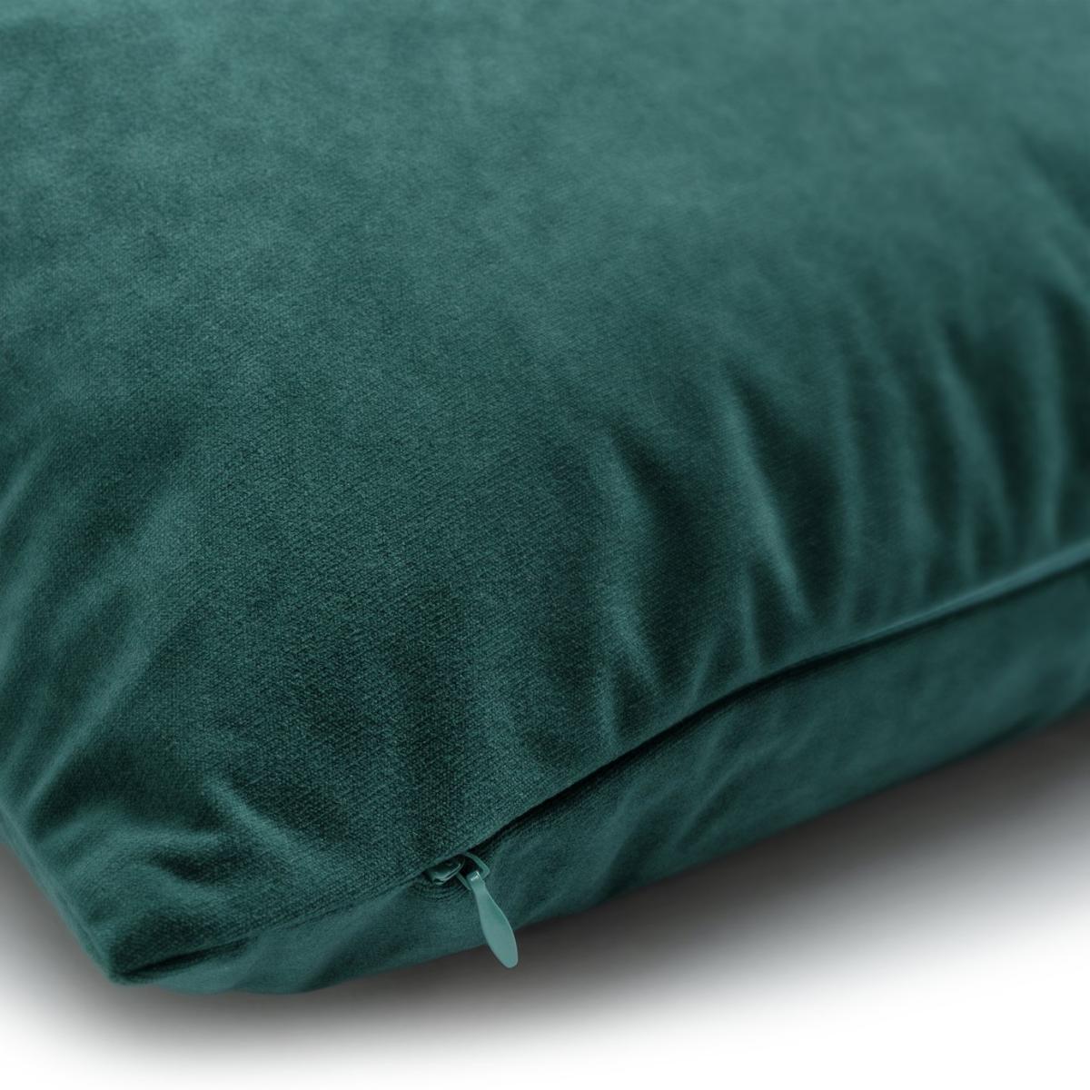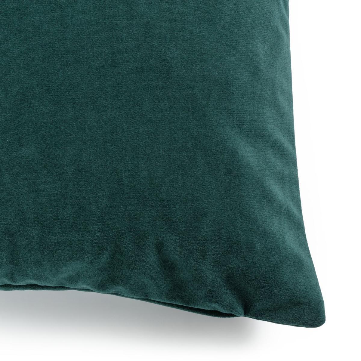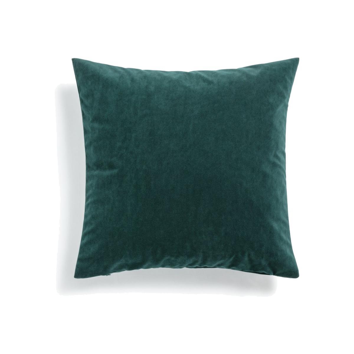 Alure alert. Our velour cushion certainly packs a punch in the style department. Its soft surface catches the light beautifully, showing off its deep emerald hue. And it's not just green on the outside. The 100% recycled polyester filling gives it impressive eco creds too. Imagine a few of these little gems piled invitingly on a leather sofa or your favourite armchair. Lovely to look at and even nicer to sink into. More velour please.