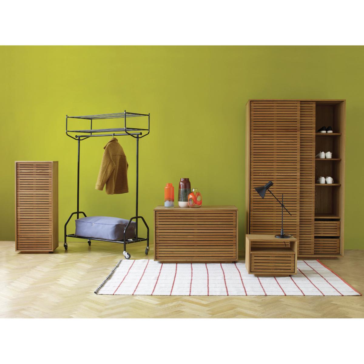 I love this wardrobe for its sleek, minimalist design and natural oak finish, which works particularly well in Scandi-inspired or modern interiors. Its louvered doors add texture without visual clutter, making it a versatile piece that can blend seamlessly into both neutral and more eclectic schemes. Practical styling tips include pairing it with warm-toned or muted colour palettes to highlight its natural grain, and accessorising nearby spaces with simple, functional pieces - like tidy storage boxes or a statement mirror - to keep the overall look clean and cohesive. It’s a great choice for those wanting both style and function, providing plenty of storage with a contemporary edge.