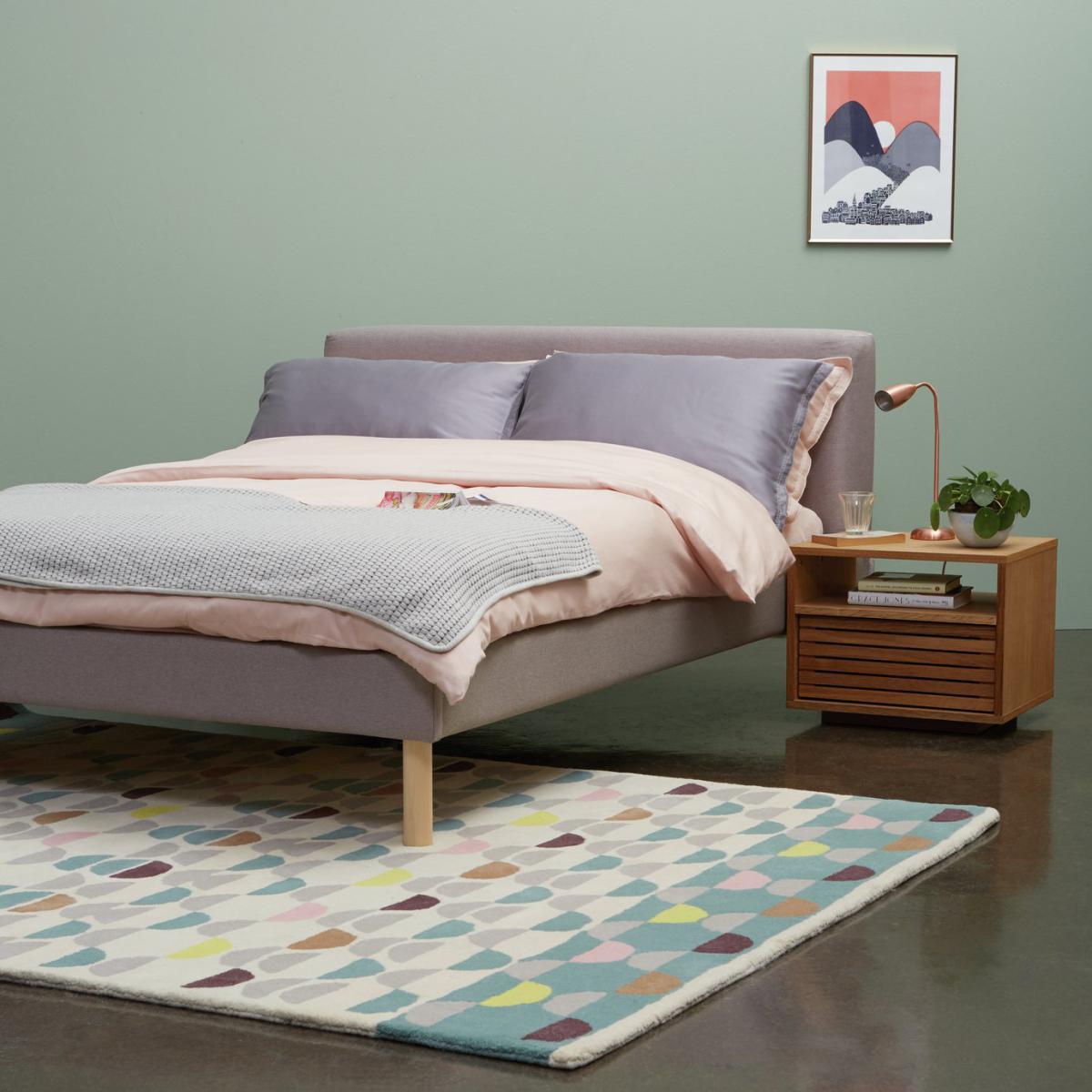 I really like this bedside chest for its clean, natural oak finish which makes it versatile enough to suit a range of interiors from Scandi to coastal and modern rustic styles. Its simple, functional design provides practical storage with a slatted drawer that adds texture and visual interest. It works well in minimalist schemes when paired with neutral bedding and understated decor, or styled with a small lamp, a plant or some favourite books for a cosy bedside setup. For a more layered look, consider stacking a few cosy textiles nearby or adding a decorative tray on top to make it both practical and visually appealing. Its neutral tone and straightforward design make it a reliable choice when creating a calm, inviting bedroom environment.