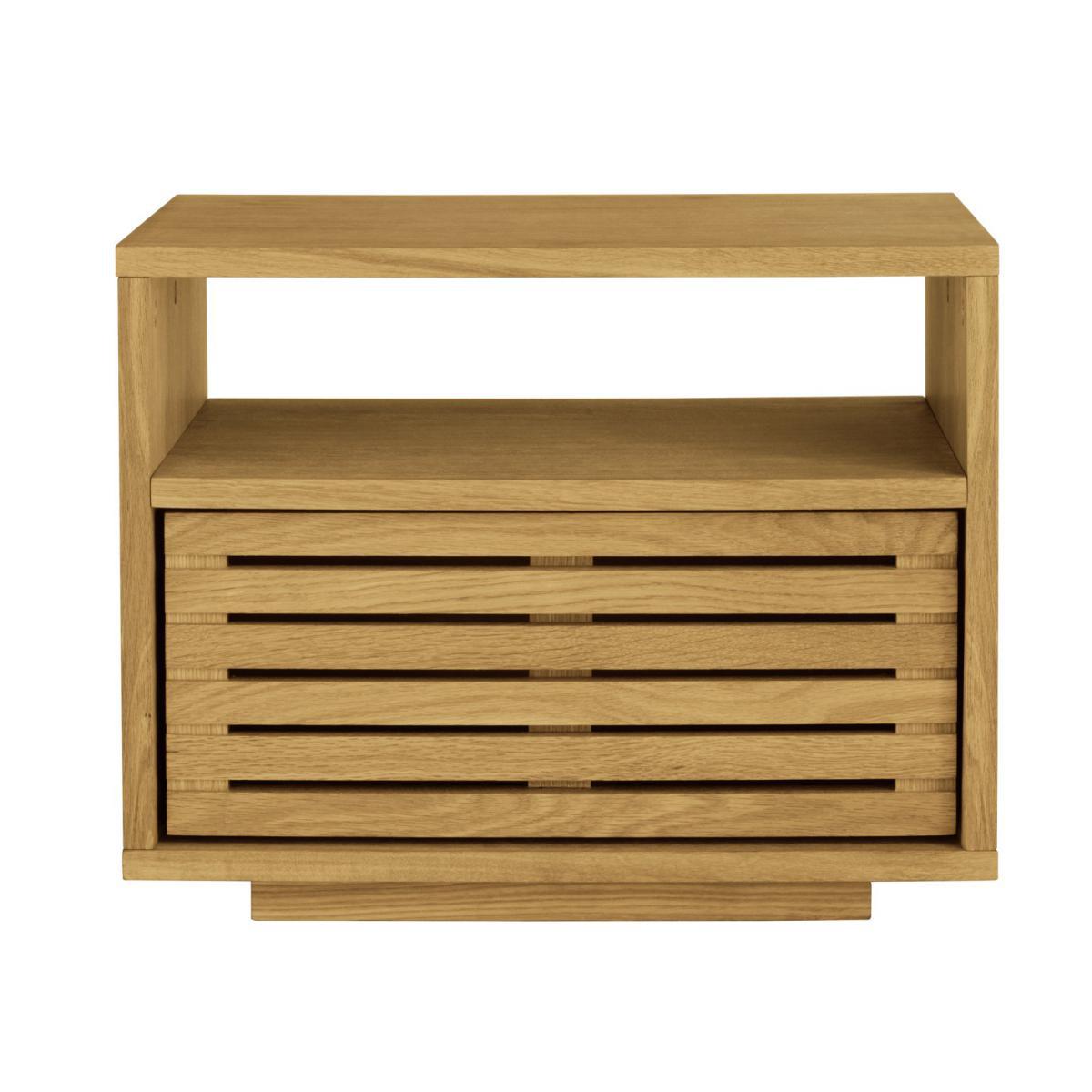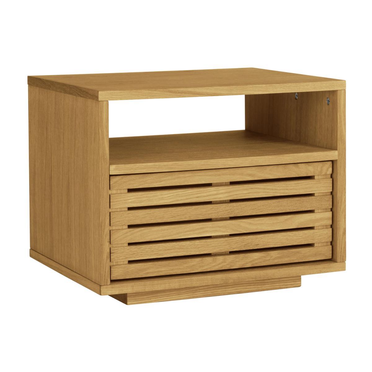 Crafted from beautiful, solid durable oak and oak veneer, this striking Max oak 1 drawer bedside unit will effortlessly add character to your rooms and sits on a hidden plinth, giving it a light appearance. With a warm, oiled finish, the deep drawer has a slatted front and features a push close mechanism for easy use.