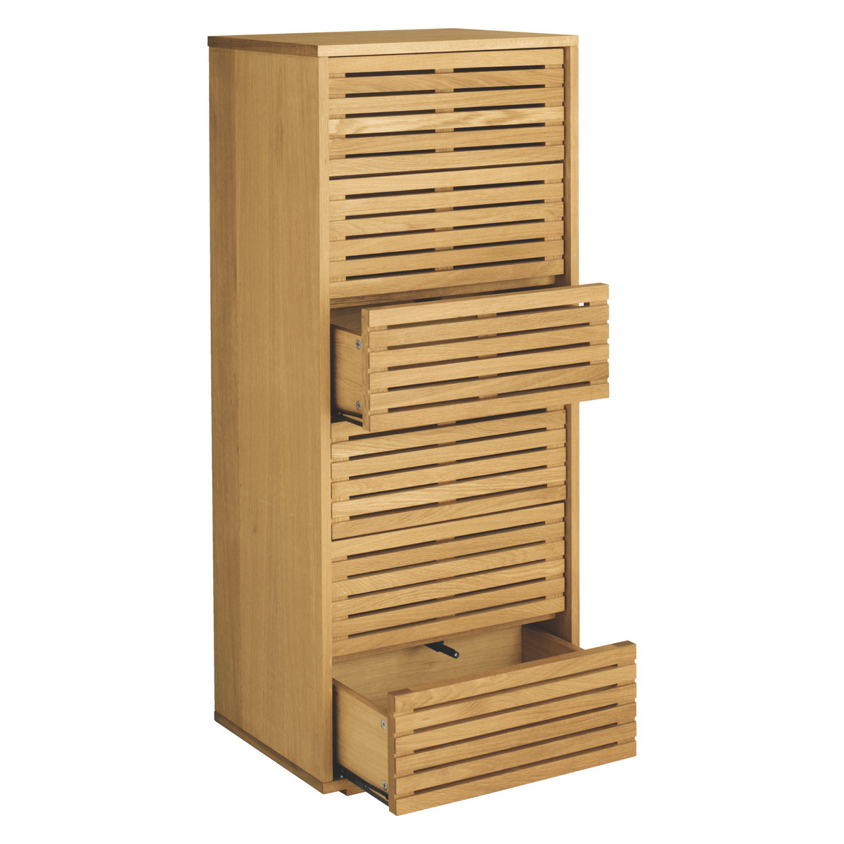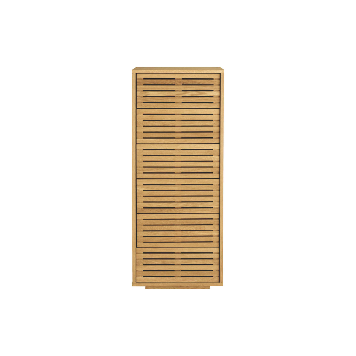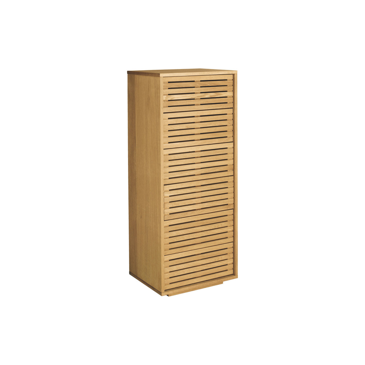 Crafted from beautiful, durable oak wood and oak veneer, this strikingly simple Max tallboy will effortlessly add character to your space. The deep drawers provide ample storage space for your needs, whilst its narrow dimensions make it the perfect piece for a small, first time home. Part of the Max slatted storage collection. Light and natural oiled finish.