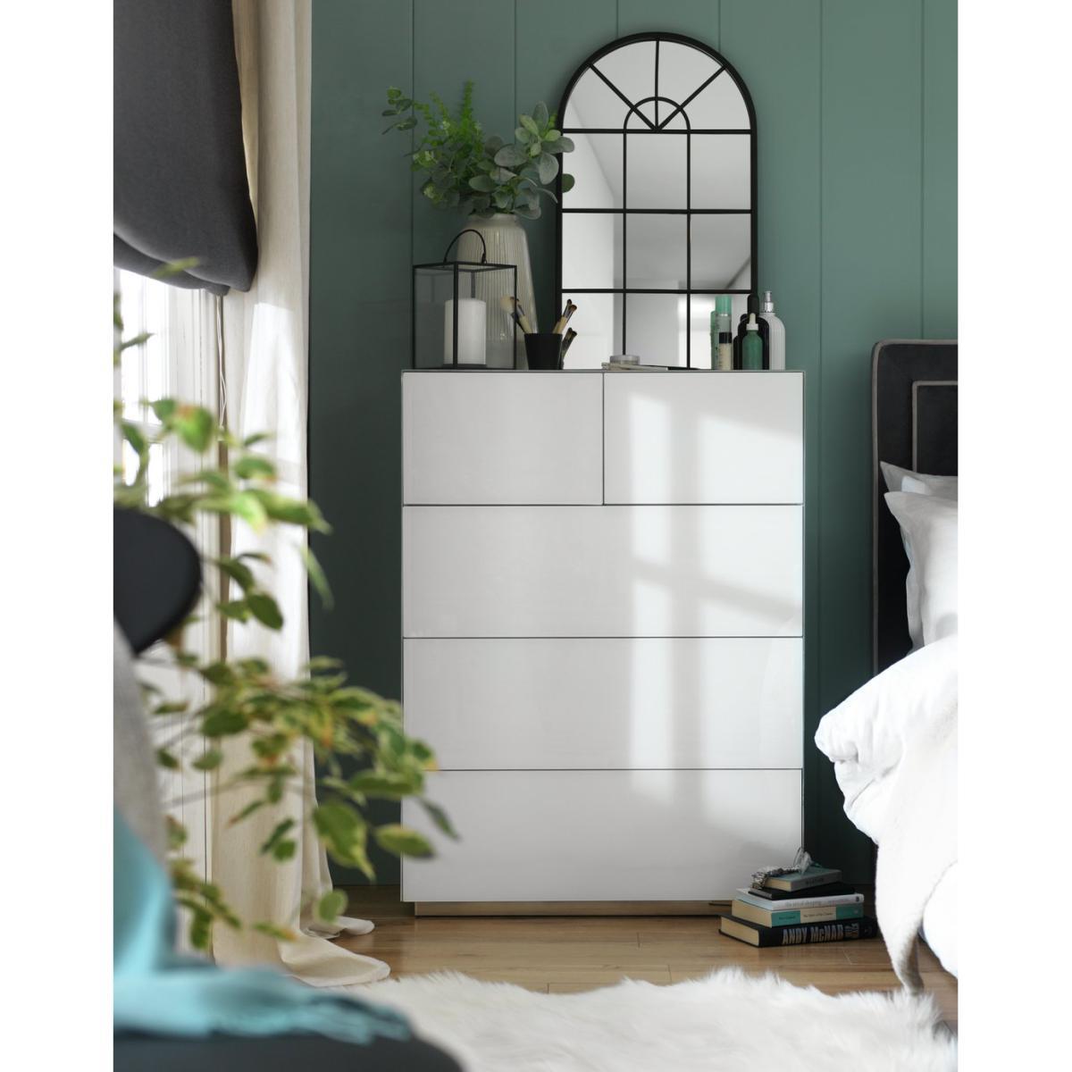 This white glass set offers a sleek, modern look that works brilliantly in contemporary or minimalist interiors. I love how the clean lines and reflective surfaces can help brighten a room and create a sense of space. The set is versatile, pairing well with both neutral and bold colour schemes, and offers practical storage with its combination of drawers and bedside units. To style it effectively, consider adding tactile or textured accessories - like soft textiles or matte finishes - to balance the gloss. It’s also ideal for bedrooms that favour a streamlined, clutter-free aesthetic, but can be softened with warm lighting or decorative objects to add personality and warmth.