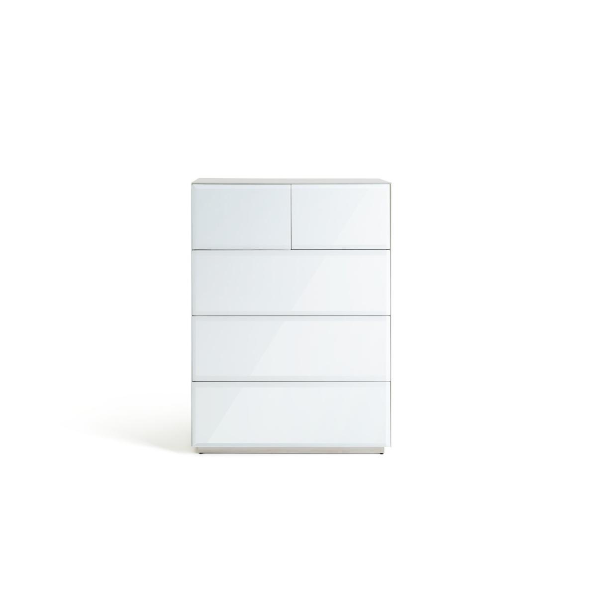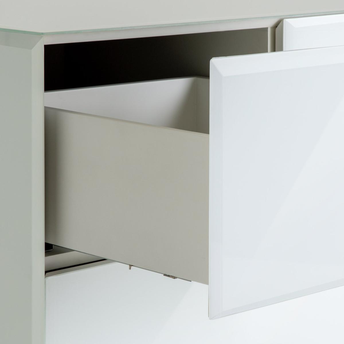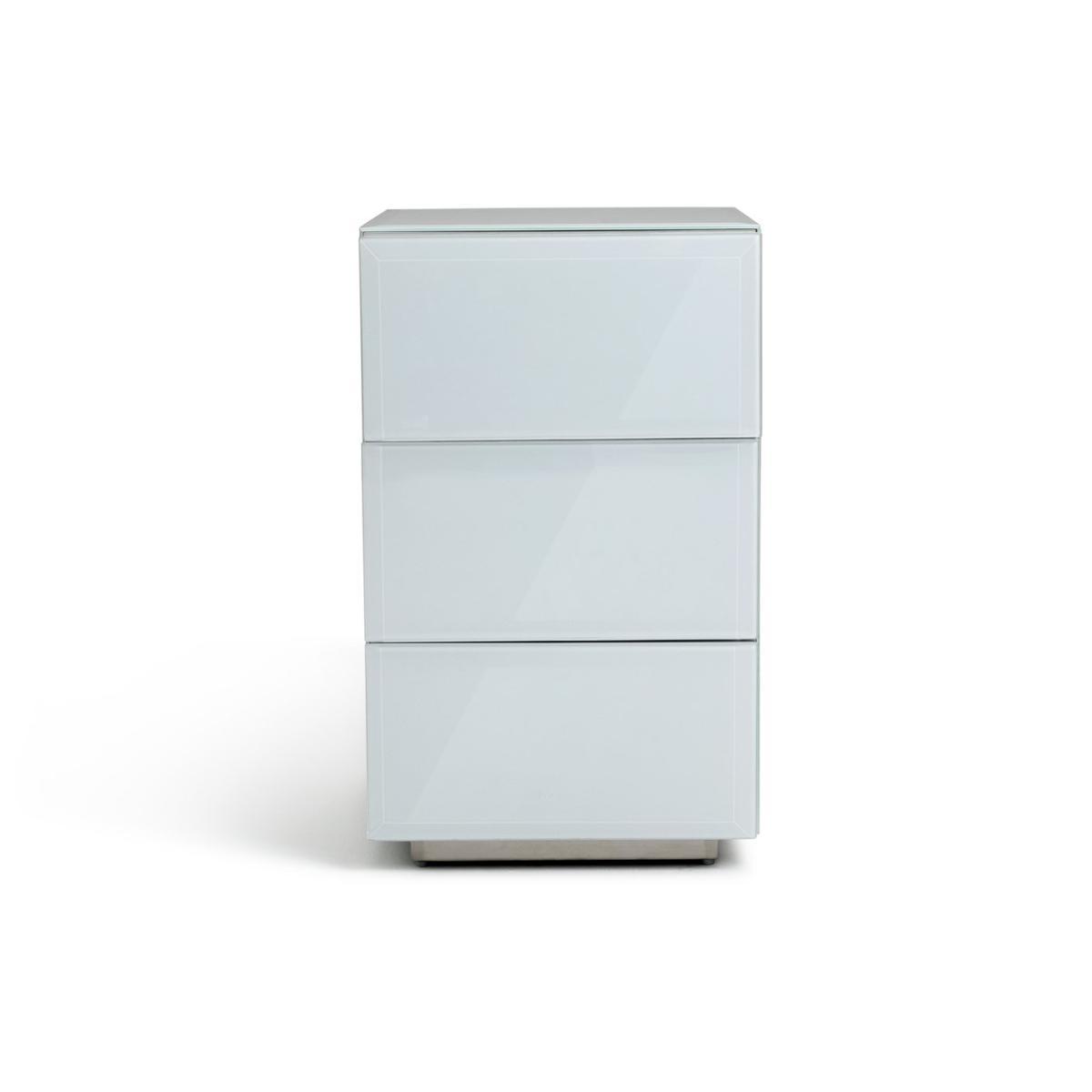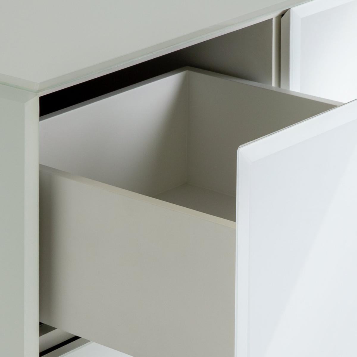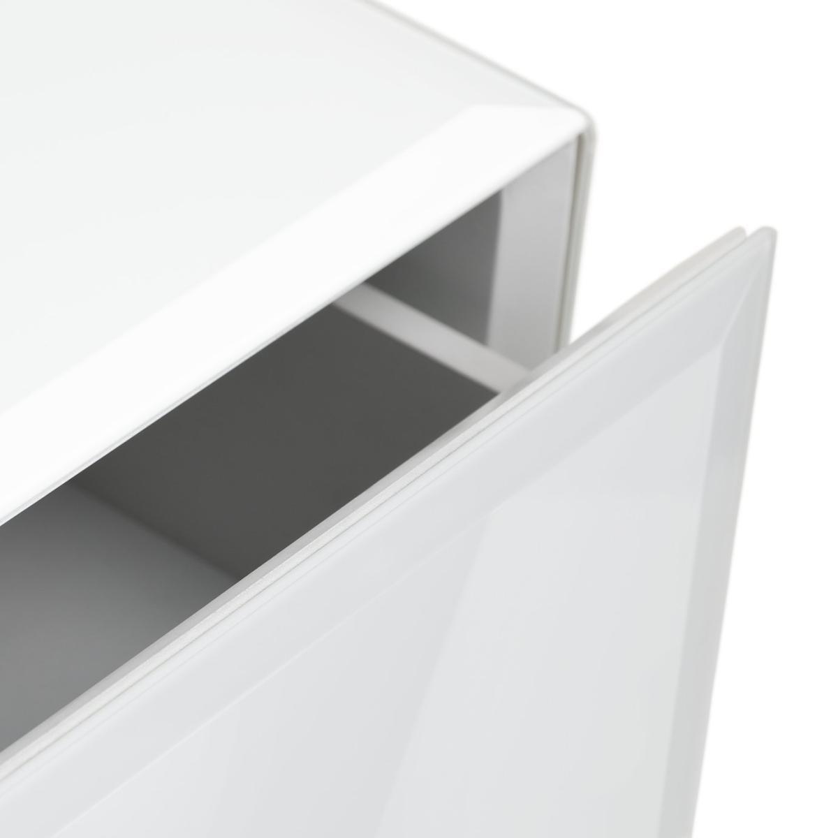 A contemporary, clutter free bedroom. Yes please. With its fresh white glossy glass finish this Mayfair bedroom set is sleek and chic. The 2 bedside cabinets and chest of draws give you ample space for clothes and night time essentials. Each of the 11 push to open drawers glide effortlessly on solid steel runners. How nice is that? This trio arrives fully assembled ready to add a pop of glamour to your space. Modern Mayfair minimalism at its smoothest.