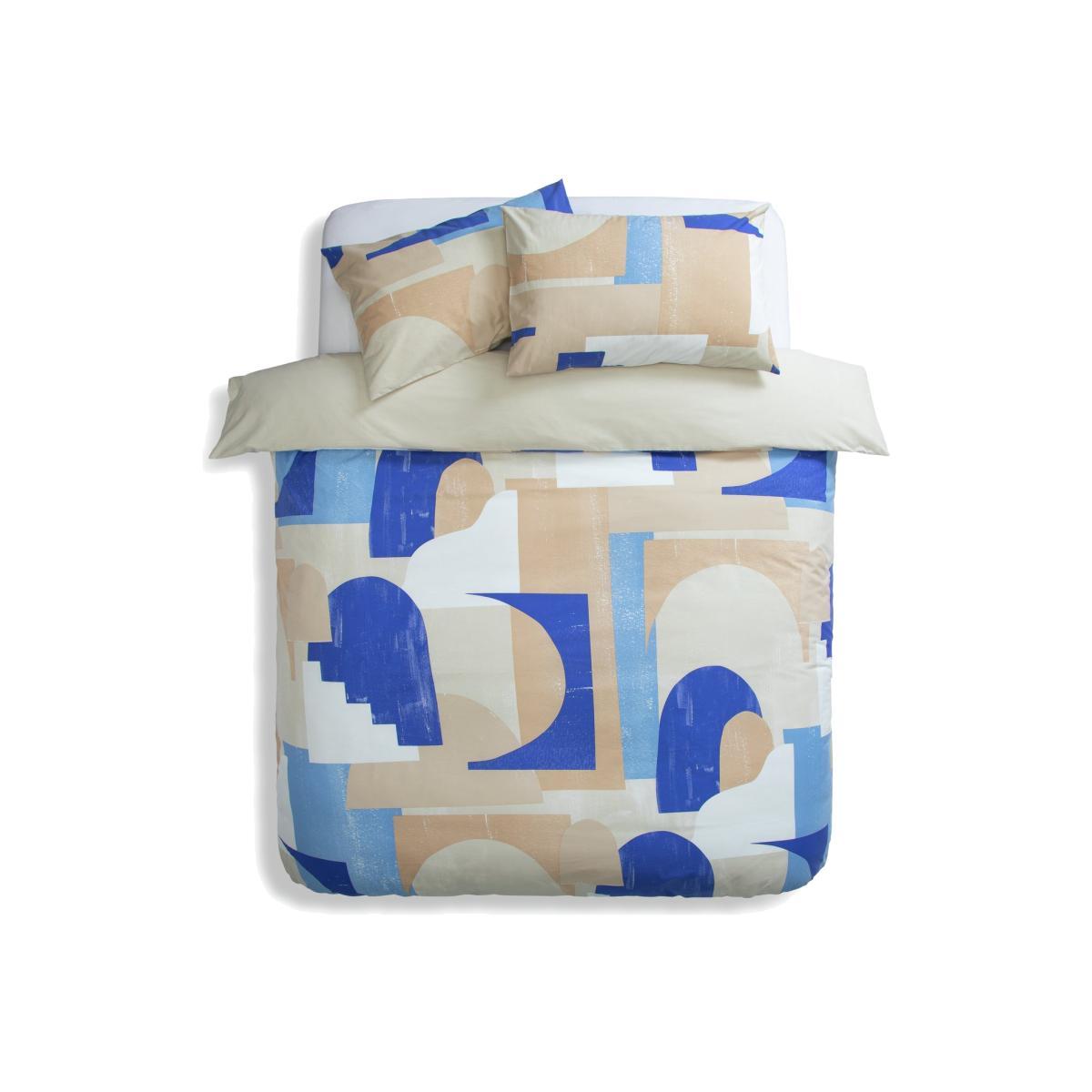 Two looks in one. For those of us who like to change it up now and then, this reversible duvet set is just the ticket. Abstract printed rings in blue and white bring a crisp modern look to your space. The soft, light easy care fabric is wonderfully inviting too. Pop on a bright contrast cushion or match with classic crisp white for an instant bedroom refresh. You just decide which side.