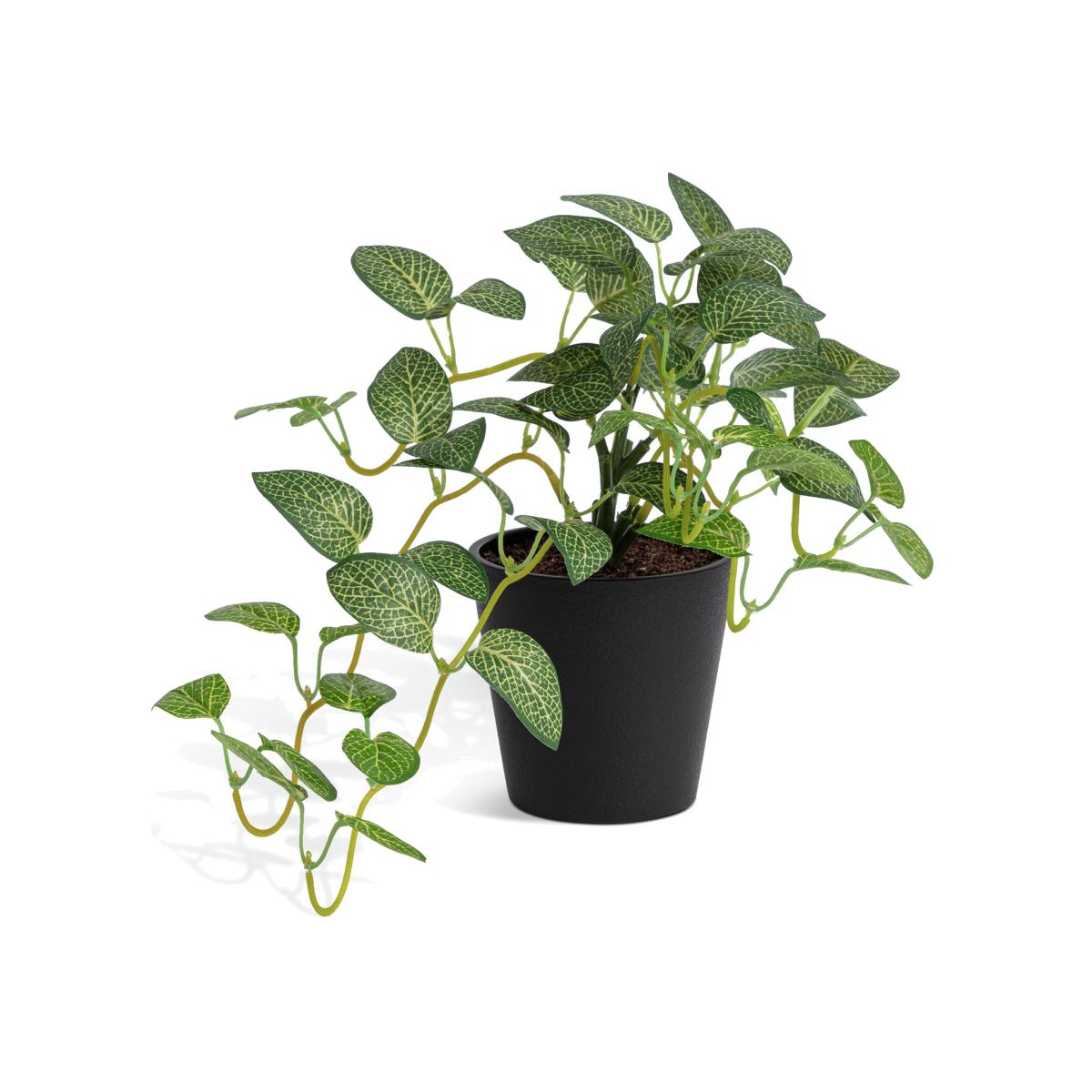 Let's make you houseplant happy. Green and leafy this plant is faux but you'd hardly know. With its variegated leaves and trailing stems it looks just right. Smart in a black container, and easy to pop inside a favourite plant pot. Size H19, W22, Diameter 11cm.